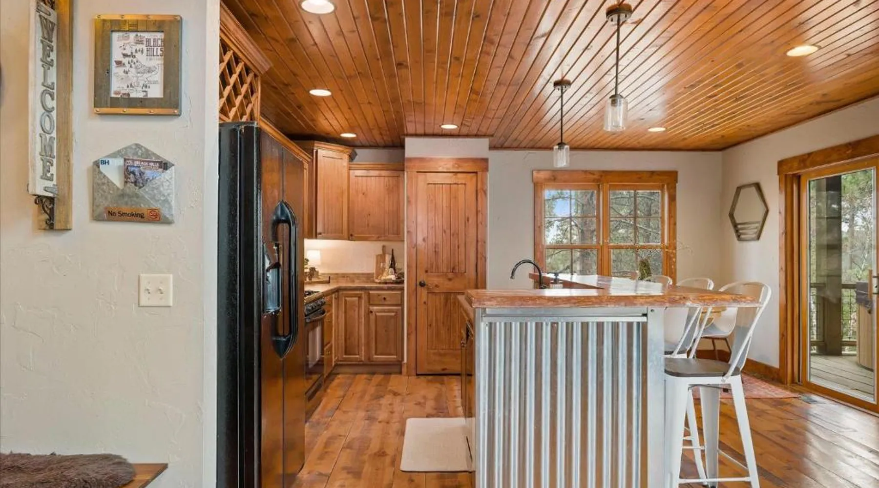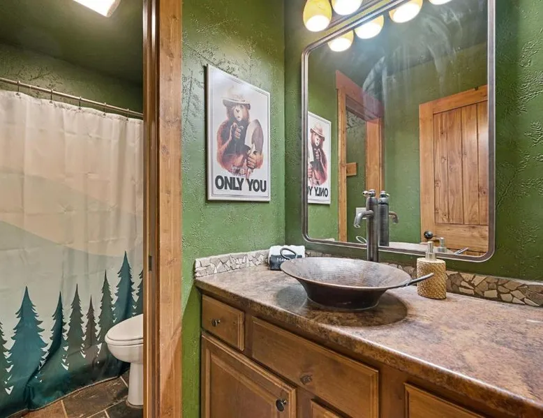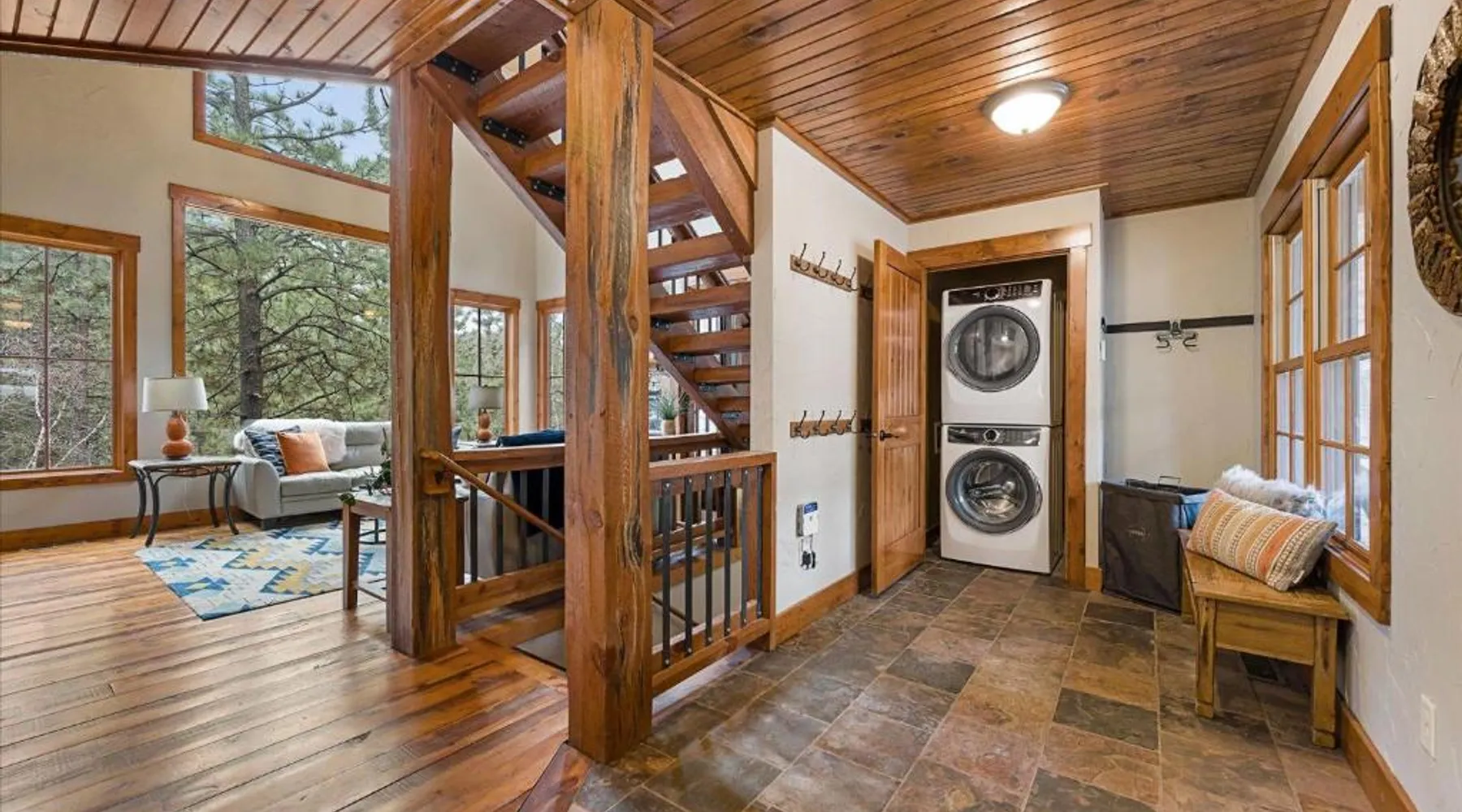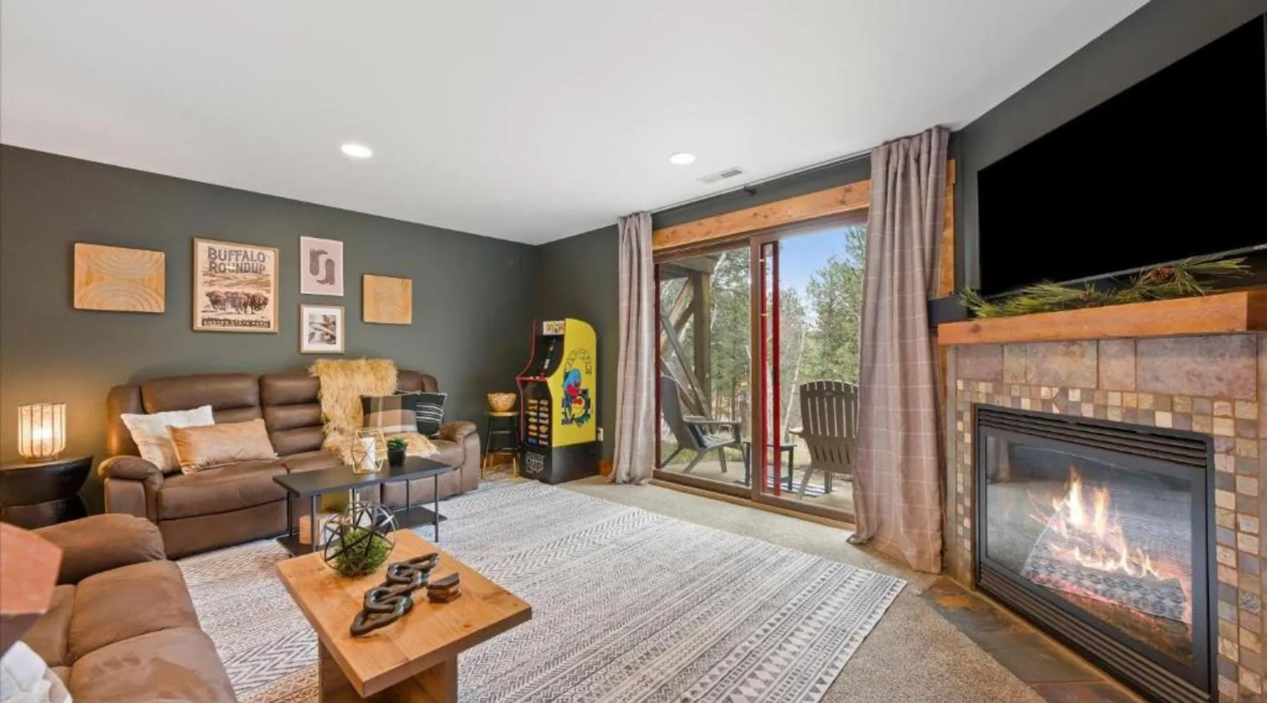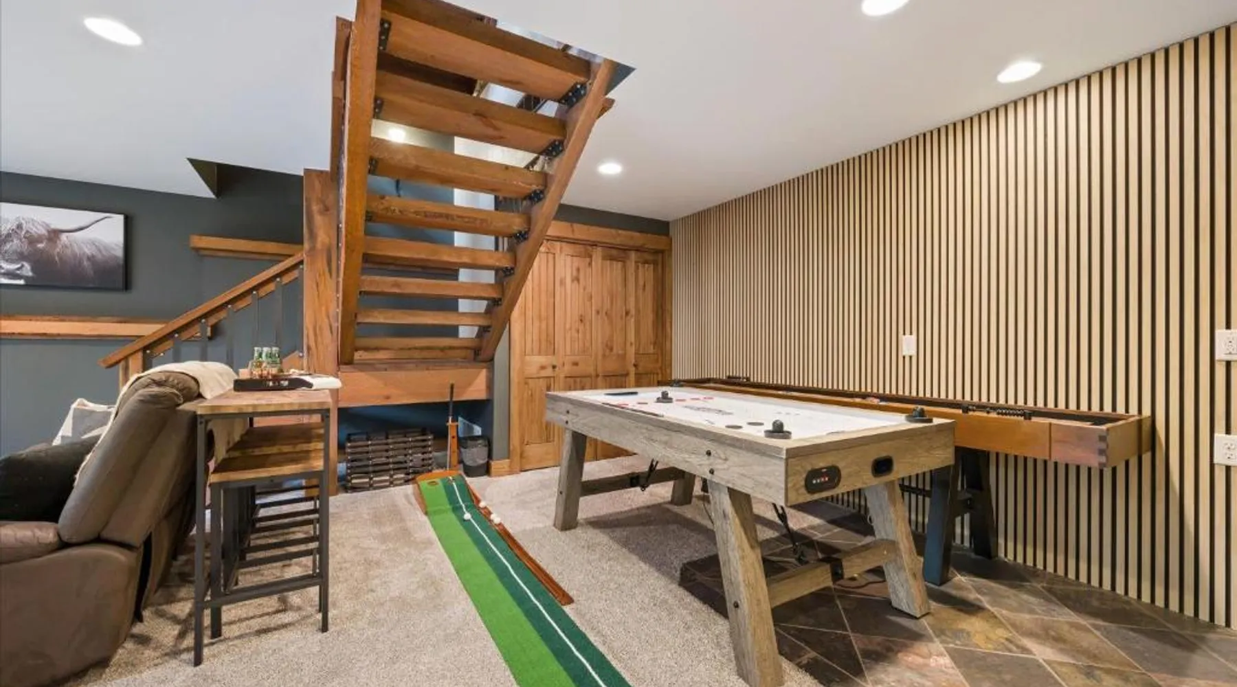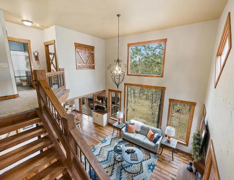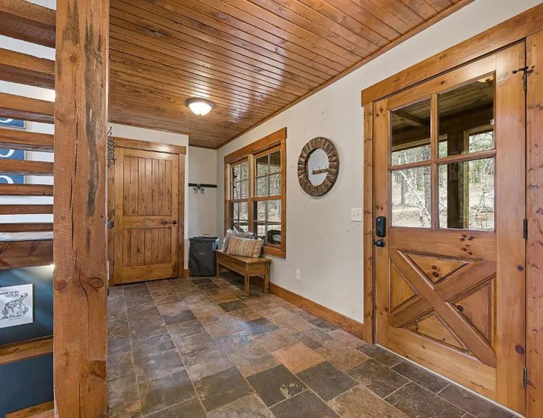 Spacious Accommodations: 7th Heaven Lodge in Lead offers a spacious holiday home with five bedrooms and three bathrooms. The living room features mountain views and a cozy fireplace, ensuring a comfortable stay. Relaxing Facilities: Guests can unwind in the sauna or hot tub, take a dip in the outdoor swimming pool, and stay connected with free WiFi. The property also includes a fully equipped kitchen, washing machine, and dishwasher. Local Attractions: Adams Museum is located 3.7 mi away, providing cultural activities. Rapid City Regional Airport is 56 mi from the lodge, facilitating convenient travel. Skiing enthusiasts can enjoy nearby slopes. The fireplace is a top feature of this holiday home. Boasting a private entrance, this air-conditioned holiday home includes 1 living room, 5 separate bedrooms and 3 bathrooms with a bath and a hairdryer. The well-fitted kitchen has a stovetop, a refrigerator, a dishwasher and kitchenware. The spacious holiday home offers a TV with cable channels, a washing machine, a dining area, heating as well as mountain views. The unit has 7 beds.