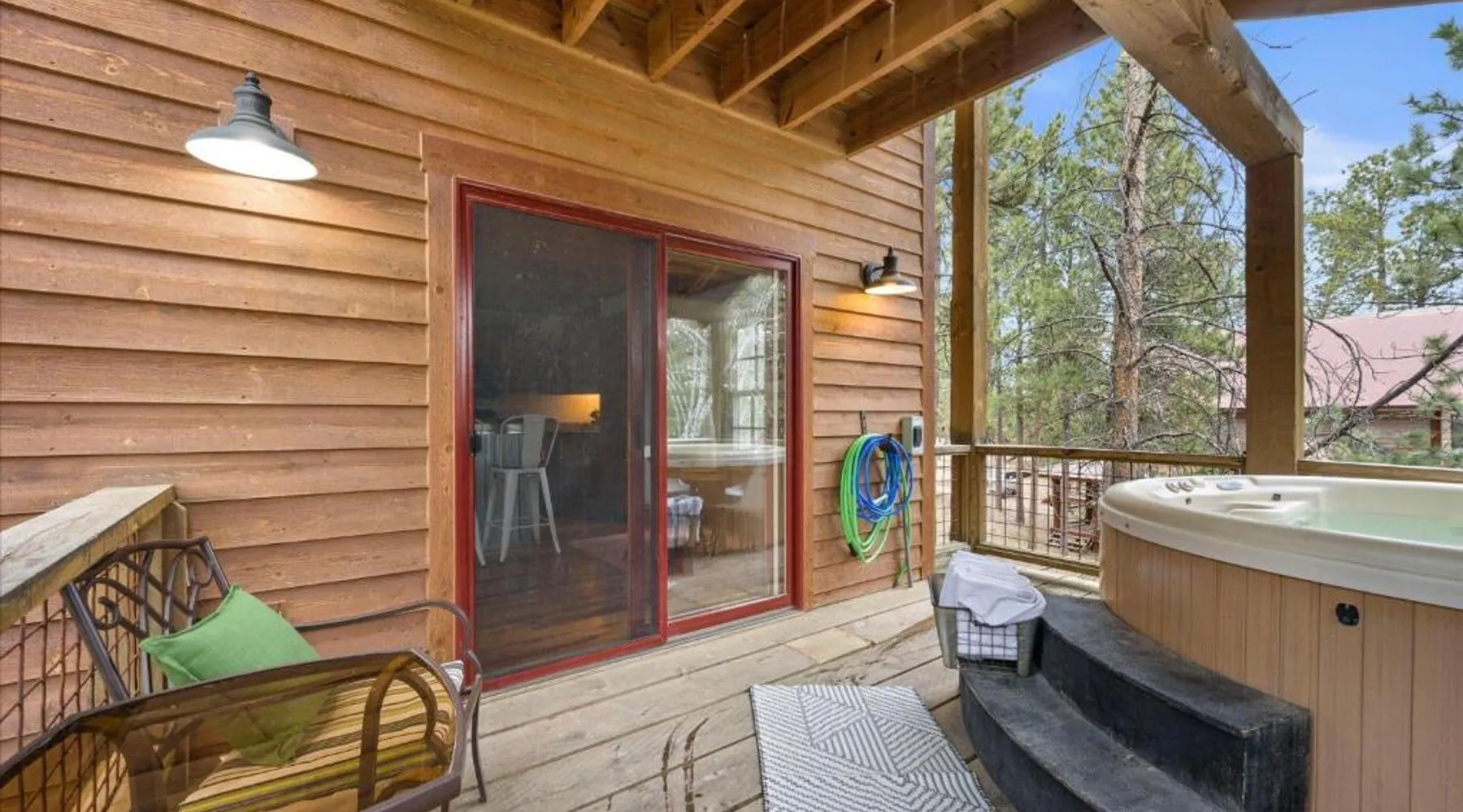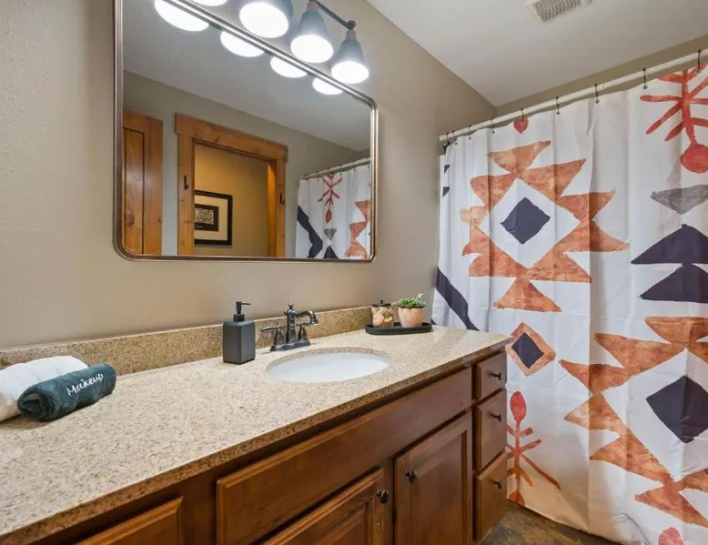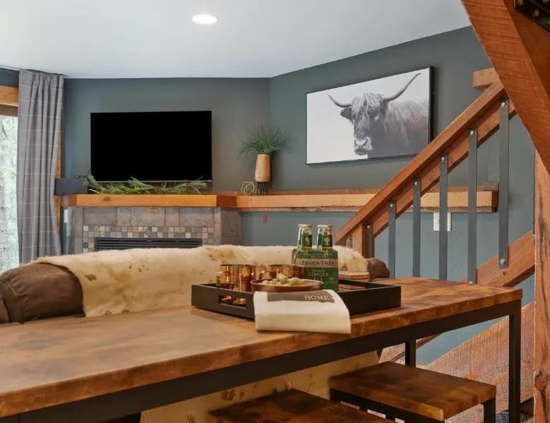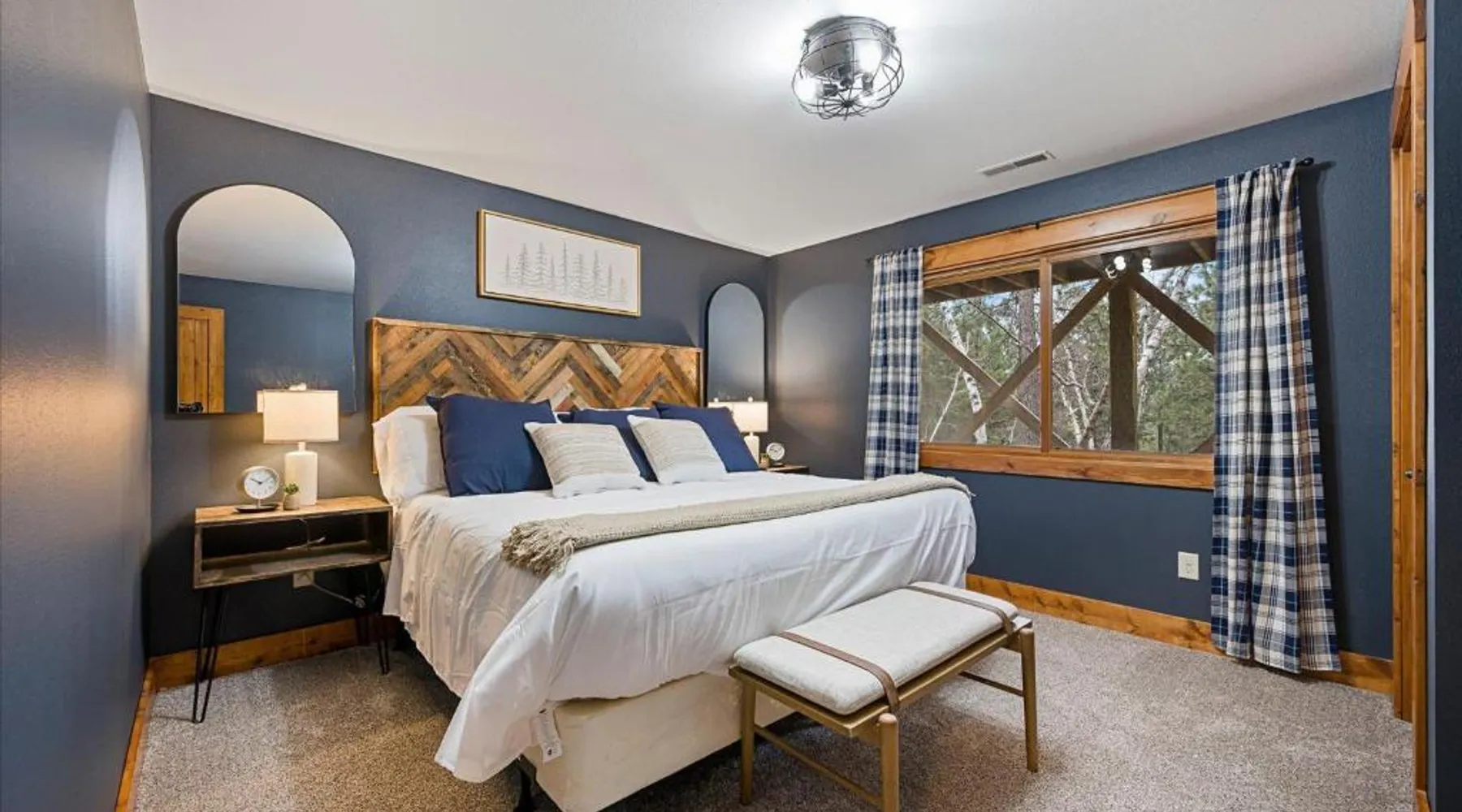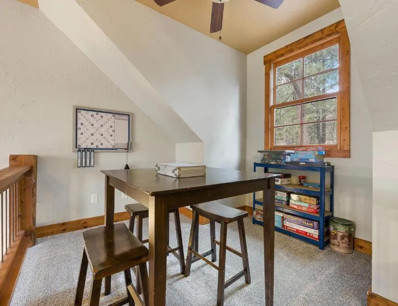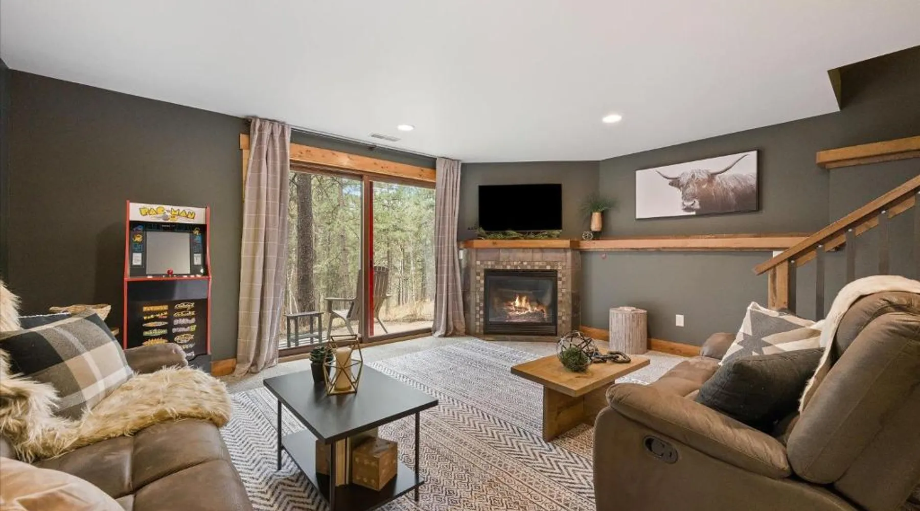 Spacious Accommodations: 7th Heaven Lodge in Lead offers a spacious holiday home with five bedrooms and three bathrooms. The living room features mountain views and a cozy fireplace, ensuring a comfortable stay. Relaxing Facilities: Guests can unwind in the sauna or hot tub, take a dip in the outdoor swimming pool, and stay connected with free WiFi. The property also includes a fully equipped kitchen, washing machine, and dishwasher. Local Attractions: Adams Museum is located 3.7 mi away, providing cultural activities. Rapid City Regional Airport is 56 mi from the lodge, facilitating convenient travel. Skiing enthusiasts can enjoy nearby slopes. The fireplace is a top feature of this holiday home. Boasting a private entrance, this air-conditioned holiday home includes 1 living room, 5 separate bedrooms and 3 bathrooms with a bath and a hairdryer. The well-fitted kitchen has a stovetop, a refrigerator, a dishwasher and kitchenware. The spacious holiday home offers a TV with cable channels, a washing machine, a dining area, heating as well as mountain views. The unit has 7 beds.