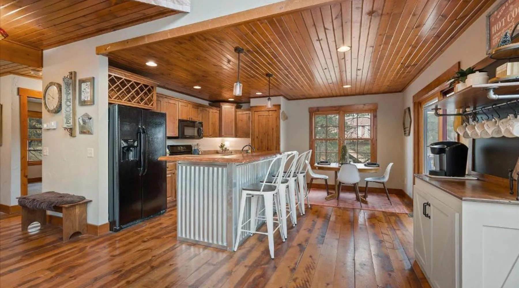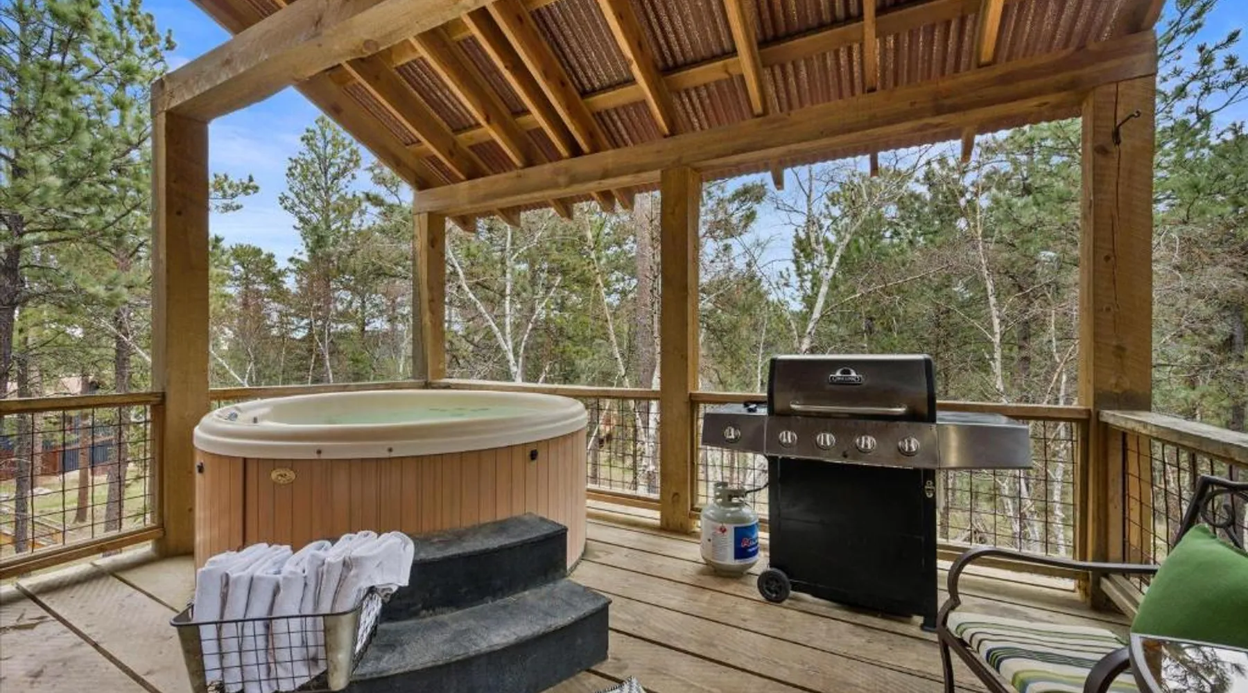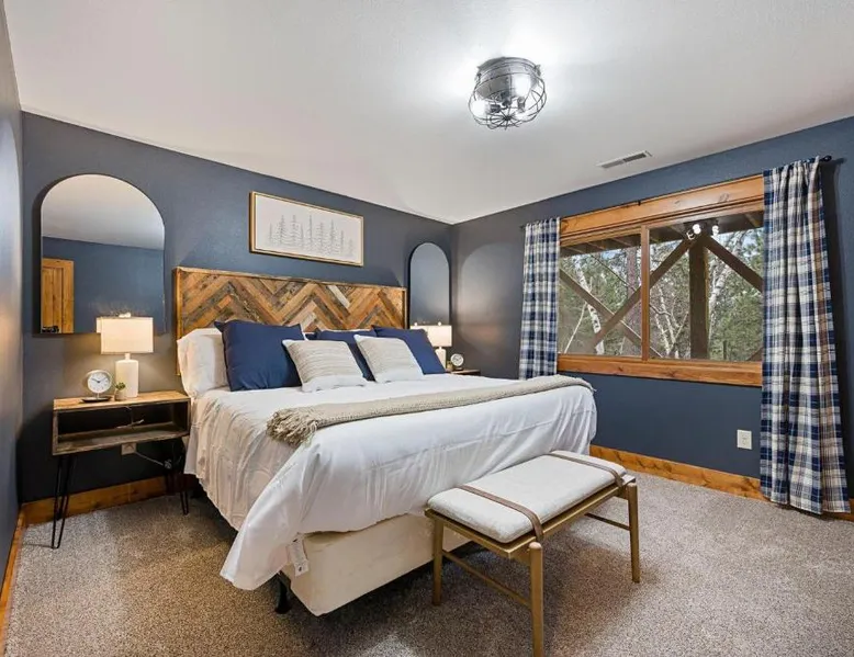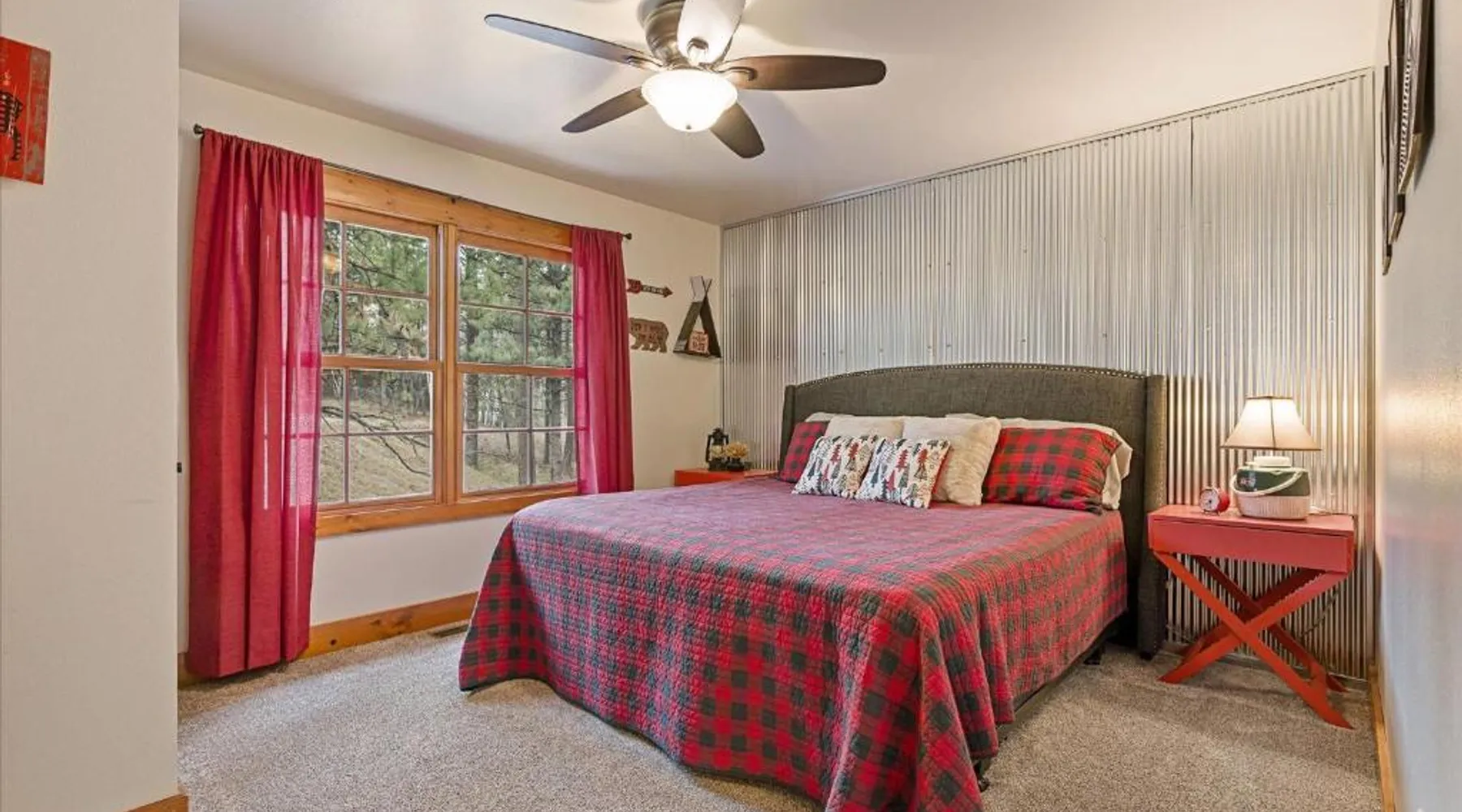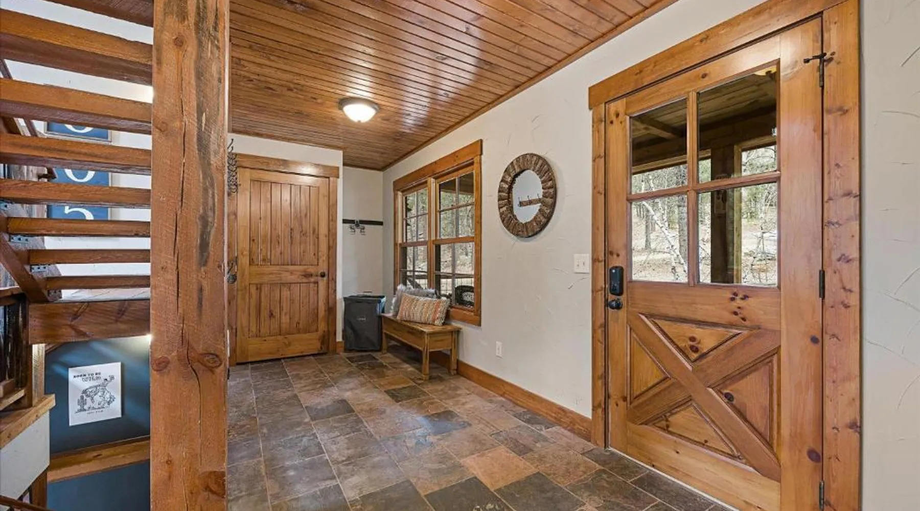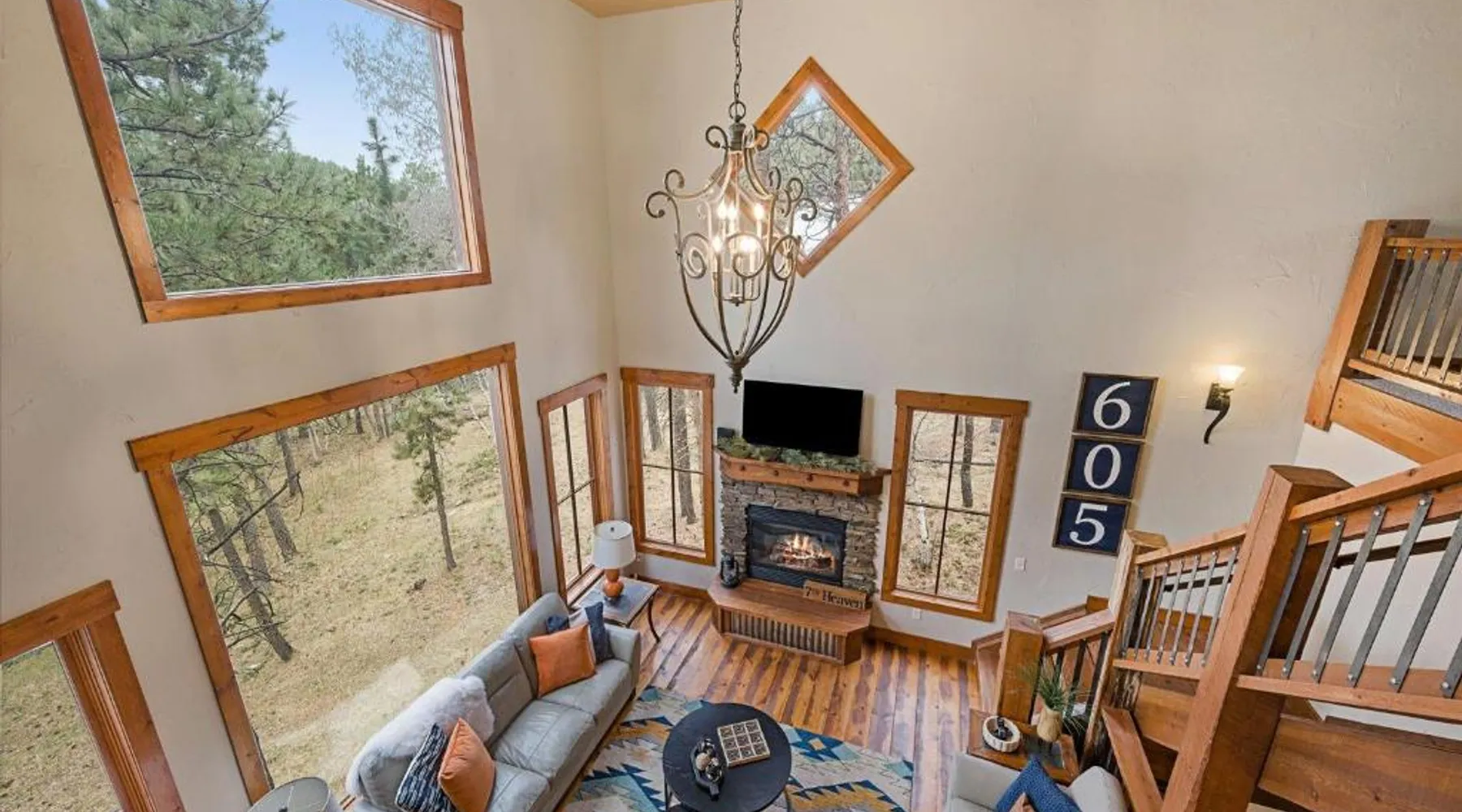 Spacious Accommodations: 7th Heaven Lodge in Lead offers a spacious holiday home with five bedrooms and three bathrooms. The living room features mountain views and a cozy fireplace, ensuring a comfortable stay. Relaxing Facilities: Guests can unwind in the sauna or hot tub, take a dip in the outdoor swimming pool, and stay connected with free WiFi. The property also includes a fully equipped kitchen, washing machine, and dishwasher. Local Attractions: Adams Museum is located 3.7 mi away, providing cultural activities. Rapid City Regional Airport is 56 mi from the lodge, facilitating convenient travel. Skiing enthusiasts can enjoy nearby slopes. The fireplace is a top feature of this holiday home. Boasting a private entrance, this air-conditioned holiday home includes 1 living room, 5 separate bedrooms and 3 bathrooms with a bath and a hairdryer. The well-fitted kitchen has a stovetop, a refrigerator, a dishwasher and kitchenware. The spacious holiday home offers a TV with cable channels, a washing machine, a dining area, heating as well as mountain views. The unit has 7 beds.