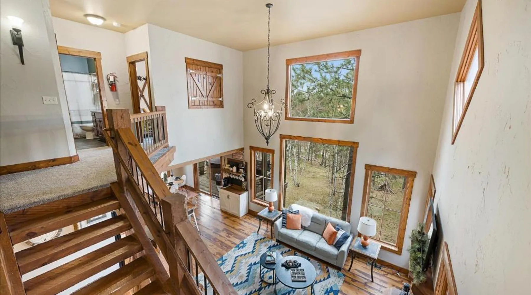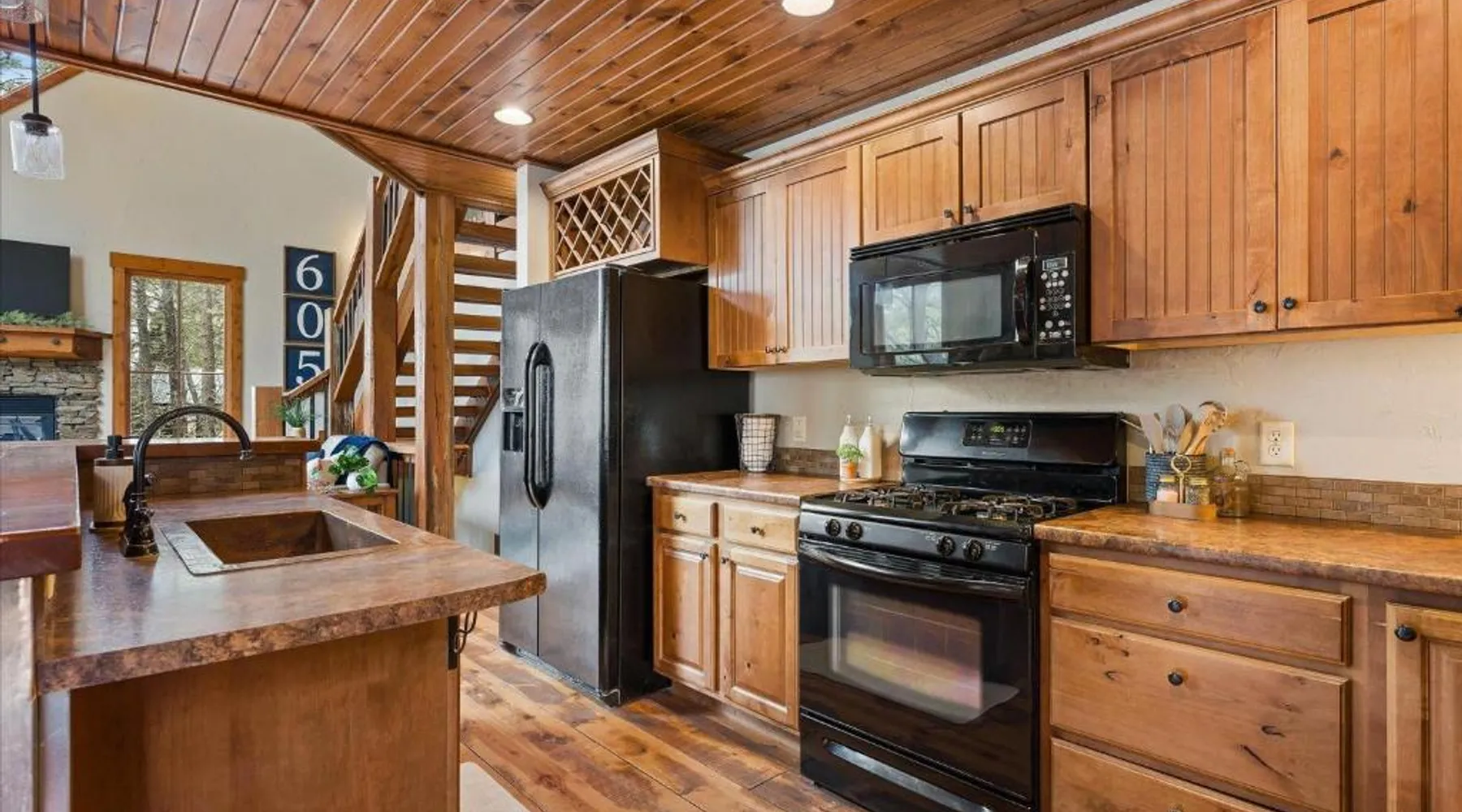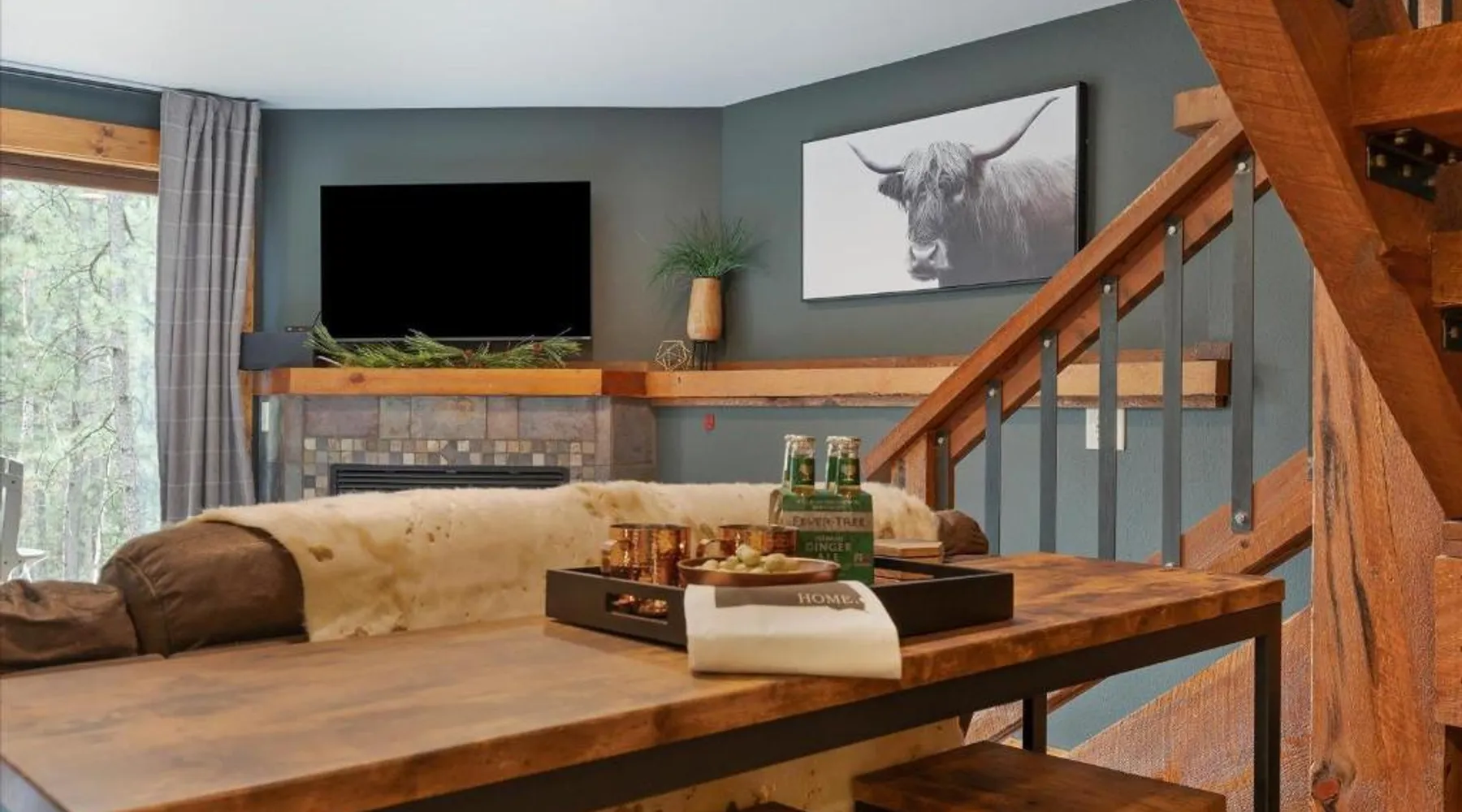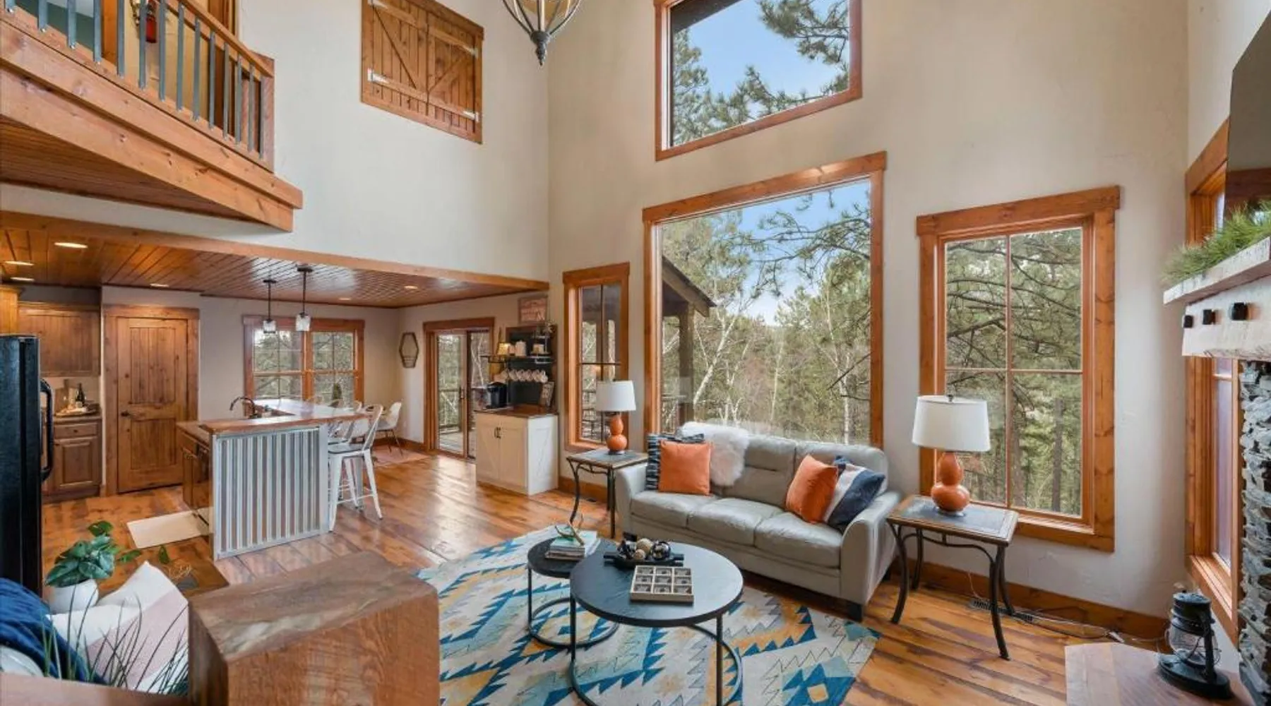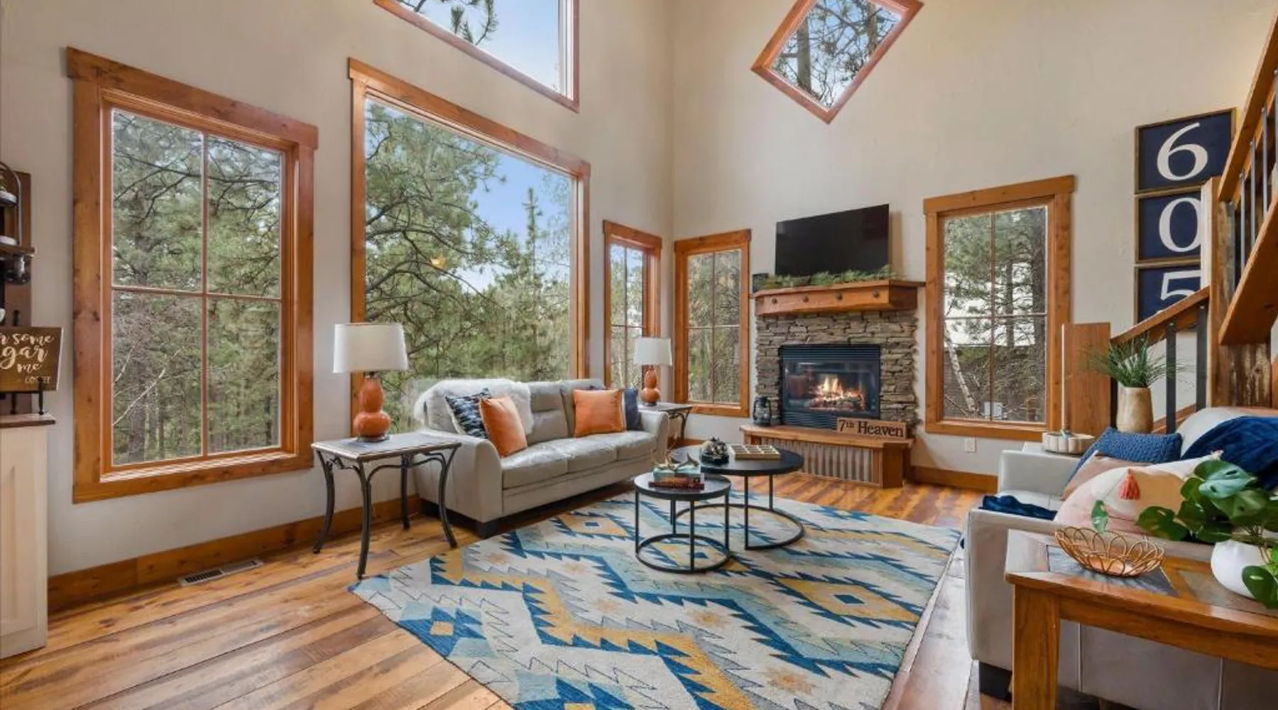 Spacious Accommodations: 7th Heaven Lodge in Lead offers a spacious holiday home with five bedrooms and three bathrooms. The living room features mountain views and a cozy fireplace, ensuring a comfortable stay. Relaxing Facilities: Guests can unwind in the sauna or hot tub, take a dip in the outdoor swimming pool, and stay connected with free WiFi. The property also includes a fully equipped kitchen, washing machine, and dishwasher. Local Attractions: Adams Museum is located 3.7 mi away, providing cultural activities. Rapid City Regional Airport is 56 mi from the lodge, facilitating convenient travel. Skiing enthusiasts can enjoy nearby slopes. The fireplace is a top feature of this holiday home. Boasting a private entrance, this air-conditioned holiday home includes 1 living room, 5 separate bedrooms and 3 bathrooms with a bath and a hairdryer. The well-fitted kitchen has a stovetop, a refrigerator, a dishwasher and kitchenware. The spacious holiday home offers a TV with cable channels, a washing machine, a dining area, heating as well as mountain views. The unit has 7 beds.