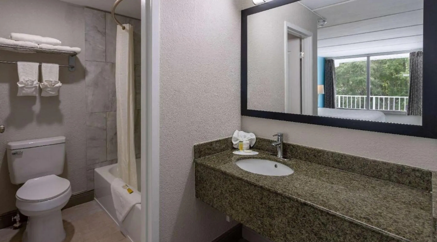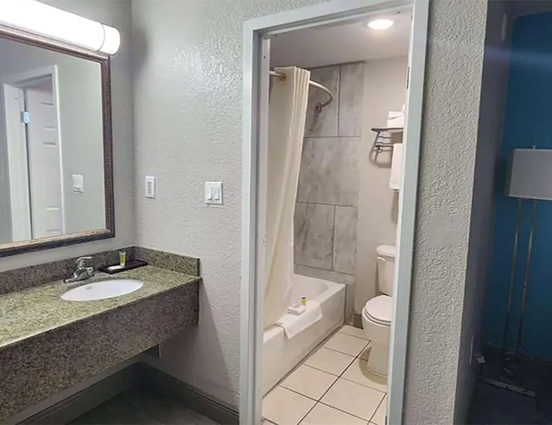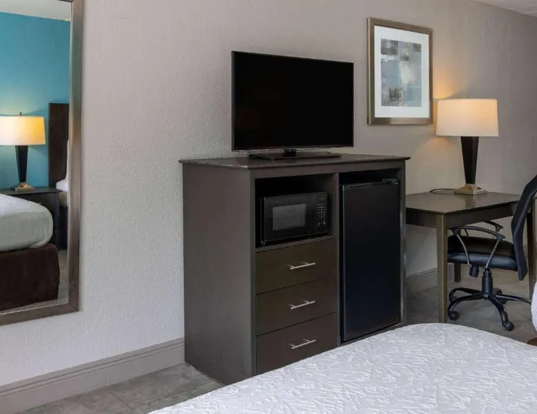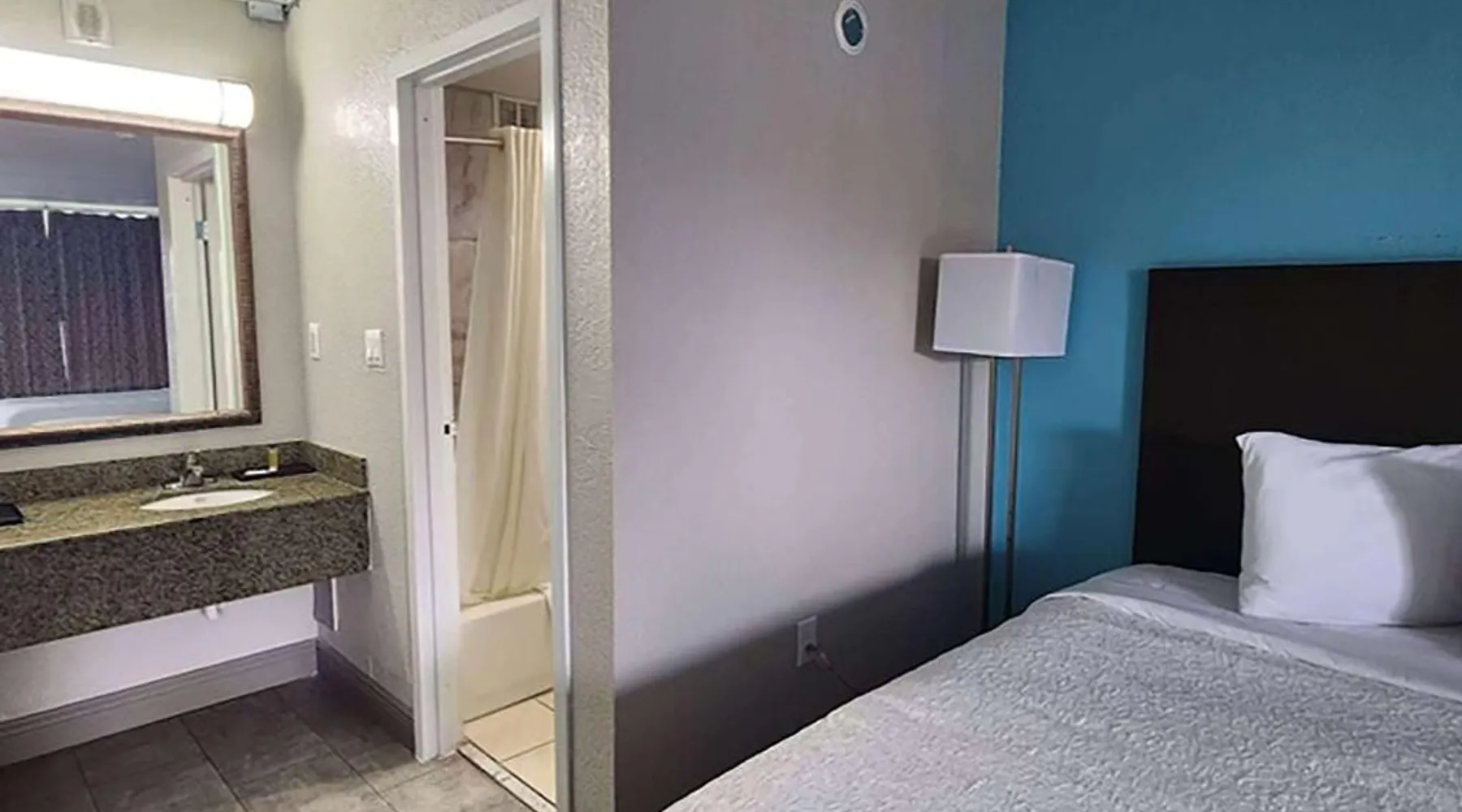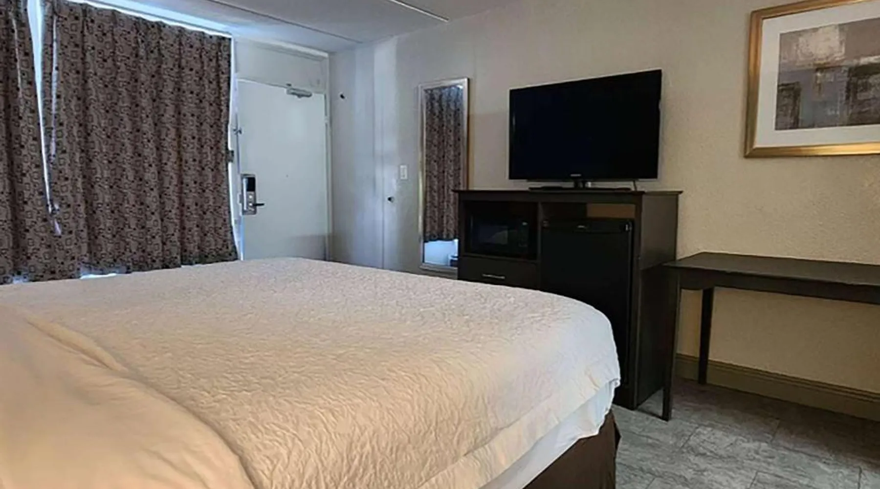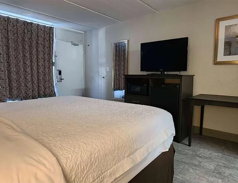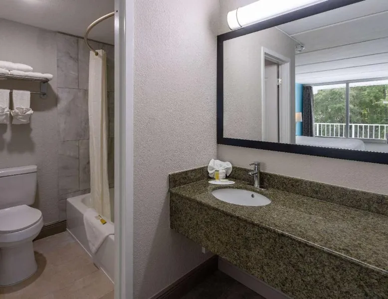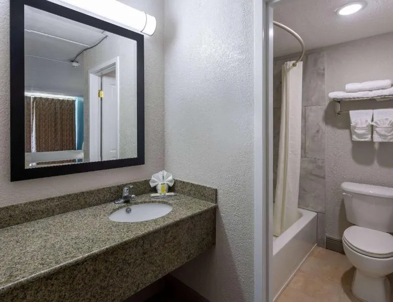 Comfortable Accommodations: Travelodge by Wyndham Kingsland GA in Kingsland offers air-conditioned rooms with private bathrooms, free WiFi, and modern amenities including a refrigerator, microwave, and TV. Each room features a work desk, private entrance, and free toiletries. Leisure Facilities: Guests can relax by the outdoor swimming pool or stay active in the fitness center. The property provides free on-site private parking and a 24-hour front desk with English-speaking staff. Convenient Location: Located 22 mi from Jacksonville International Airport, the motel is near attractions such as Amelia Island Historic District (25 mi), The Golf Club Of Amelia Island At Summer Beach (25 mi), and Amelia Island Lighthouse (25 mi). Free WiFi is available throughout the property. The spacious double room provides air conditioning, a private entrance, as well as a private bathroom featuring a bath and a shower. This double room features tumble dryer, heating, a flat-screen TV with cable channels and a quiet street view. The unit offers 1 bed.