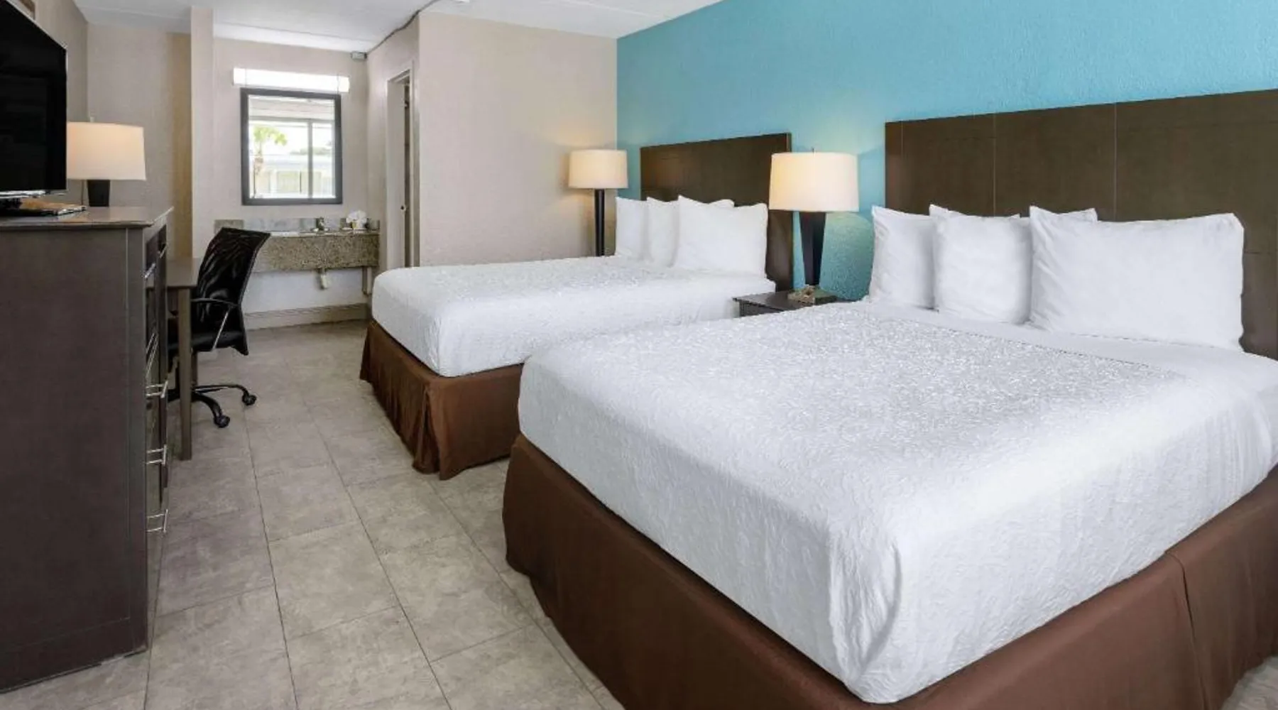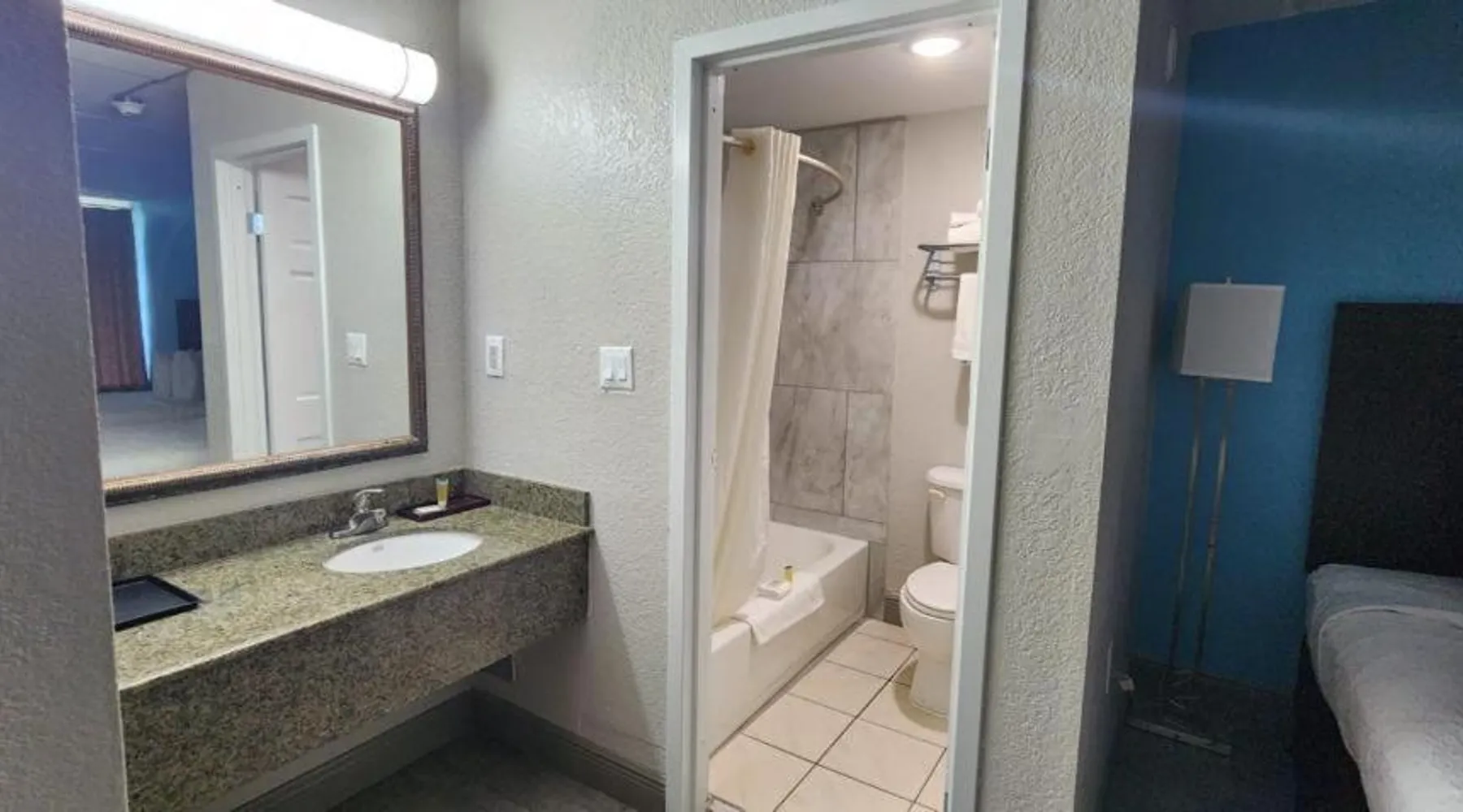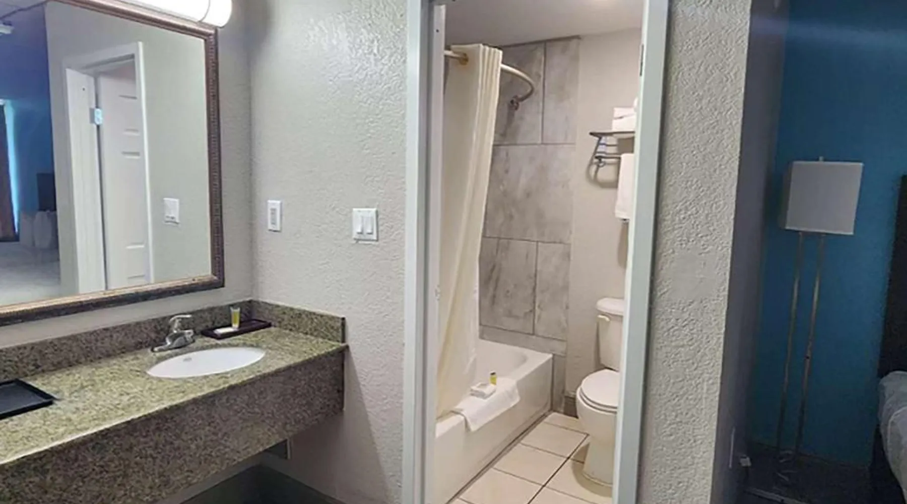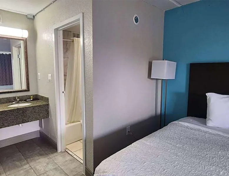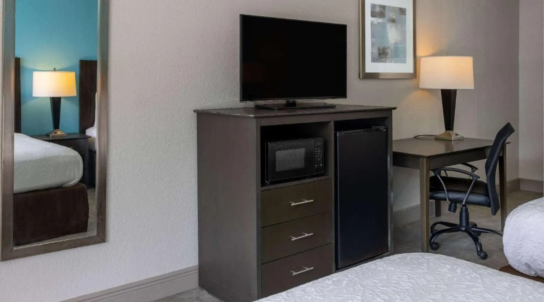 Comfortable Accommodations: Travelodge by Wyndham Kingsland GA in Kingsland offers air-conditioned rooms with private bathrooms, free WiFi, and modern amenities including a refrigerator, microwave, and TV. Each room features a work desk, private entrance, and free toiletries. Leisure Facilities: Guests can relax by the outdoor swimming pool or stay active in the fitness center. The property provides free on-site private parking and a 24-hour front desk with English-speaking staff. Convenient Location: Located 22 mi from Jacksonville International Airport, the motel is near attractions such as Amelia Island Historic District (25 mi), The Golf Club Of Amelia Island At Summer Beach (25 mi), and Amelia Island Lighthouse (25 mi). Free WiFi is available throughout the property. The spacious double room provides air conditioning, a private entrance, as well as a private bathroom featuring a bath and a shower. This double room features tumble dryer, heating, a flat-screen TV with cable channels and a quiet street view. The unit offers 1 bed.