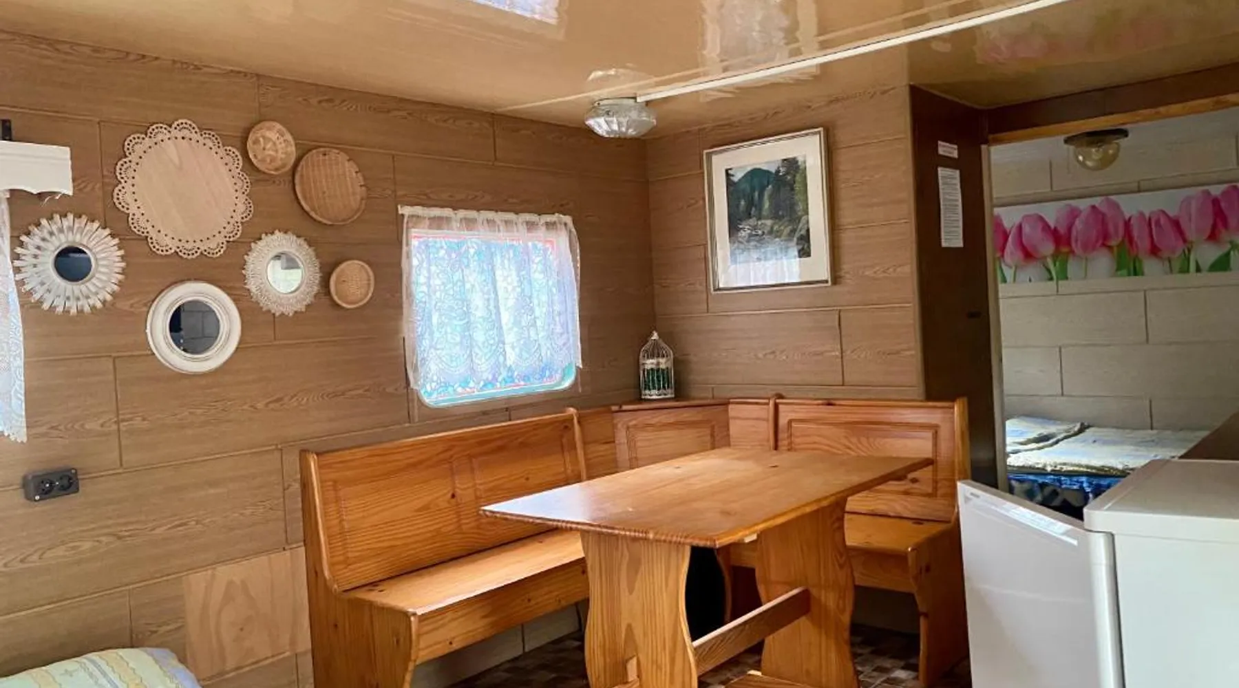 Sun Terrace and Garden: Ośrodek Wypoczynkowy Głębokie 4 in Głębokie offers a sun terrace and a garden. Guests can relax in the outdoor seating area or enjoy the outdoor fireplace. Comfortable Accommodations: The apartment features a kitchenette, private bathroom, and a dining area. Additional amenities include a sofa bed, TV, and free on-site private parking. Leisure Facilities: The property provides an outdoor play area, barbecue facilities, and a terrace. Family rooms and outdoor dining areas enhance the guest experience. Nearby Attractions: Located 42 mi from Zielona Góra Airport, the apartment is 21 mi from The Monument of Jesus, 25 mi from Stadium Miedzychod, and 26 mi from the City Art Center. Boasting 1 bedroom and 1 bathroom with a shower, this chalet has a well-fitted kitchen and a terrace. Guests will find a refrigerator, kitchenware and an electric kettle in the kitchen. The chalet also features a barbecue. This chalet includes a dining area, a flat-screen TV with cable channels a private entrance and an outdoor dining area. The unit offers 4 beds.