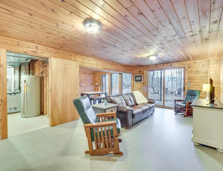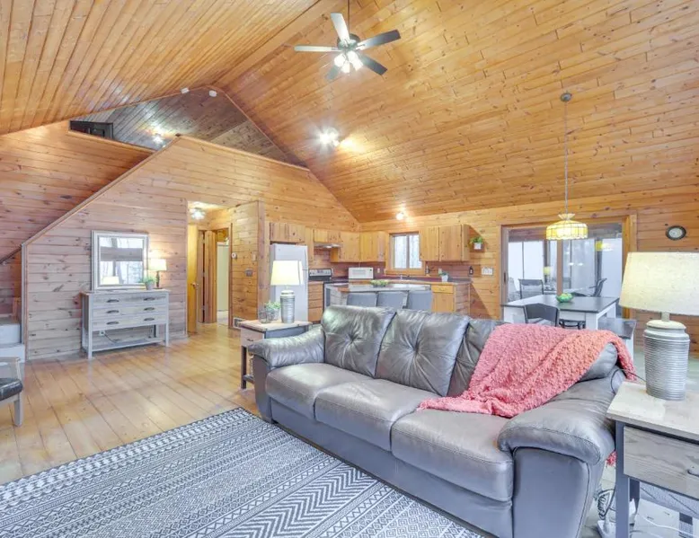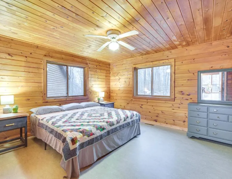 Spacious Accommodations: Cozy Wisconsin Cabin with Deck, Kayaks and Lake Views! in Hayward offers three bedrooms and two bathrooms. The living room includes a fireplace and a work desk. Modern Amenities: Guests enjoy free WiFi, air-conditioning, a washing machine, and a fully equipped kitchen. Additional amenities include a patio, barbecue, and a private entrance. Outdoor Activities: The property features a deck with lake views and kayaks for exploring the surrounding area. Local Attractions: The National Fresh Water Fishing Hall of Fame is located 6.8 mi away, and Duluth International Airport is 88 mi from the property. The fireplace is the standout feature of this holiday home. Boasting a private entrance, this air-conditioned holiday home comes with 2 living rooms, 3 separate bedrooms and 2 bathrooms with a bath and a shower. The holiday home's kitchen, which has kitchenware, is available for cooking and storing food. The spacious holiday home features a washing machine, tumble dryer, a barbecue, heating, as well as a flat-screen TV. The unit has 5 beds.