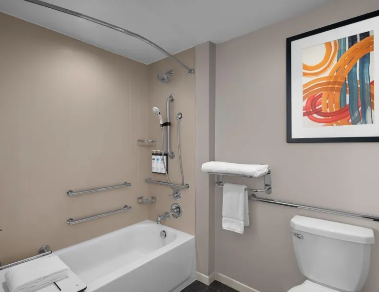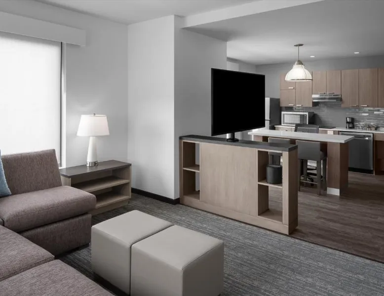 Comfortable Accommodations: Hyatt House Lansing-University Area in Lansing offers rooms with air-conditioning, private bathrooms, and modern amenities. Guests enjoy free WiFi, flat-screen TVs, and work desks. Dining and Leisure: The hotel features a fitness center, indoor swimming pool, terrace, and restaurant. A child-friendly buffet is available, along with outdoor seating and barbecue facilities. Convenient Location: Located 7.5 mi from Capital Region International Airport and near attractions such as Jack Breslin Student Event Center (1.1 mi) and Michigan State University (2 mi). Boating is available in the surroundings. Guest Satisfaction: Highly rated for room cleanliness, attentive staff, and quality breakfast. This air-conditioned suite is consisted of of a flat-screen TV with cable channels and a private bathroom. The unit has 2 beds.