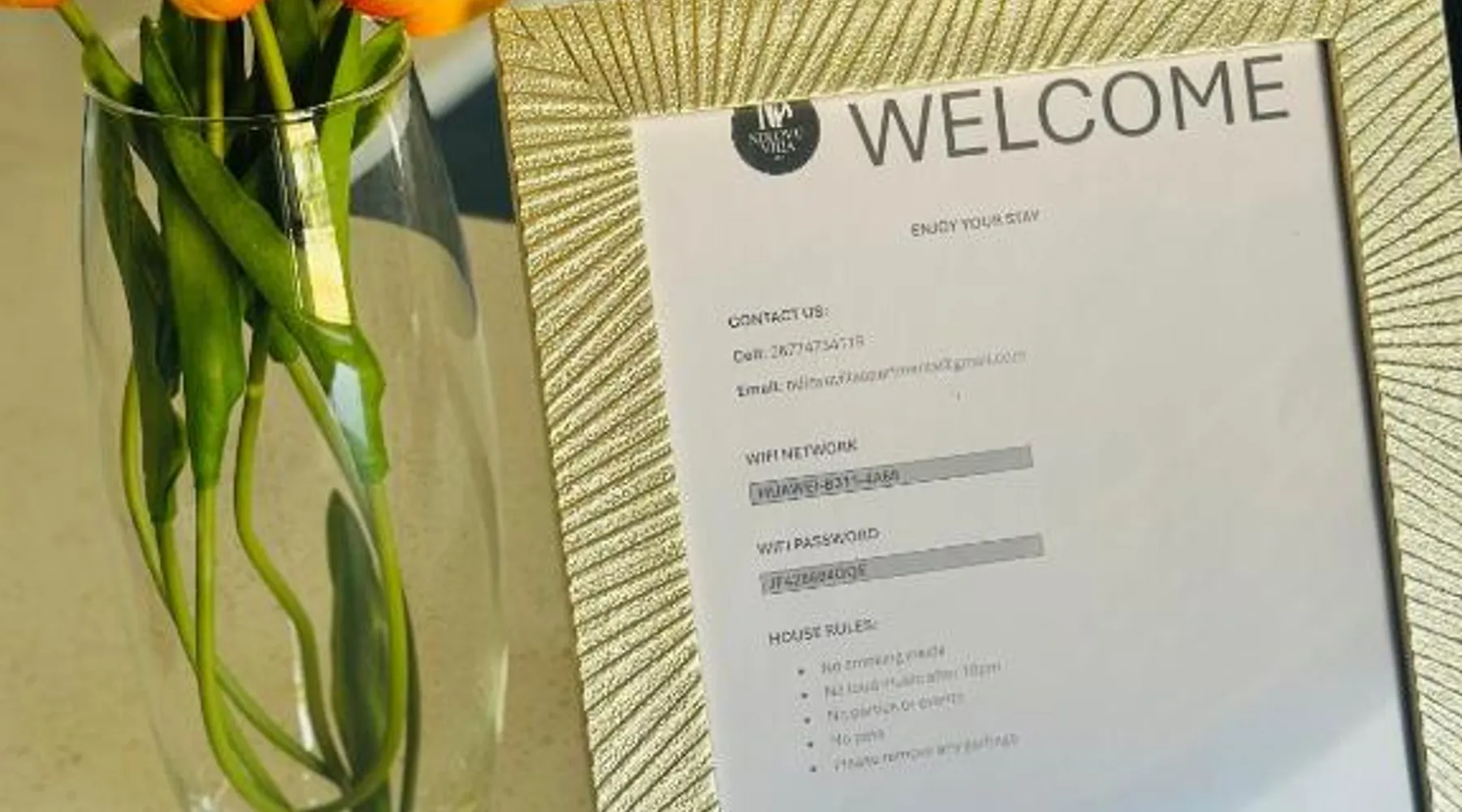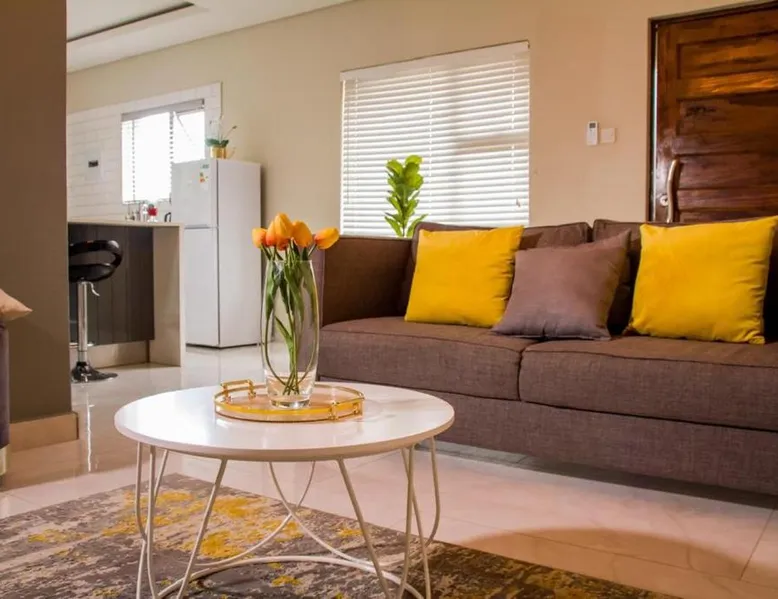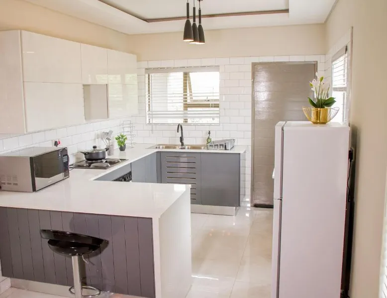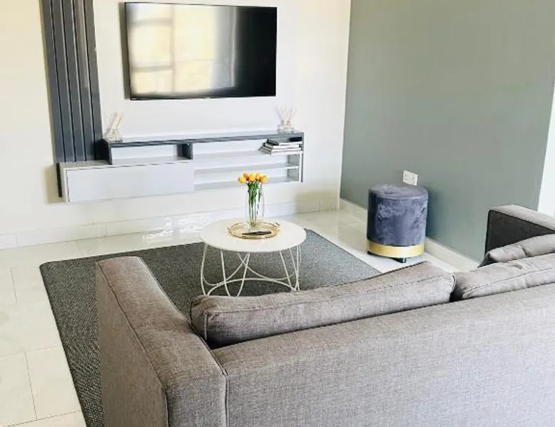 Comfortable Accommodations: Ndlovu Villa Apartments in Gaborone offers a garden and terrace with free WiFi. The property features a lounge, hot tub, shared kitchen, outdoor seating area, picnic area, and family rooms. Modern Amenities: Each apartment includes air-conditioning, a kitchenette, streaming services, private bathroom, kitchen, barbecue, garden views, refrigerator, seating area, free toiletries, microwave, carpeted floor, TV, private entrance, sofa, tiled floors, electric kettle, kitchenware, wardrobe, oven, stovetop, terrace, hot tub, balcony, spa bath, patio, bath, tea and coffee maker, hairdryer, coffee machine, outdoor furniture, outdoor dining area, walk-in shower, inner courtyard view, work desk, shower. Convenient Location: Sir Seretse Khama International Airport is 4.3 mi away. Nearby attractions include Gaborone International Conference Center (5.6 mi), SADC Head Quarters (6.8 mi), Three Dikgosi Monument (6.8 mi), Gabarone Station (7.5 mi), Government Enclave (7.5 mi), National Museum and Art Gallery (8.1 mi), Blue Tree Golf Driving (8.7 mi), Gaborone Game Reserve (9.9 mi), Gaborone Golf Course (9.9 mi), Kgale Hill (12 mi). Highly rated by guests. Boasting a private entrance, this air-conditioned apartment features 1 living room, 2 separate bedrooms and 1 bathroom with a walk-in shower. Guests will find a stovetop, a refrigerator, kitchenware and an oven in the kitchen. The apartment also comes with a barbecue. The apartment features a flat-screen TV with streaming services, a seating area, a wardrobe, an electric kettle as well as garden views. The unit has 2 beds.