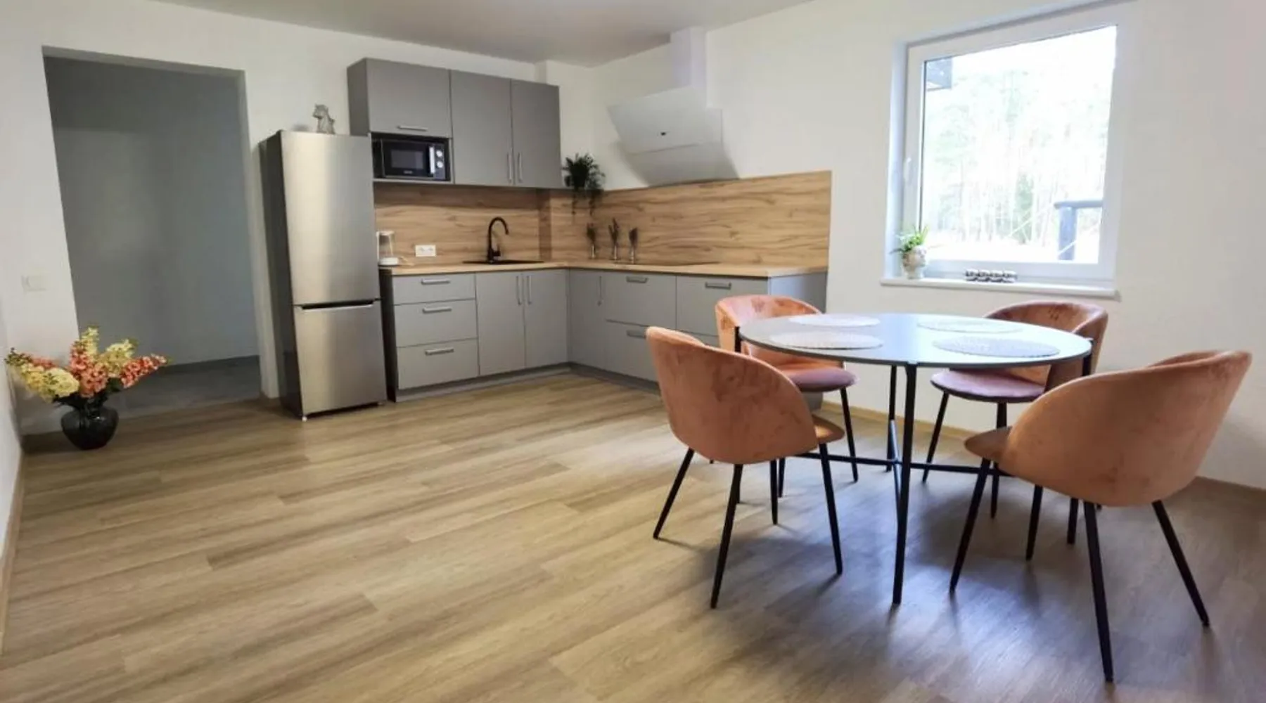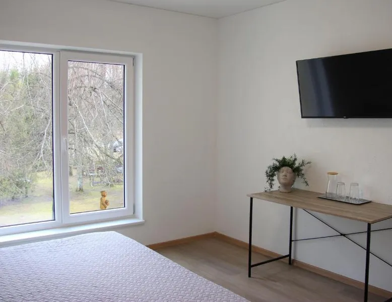 Comfortable Accommodations: Pakalnės sodyba in Skverbai offers a spacious apartment with a garden, terrace, and free WiFi. Family rooms and full-day security ensure a pleasant stay. Modern Amenities: The apartment features a kitchenette, balcony, patio, private bathroom, and garden views. Additional amenities include air-conditioning, sofa bed, and a work desk. Convenient Location: Located 95 mi from Kaunas Airport, the property is 24 mi from the Horse Museum and 21 mi from Kalnapilio Arena. Free on-site private parking is available. Guest Satisfaction: Highly rated by guests for its comfortable accommodations and excellent facilities. The double room's kitchen is available for cooking and storing food. The double room offers a dining area, heating, a terrace with garden views as well as a private bathroom featuring a shower. The unit offers 1 bed.