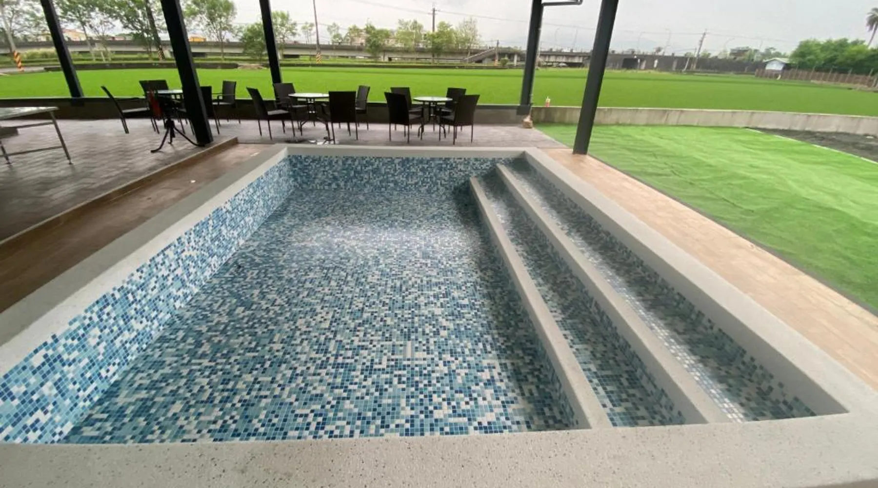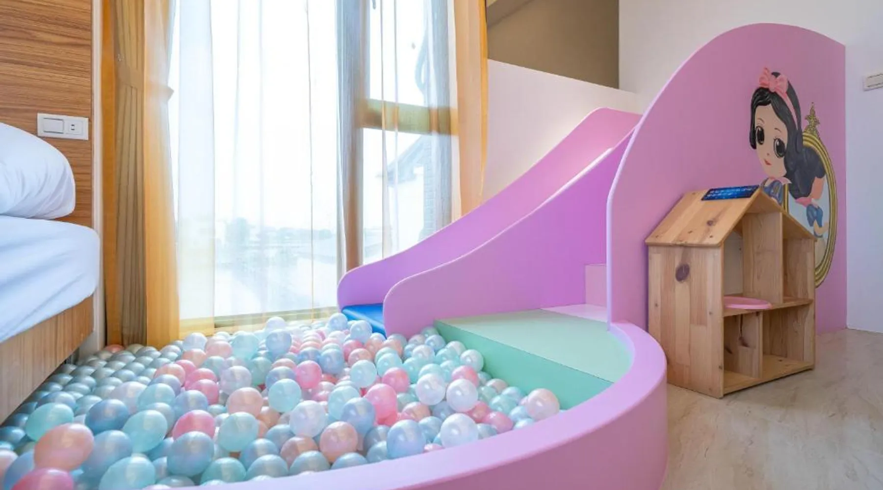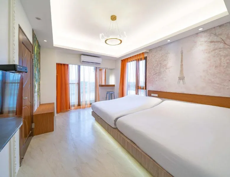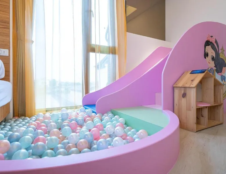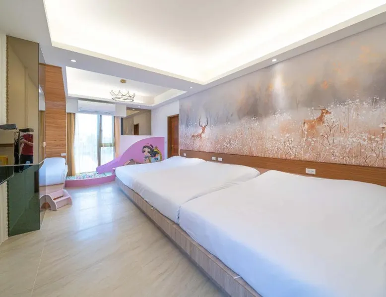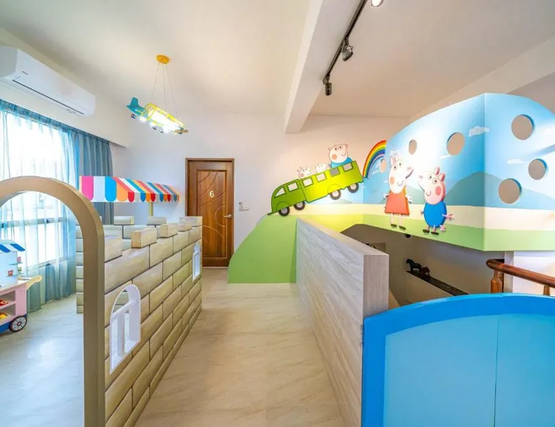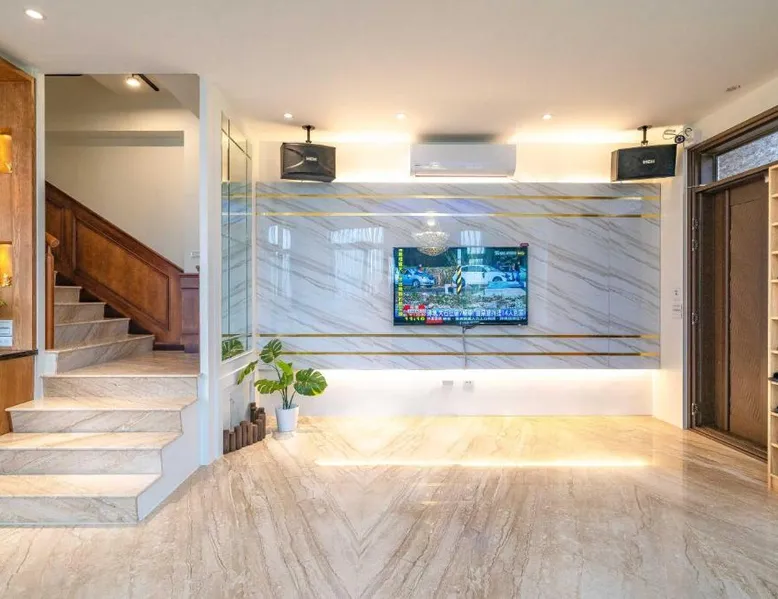 Spacious Accommodations: 慕研民宿 包棟 KTV 游泳池 羅東運動公園 22p in Yilan City offers a spacious villa with five bedrooms and five bathrooms. The property features a living room, dining area, and a fully equipped kitchen. Outdoor Amenities: Guests can enjoy a garden, terrace, and private pool. The villa includes an indoor play area, outdoor seating, picnic area, and children's playground. Free WiFi is available throughout the property. Convenient Location: Located 38 mi from Taipei Songshan Airport, the villa is 2.8 mi from Luodong Railway Station and 13 mi from Jiaoxi Railway Station. Hiking trails surround the property, providing ample outdoor activities. Guest Satisfaction: Highly rated for room comfort, bed comfort, and room cleanliness, the villa ensures a pleasant stay for all visitors. This villa features a private pool. This spacious villa features 1 living room, 5 separate bedrooms and 5 bathrooms with a shower and free toiletries. Guests will find kitchenware in the kitchen. The villa also comes with a barbecue. Boasting a terrace with garden views, this villa also features air conditioning and a flat-screen TV. The unit has 13 beds.