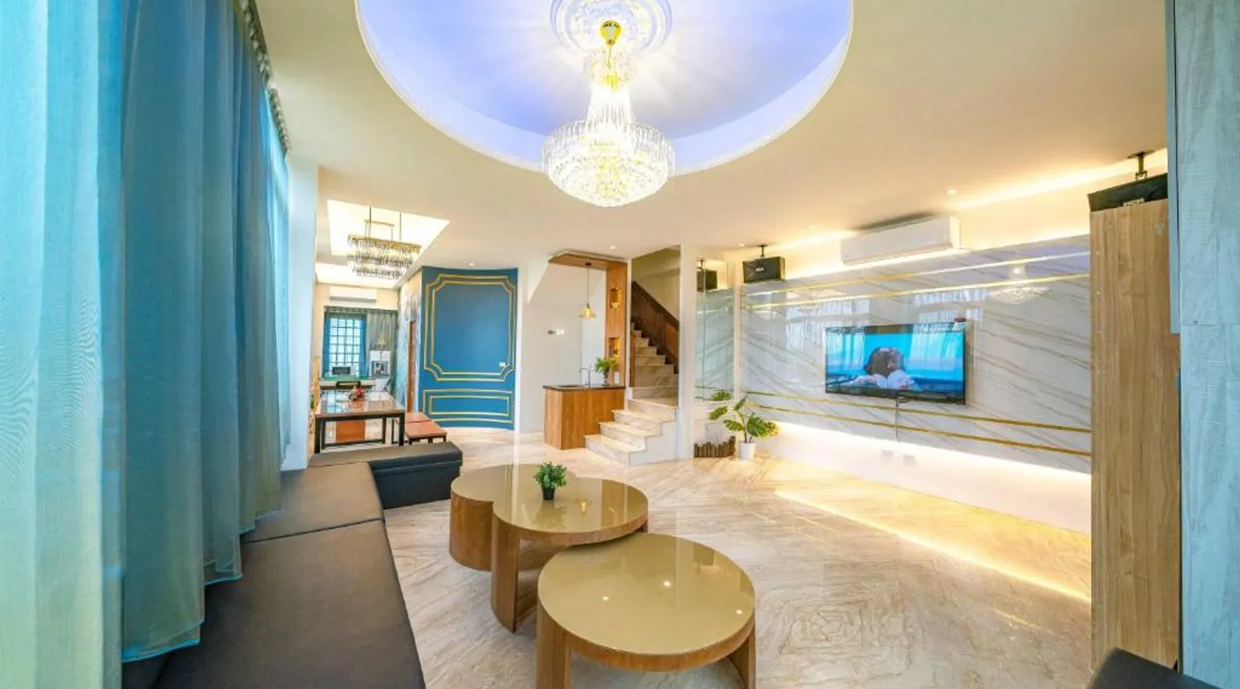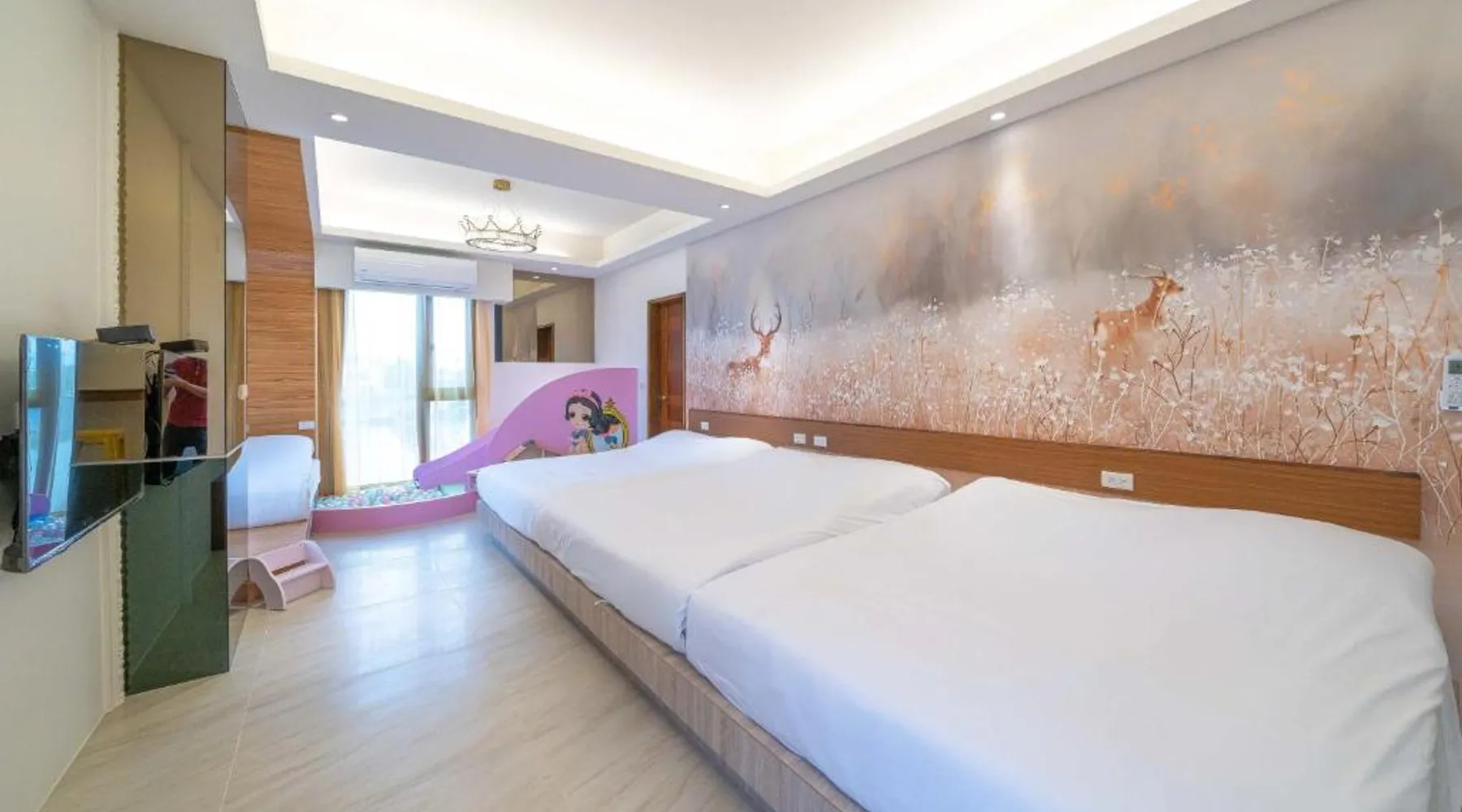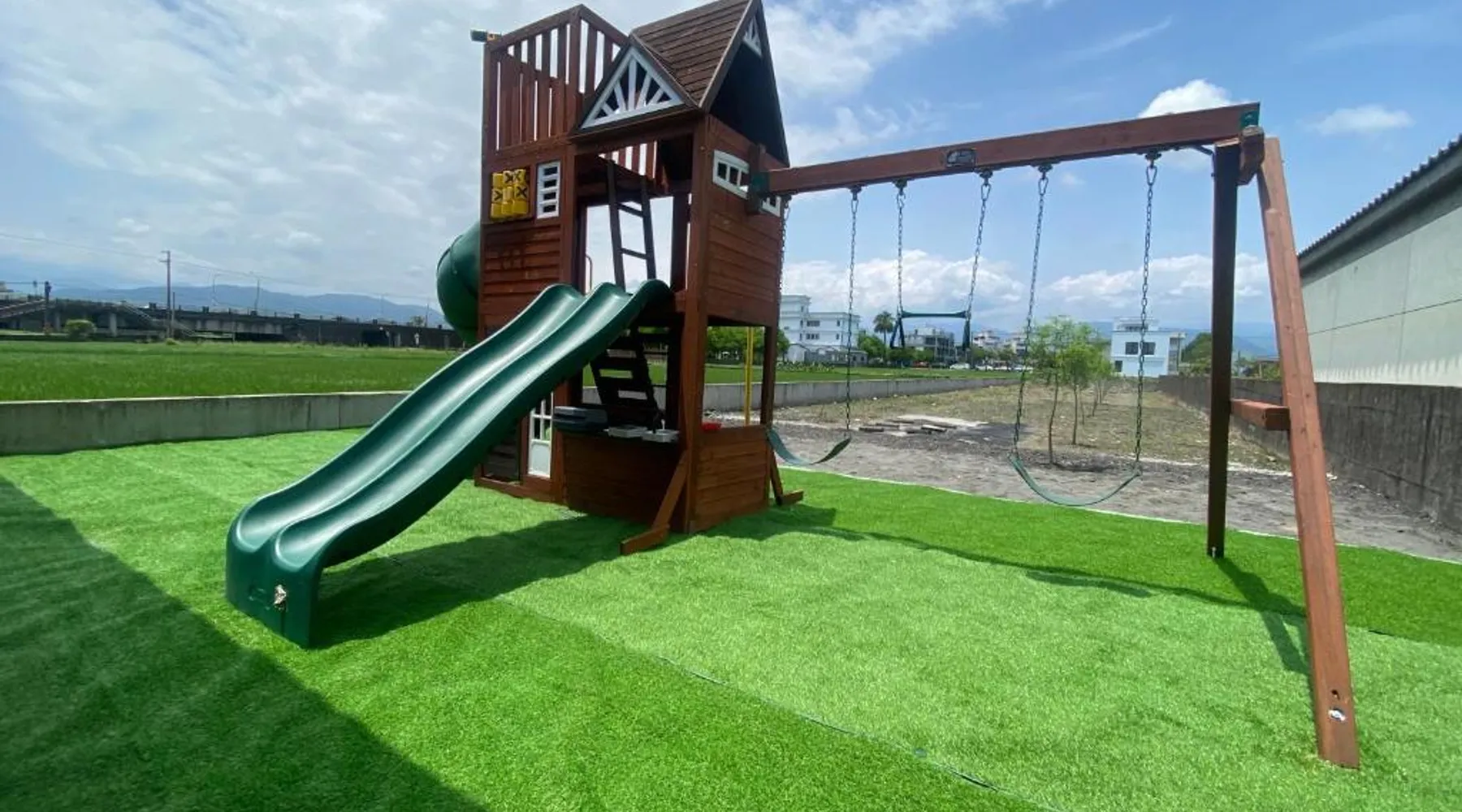 Spacious Accommodations: 慕研民宿 包棟 KTV 游泳池 羅東運動公園 22p in Yilan City offers a spacious villa with five bedrooms and five bathrooms. The property features a living room, dining area, and a fully equipped kitchen. Outdoor Amenities: Guests can enjoy a garden, terrace, and private pool. The villa includes an indoor play area, outdoor seating, picnic area, and children's playground. Free WiFi is available throughout the property. Convenient Location: Located 38 mi from Taipei Songshan Airport, the villa is 2.8 mi from Luodong Railway Station and 13 mi from Jiaoxi Railway Station. Hiking trails surround the property, providing ample outdoor activities. Guest Satisfaction: Highly rated for room comfort, bed comfort, and room cleanliness, the villa ensures a pleasant stay for all visitors. This villa features a private pool. This spacious villa features 1 living room, 5 separate bedrooms and 5 bathrooms with a shower and free toiletries. Guests will find kitchenware in the kitchen. The villa also comes with a barbecue. Boasting a terrace with garden views, this villa also features air conditioning and a flat-screen TV. The unit has 13 beds.