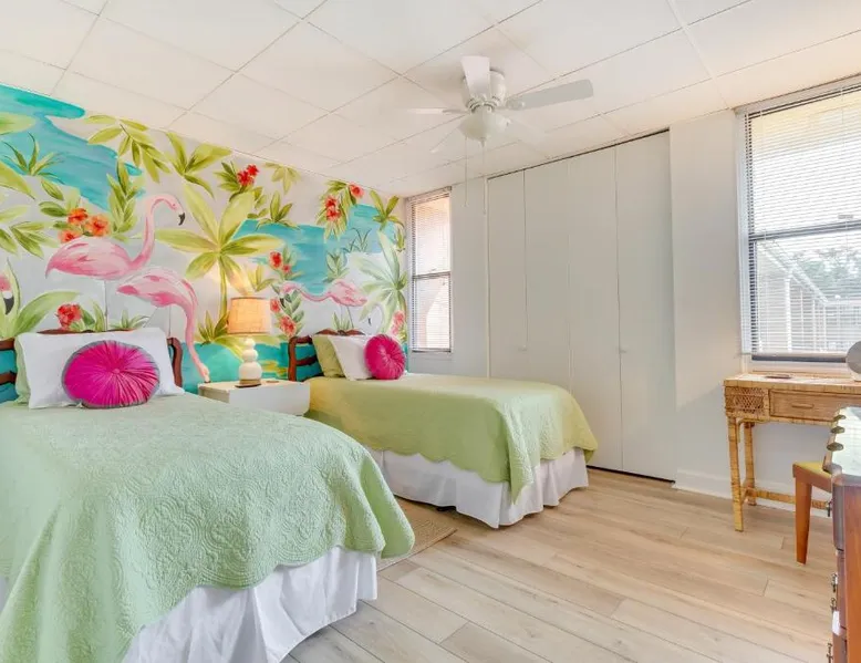 Spacious Accommodations: Gulf Breeze Escape with Patio and Community Pool! in Gulf Breeze offers a spacious apartment with two bedrooms and two bathrooms. The ground-floor unit features a private entrance and a living room. Modern Amenities: Guests enjoy free WiFi, air-conditioning, and a fully equipped kitchen with a coffee machine, microwave, dishwasher, and oven. Additional amenities include a TV, hairdryer, and free toiletries. Convenient Location: Located 9.3 mi from Pensacola International Airport, the property is close to Quietwater Beach (1.6 mi), Pensacola Beach Gulf Pier (2.4 mi), and Gulf Islands (5 mi). Nearby attractions include Historic Pensacola Village and the Saenger Theater. This spacious apartment is consisted of of 1 living room, 2 separate bedrooms and 2 bathrooms with a bath and free toiletries. The well-equipped kitchen features a stovetop, a refrigerator, a dishwasher and kitchenware. The apartment offers air conditioning, a private entrance, a coffee machine, as well as a TV with cable channels. The unit offers 4 beds.