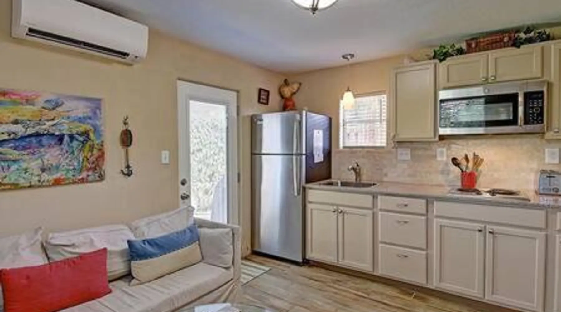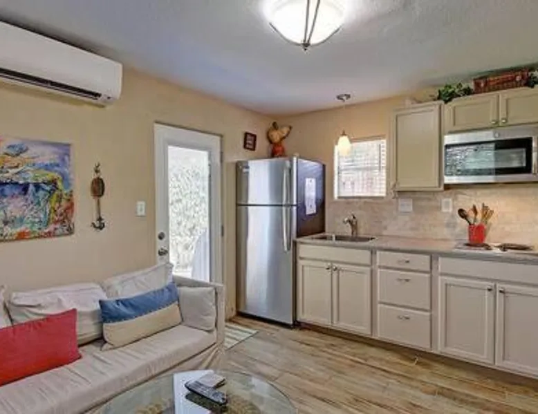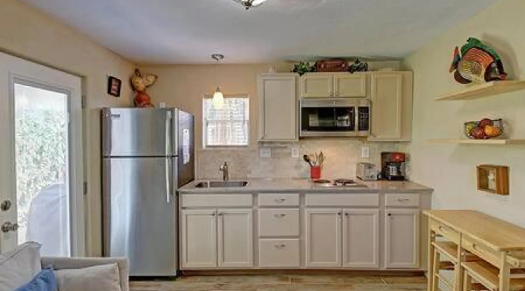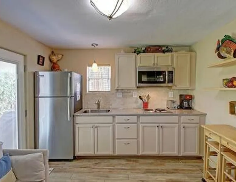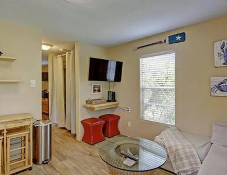 Comfortable Living: Spanish Village Cottage w private cabana in Port Aransas offers a holiday home with one bedroom and a living room. The property includes a fully equipped kitchen, air-conditioning, and a private entrance. Outdoor Amenities: Guests can relax in the private cabana or enjoy the garden. Free WiFi is available throughout the property, ensuring connectivity. Convenient Location: Located 39 mi from Corpus Christi International Airport, the cottage is a short walk from Port Aransas Beach (16 minutes) and Port Aransas Marina (19 minutes). Nearby attractions include The University of Texas Marine Science Institute (0.9 mi) and Port Aransas Art Center (few steps). Highly Rated: Guests appreciate the comfortable accommodations and excellent facilities, making it a highly rated choice for a memorable holiday. Featuring a private entrance, this air-conditioned holiday home is consisted of of 1 living room, 1 separate bedroom and 1 bathroom with a hairdryer. Guests will find a stovetop, a refrigerator, kitchenware and a microwave in the kitchen. The holiday home also has a barbecue. This holiday home features a tea and coffee maker, a wardrobe, a TV with cable channels and a patio. The unit offers 2 beds.