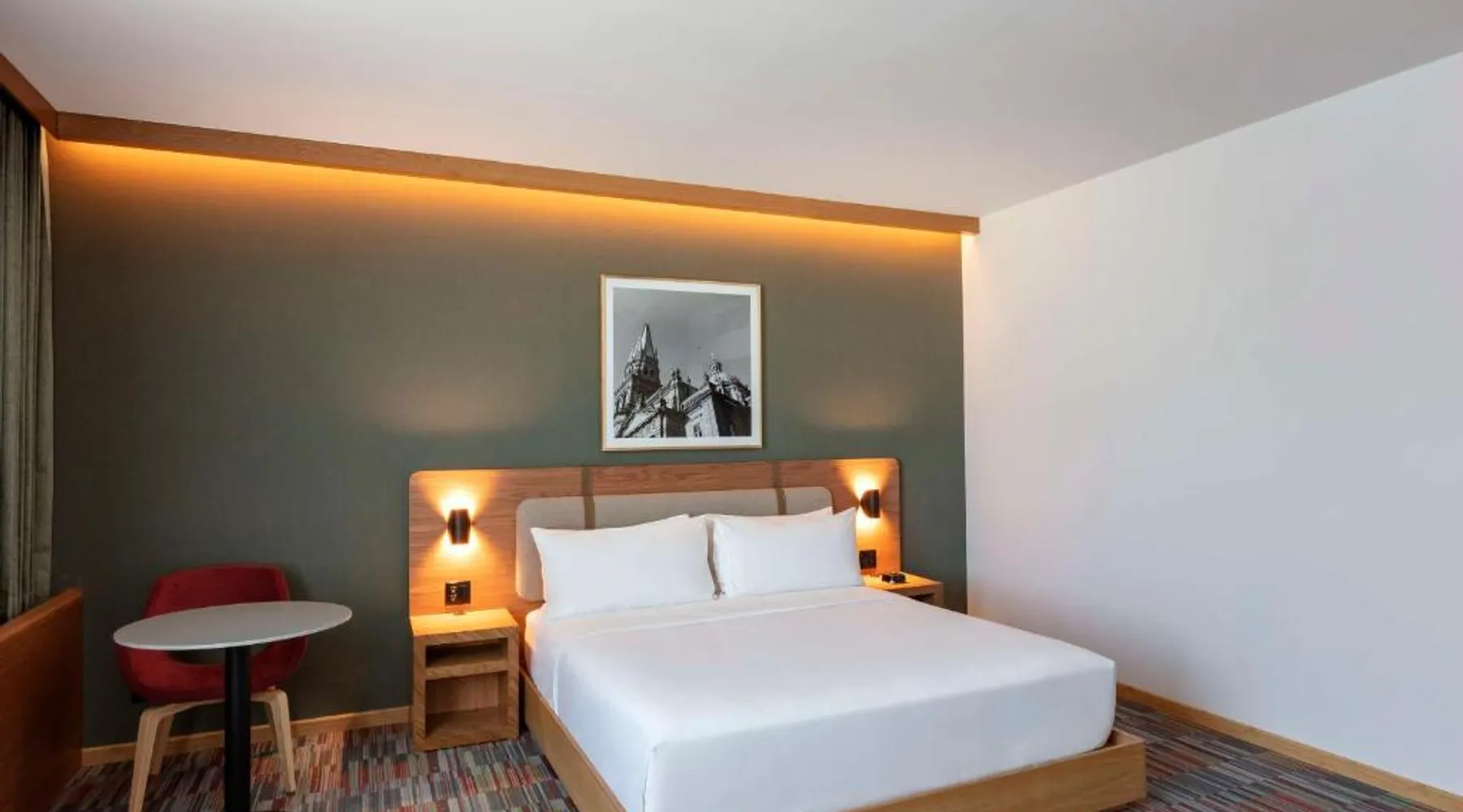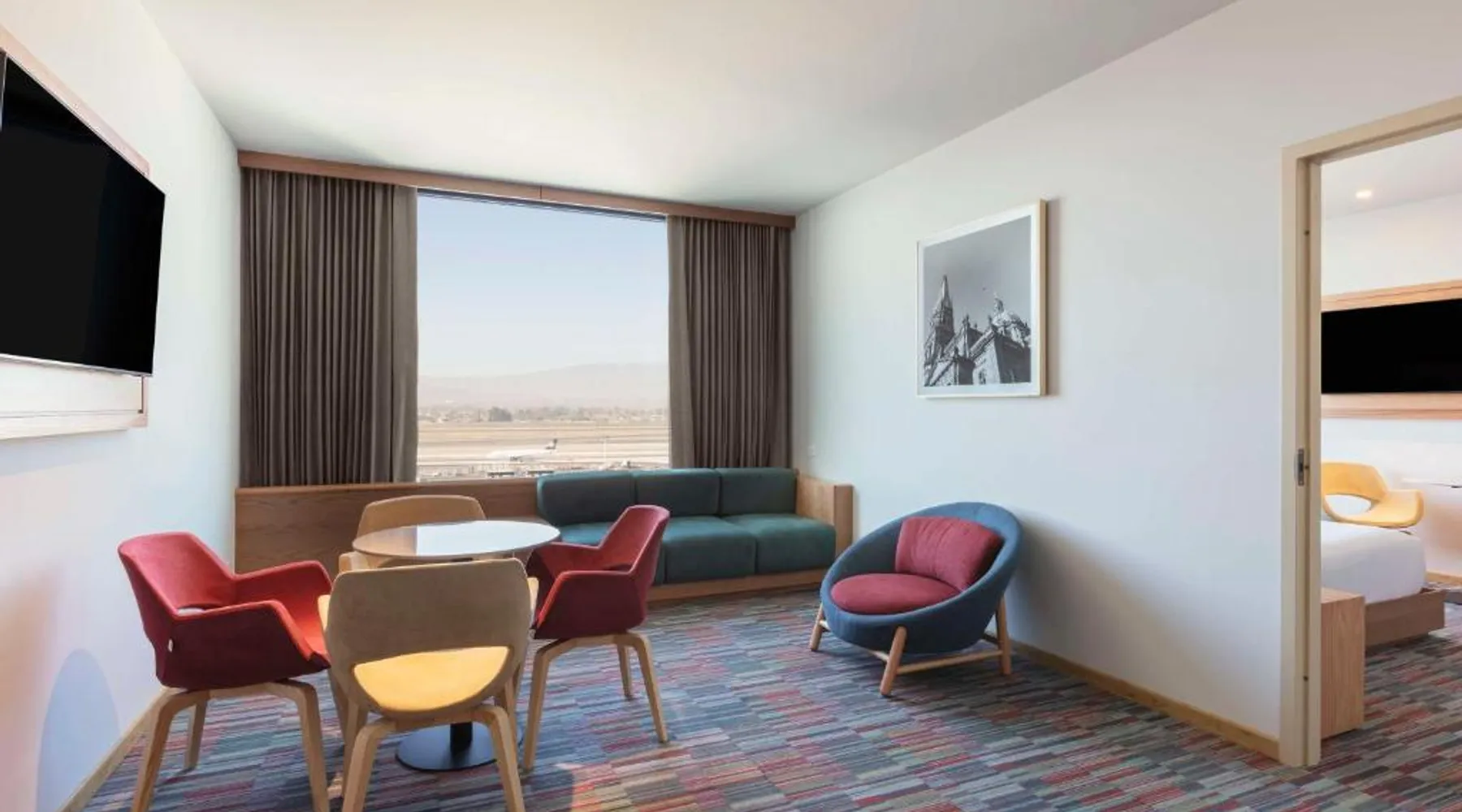 Comfortable Accommodations: Hilton Garden Inn Guadalajara Airport in Guadalajara offers family rooms with air-conditioning, free WiFi, and modern amenities. Each room includes a work desk, refrigerator, and TV. Dining Options: The hotel features a family-friendly restaurant serving American, Mexican, and international cuisines. Guests can enjoy breakfast with local specialties, warm dishes, fresh pastries, and fruits. A bar is also available for relaxation. Convenient Location: Located a few steps from Guadalajara Airport, the hotel is near attractions such as Tlaquepaque Regional Ceramic Museum (9.3 mi) and Guadalajara Zoo (17 mi). Jose Cuervo Express Train is 12 mi away. Guest Services: The hotel offers a 24-hour front desk, room service, and a shuttle service. Free WiFi is available in public areas, ensuring connectivity for all guests. This suite is air-conditioned and features a TV with cable channels, a tea and coffee maker, a safe deposit box and heating. The unit offers 1 bed.