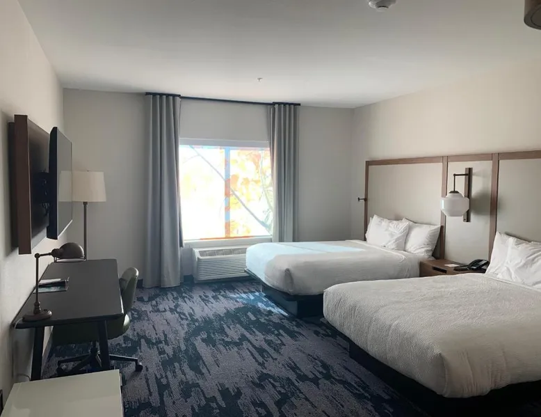 Comfortable Accommodations: Fairfield by Marriott Inn & Suites Winters Davis in Winters offers rooms with air-conditioning, carpeted floors, and modern amenities including a work desk and TV. Each room includes a bath, sofa bed, and sofa, ensuring a pleasant stay. Exceptional Facilities: Guests can enjoy a fitness center, outdoor swimming pool, and free WiFi. Additional facilities include a hot tub, elevator, and 24-hour front desk. The property also features a business area for those traveling for work. Delicious Breakfast: A buffet breakfast is provided by the hotel, highly praised by guests for its quality and variety. The breakfast includes a selection of fresh pastries, cereals, and other breakfast items, offering a perfect start to the day. Convenient Location: Located 30 mi from Sacramento International Airport, the hotel is near attractions such as University Of California, Davis (14 mi), Mondavi Center (15 mi), and Rancho Solano Municipal Golf Course (24 mi). Guests appreciate the room cleanliness, breakfast, and attentive staff. The double room has a flat-screen TV, air conditioning, a carpeted floor, as well as heating. The unit has 2 beds.