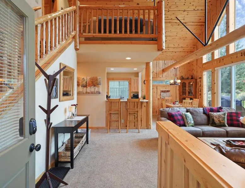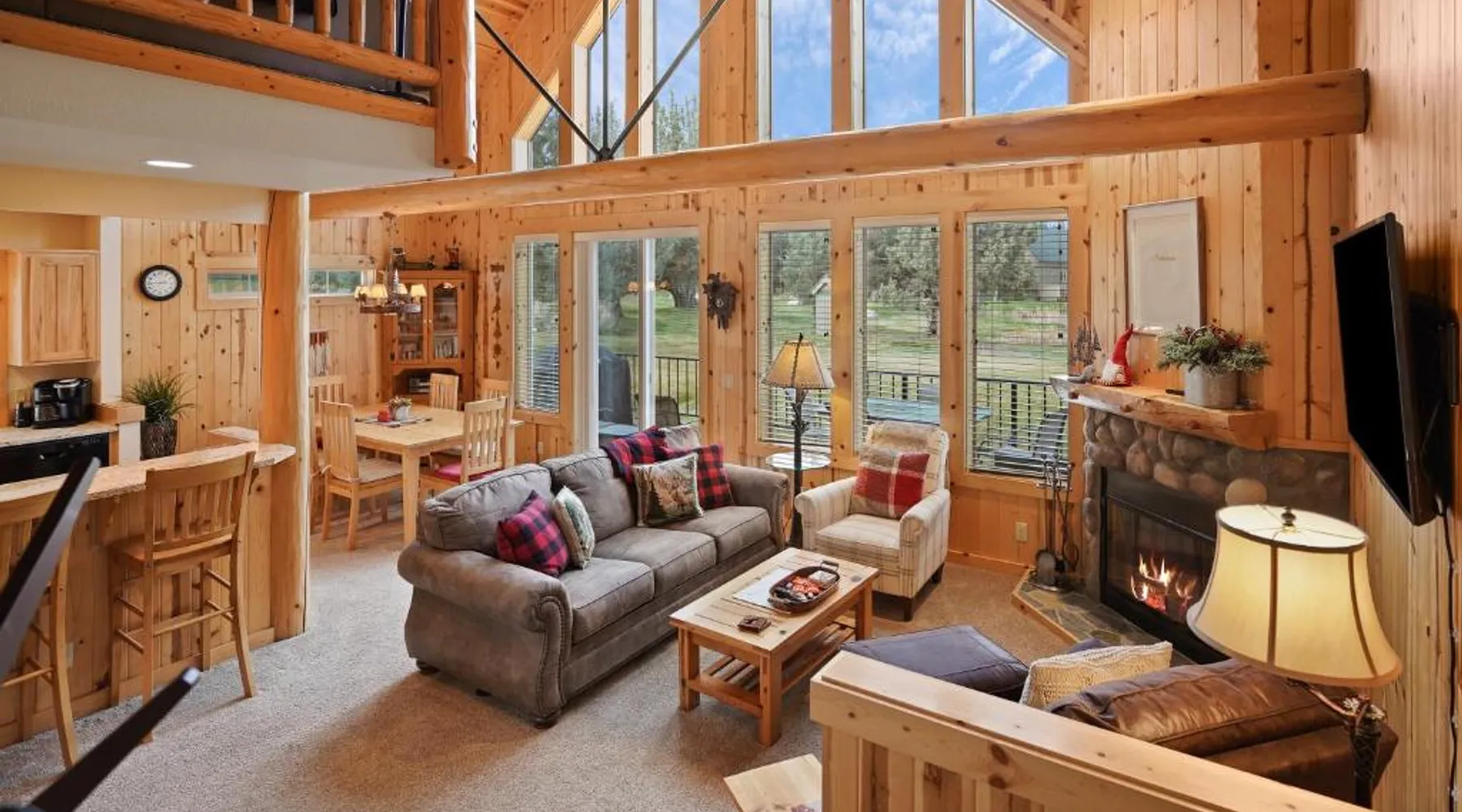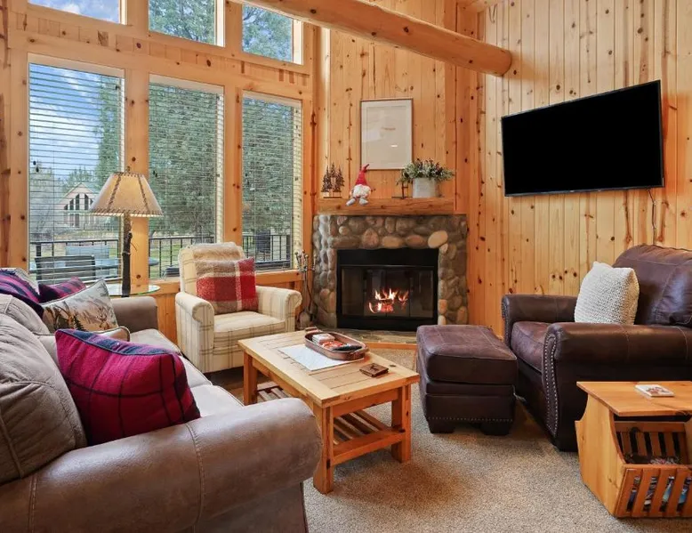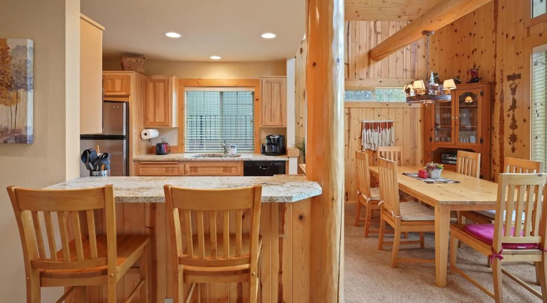 Spacious Holiday Home in Redmond: Deer Park Cabin home offers a spacious setting with three bedrooms and two bathrooms. Guests enjoy free WiFi and free on-site private parking. Comfortable Amenities: The property features air-conditioning, a washing machine, and a fully equipped kitchen with a dishwasher, microwave, and oven. Additional amenities include a fireplace, barbecue, tea and coffee maker, hairdryer, dining table, refrigerator, seating area, and TV. Activities and Nearby Attractions: Guests can enjoy skiing and cycling nearby. Redmond Municipal Airport is 8.1 mi away. Hollinshead Park is 21 mi, Drake Park 22 mi, and Ponderosa Park 23 mi from the property. This holiday home provides a fireplace. This spacious holiday home consists of a kitchen, a seating area, 3 separate bedrooms and 2 bathrooms with a bath and a hairdryer. Guests will find a refrigerator, a dishwasher, kitchenware and an oven in the well-fitted kitchen. The holiday home also provides guests with a barbecue. This holiday home is air-conditioned and features a TV with cable channels, a washing machine, a tea and coffee maker and a dining area. The unit offers 3 beds.