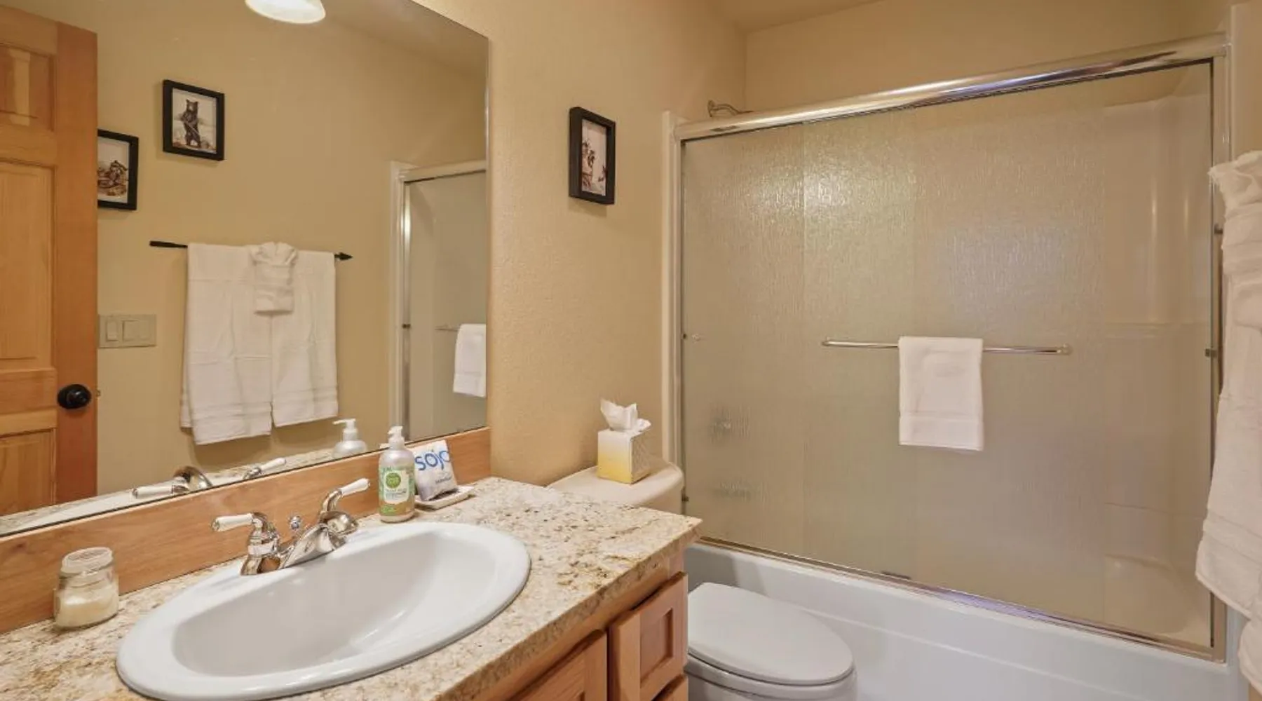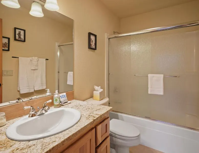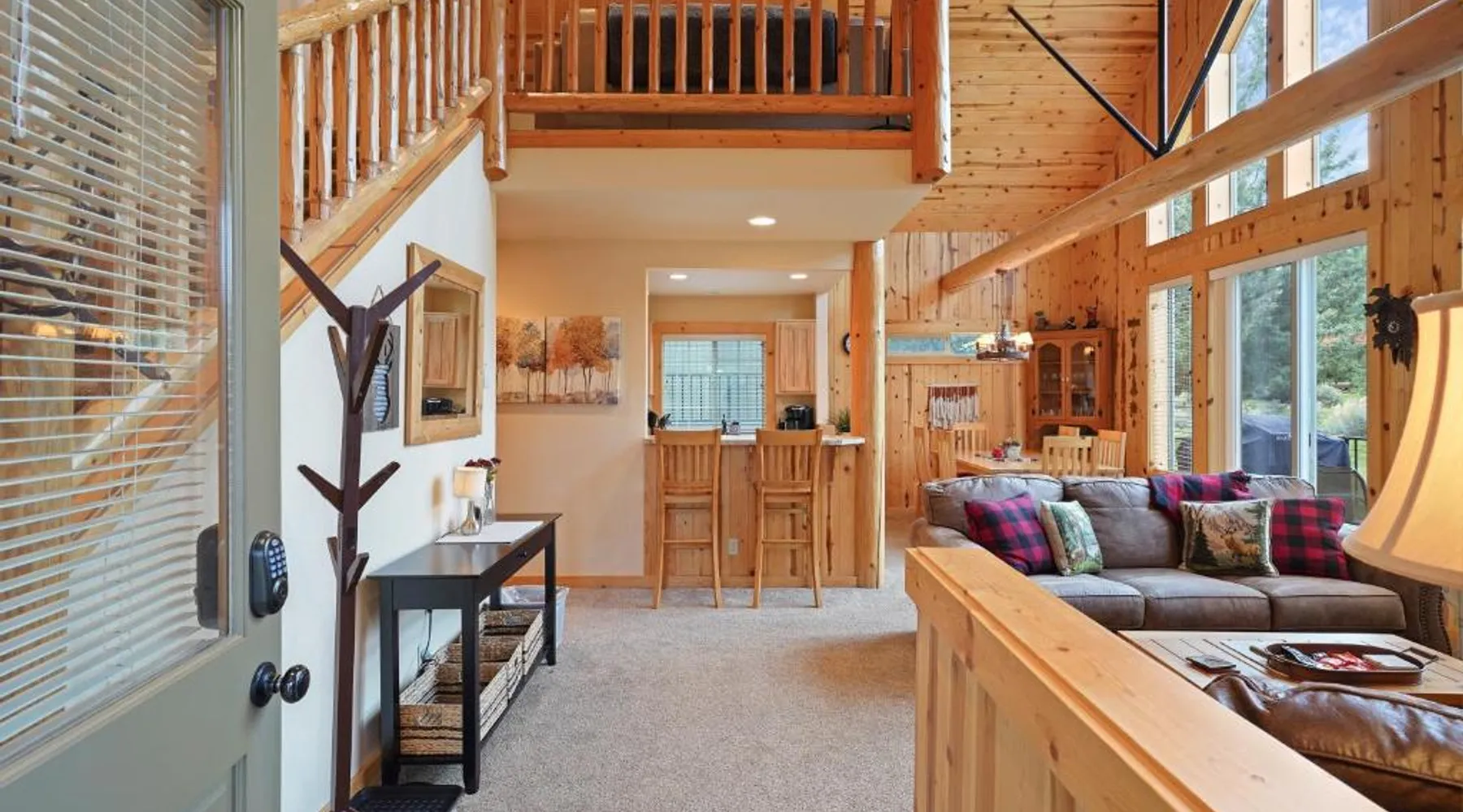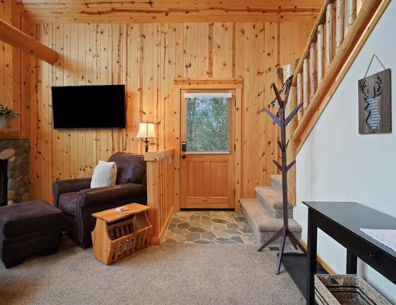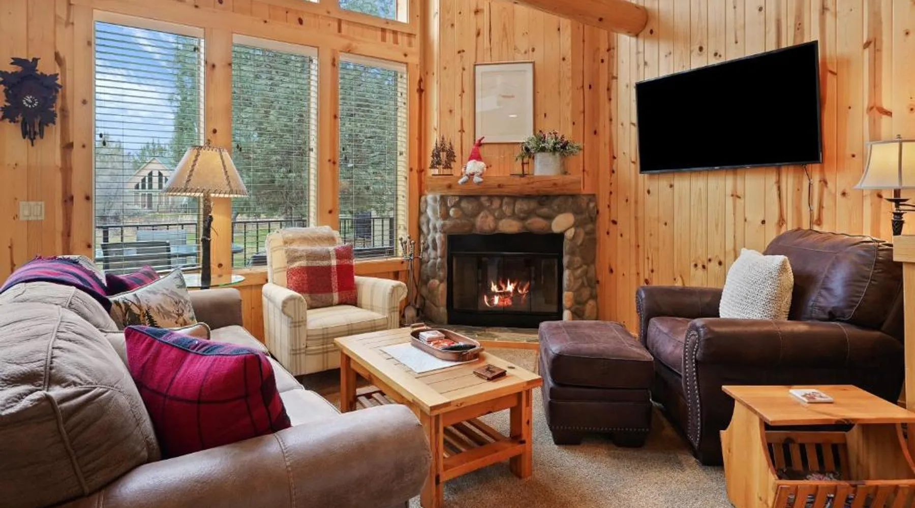Spacious Holiday Home in Redmond: Deer Park Cabin home offers a spacious setting with three bedrooms and two bathrooms. Guests enjoy free WiFi and free on-site private parking. Comfortable Amenities: The property features air-conditioning, a washing machine, and a fully equipped kitchen with a dishwasher, microwave, and oven. Additional amenities include a fireplace, barbecue, tea and coffee maker, hairdryer, dining table, refrigerator, seating area, and TV. Activities and Nearby Attractions: Guests can enjoy skiing and cycling nearby. Redmond Municipal Airport is 8.1 mi away. Hollinshead Park is 21 mi, Drake Park 22 mi, and Ponderosa Park 23 mi from the property. This holiday home provides a fireplace. This spacious holiday home consists of a kitchen, a seating area, 3 separate bedrooms and 2 bathrooms with a bath and a hairdryer. Guests will find a refrigerator, a dishwasher, kitchenware and an oven in the well-fitted kitchen. The holiday home also provides guests with a barbecue. This holiday home is air-conditioned and features a TV with cable channels, a washing machine, a tea and coffee maker and a dining area. The unit offers 3 beds.
