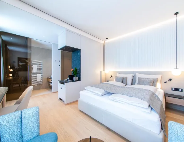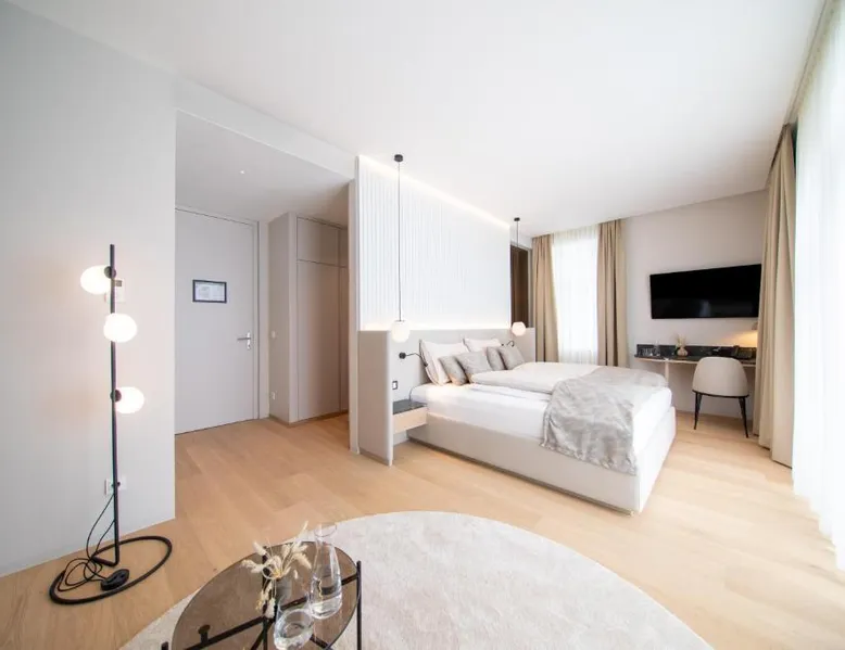 Prime Location: Apollo AchtQuartier Das Hotel am Mondsee in Mondsee offers a convenient location with stunning lake and mountain views. Guests enjoy easy access to attractions such as Messezentrum Exhibition Center (18 mi) and Salzburg Central Station (19 mi). Exceptional Facilities: The hotel features a private beach area, beachfront, rooftop swimming pool, spa and wellness center, sauna, sun terrace, garden, restaurant, bar, and free WiFi. Additional amenities include a lounge, outdoor fireplace, hot tub, and electric vehicle charging station. Comfortable Accommodations: Rooms offer air-conditioning, private bathrooms, lake and mountain views, and modern amenities such as mini-bars and flat-screen TVs. Family rooms and interconnected rooms cater to all guests. Dining Experience: The modern restaurant serves brunch, lunch, dinner, high tea, and cocktails with vegetarian, vegan, gluten-free, and dairy-free options. Guests can also enjoy a buffet breakfast. Activities and Surroundings: Guests can engage in hiking, cycling, boating, and enjoy nearby attractions like Mozart's Birthplace (19 mi) and Hohensalzburg Fortress (21 mi). Salzburg W. A. Mozart Airport is 23 mi away. The air-conditioned suite features 1 bedroom and 1 bathroom with a walk-in shower and a hairdryer. This suite has soundproof walls, flat-screen TV with cable channels, lake views, as well as wine/champagne for guests. The unit offers 1 bed.