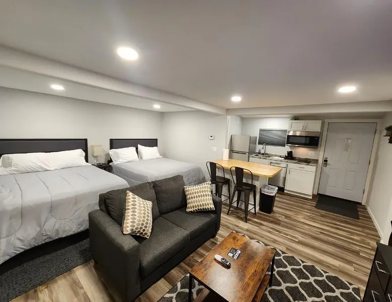 Comfortable Accommodations: Snowy Mountain Inn in Saratoga offers family rooms with free WiFi, air-conditioning, and private bathrooms. Each room includes a tea and coffee maker, refrigerator, microwave, TV, and free toiletries. Modern Amenities: Guests enjoy a kitchenette with a dishwasher, oven, stovetop, and kitchenware. Additional features include a work desk, seating area, and inner courtyard views. Convenient Facilities: The motel provides free on-site private parking, skiing, and cycling activities. Laramie Regional Airport is 102 mi away. Guests appreciate the room cleanliness, kitchen, and comfort. Offering free toiletries, this double room includes a private bathroom with a walk-in shower. In the well-fitted kitchenette, guests will find a stovetop, a refrigerator, a dishwasher and kitchenware. The air-conditioned double room offers a flat-screen TV with satellite channels, a tea and coffee maker, a seating area, a dining area as well as an inner courtyard view. The unit offers 2 beds.