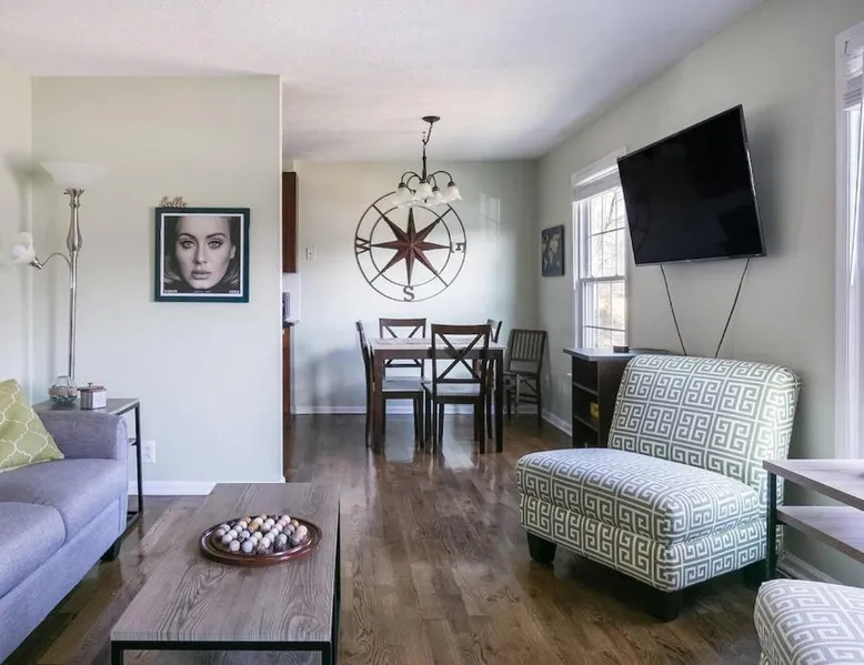 Spacious Accommodations: 3 Bedroom Cottage Only 3 Miles from Downtown in Nashville offers a spacious holiday home with three bedrooms and two bathrooms. The property features a private entrance and a fully equipped kitchen with modern appliances. Outdoor Amenities: Guests can relax in the private garden or on the patio, enjoying the outdoor furniture and comfortable seating areas. The property includes a washing machine, dishwasher, and a fully equipped kitchen with a refrigerator, microwave, and oven. Convenient Facilities: The cottage provides free WiFi, air-conditioning, and streaming services. Additional amenities include a dining table, TV, and free toiletries. Free on-site parking is available for guests. Local Attractions: Located 8.7 mi from Nashville International Airport, the property is close to Nissan Stadium (3.7 mi), Johnny Cash Museum (4.3 mi), and Ryman Auditorium (4.3 mi). Other attractions include Vanderbilt University and The Hermitage, each 6.2 mi away. Offering free toiletries, this family room includes a private bathroom with a bath and a hairdryer. Guests can make meals in the kitchen that is fitted with a stovetop, a refrigerator, a dishwasher and kitchenware. The spacious air-conditioned family room offers a TV with streaming services, a washing machine, a private entrance and a tea and coffee maker. The unit offers 5 beds.