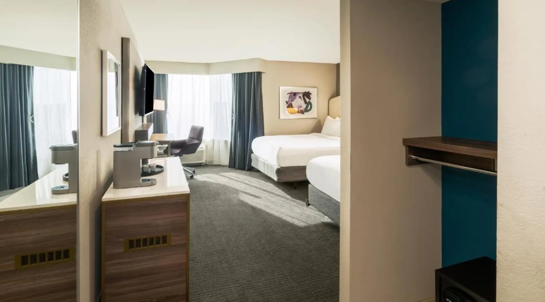 Comfortable Accommodations: Rooms feature air-conditioning, private bathrooms, tea and coffee makers, and free WiFi. Additional amenities include sofa beds, work desks, and flat-screen TVs. Dining Options: The modern, family-friendly restaurant serves American cuisine with vegetarian, gluten-free, and dairy-free options. Breakfast includes continental, American, buffet, and à la carte selections with warm dishes, fresh pastries, and more. Leisure Facilities: Guests can enjoy a sauna, fitness center, seasonal outdoor swimming pool, and steam room. The hotel also offers a bar, minimarket, and electric vehicle charging station. Prime Location: Located in Norcross, the hotel is 14 mi from Historic Stone Mountain Village and 15 mi from Atlanta History Center. Nearby attractions include Truist Park and the High Museum of Art. The spacious double room features air conditioning, a tea and coffee maker, as well as a private bathroom boasting a walk-in shower and a hairdryer. The double room provides a wardrobe, a safe deposit box, a tiled floor, a carpeted floor and a flat-screen TV with cable channels. The unit has 1 bed.
