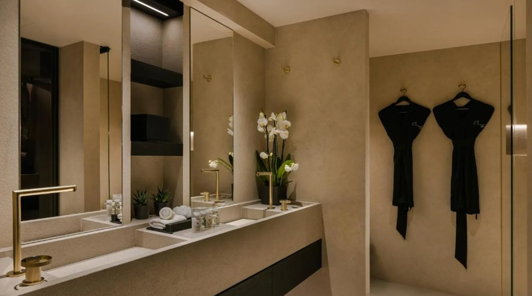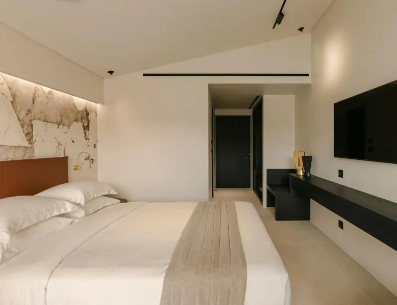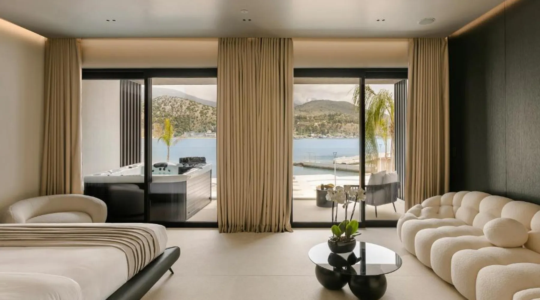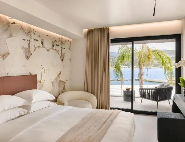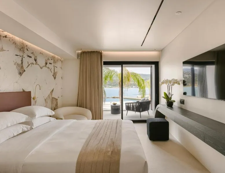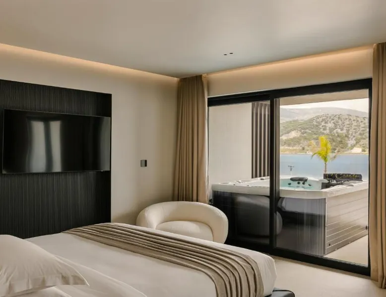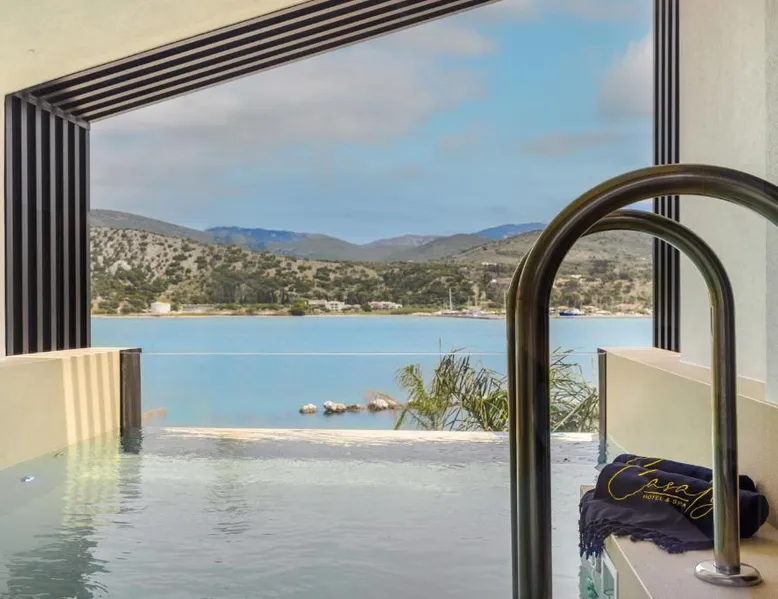 Elegant Accommodations: Casaly Hotel & Spa in Argostoli offers adults-only 5-star comfort with a spa and wellness center, sauna, seasonal outdoor swimming pool, and free WiFi. Exceptional Facilities: Guests enjoy private check-in and check-out, a fitness room, hot tub, and beauty services. The hotel features a restaurant, bar, and lounge, alongside a 24-hour front desk and concierge service. Dining Experience: Breakfast options include continental, American, buffet, and full English/Irish, catering to vegetarian, vegan, and gluten-free diets. The restaurant serves Greek and Mediterranean cuisine for brunch, lunch, dinner, and high tea. Prime Location: Located 5.6 mi from Kefalonia Airport, the hotel is a 3-minute walk from Argostoli Port and near attractions such as the Korgialenio Historic and Folklore Museum. The air-conditioned suite has 1 bedroom and 1 bathroom with a shower and a bidet. This suite features soundproof walls, flat-screen TV with streaming services, sea views, as well as chocolate for guests. The unit has 1 bed.