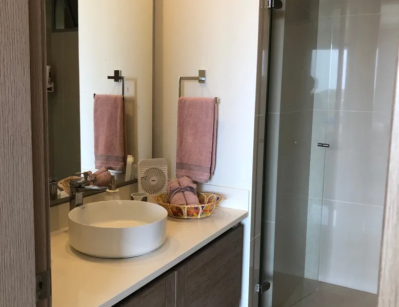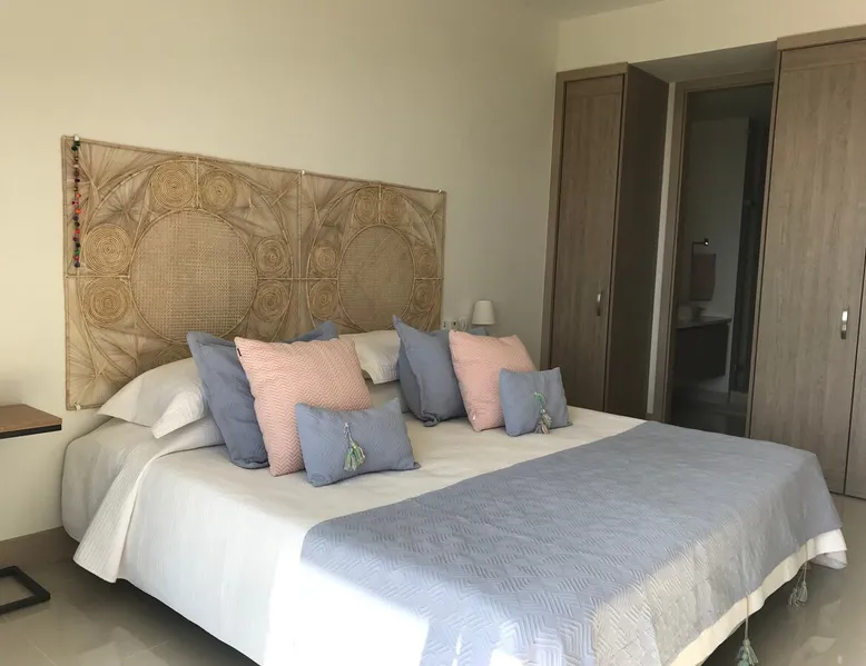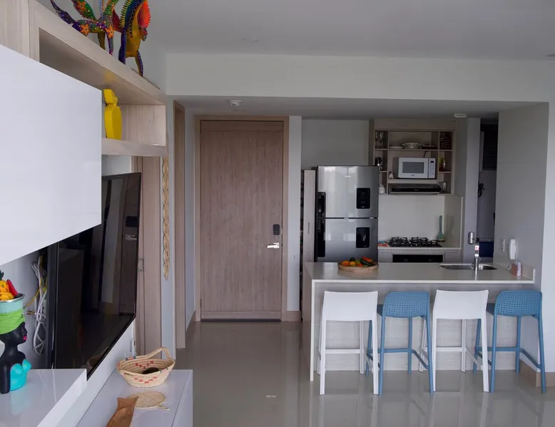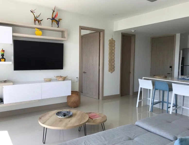 The apartment is located in one of the calmest neighbourhoods in Cartagena and boasts direct access to the beach. Perfect for a couple or a family of 4. It's just 10 minutes from the airport, 20 minutes from the historical city center. The condo has a gym, pools for adults and children, swimming lanes, a steam room, jacuzzis and a children's playground. From the balcony you can appreciate the sun rising behind several kilometers of green areas and canals. The space Space located in Serena del Mar, the dreamed city, a development complex consisting of 35 km of pedestrian paths and cycle routes, 4 km of beach, and various commercial spaces. The apartment is totally equipped with household appliances to make you feel at home. We provide additional conveniences like a hammock and televisions in both the bedroom and living room. Guest access Once the reservation is confirmed, they must send the following information of each of the guests in order to authorize their entry into the building (NAMES and SURNAMES, DOCUMENT NUMBER and TYPE, ADDRESS and CITY OF RESIDENCE, CITY OF ORIGIN, TELEPHONE) NO CHANGES, ADDITIONS AND/OR MODIFICATIONS ARE ALLOWED AFTER SENDING THE GUEST LIST. In accordance with the provisions of article 22 of Law 2068 of 2020, the host will fill out the accommodation registration card of each of the guests online. These data must be sent (2) two days in advance, and will be at the building's door; upon arrival they must only present their identity document in physical form. They will put a handle on them that will identify them as guests of the building. For security they must wear the handle during their stay, so that they can enter and leave the building without problem. Visitors are not accepted, only people registered in the guest list. Other things to note The condo rules prohibit visitors that are not registered upon arrival. Guests will be required to share a form of identification at the front desk before accessing the building. If there are guests who are minors and are not accompanied by their parents, they must present at reception an AUTHENTICATED permit from the parents, and original physical document of birth registration, otherwise they will not allow their entry. Registration Details 99155