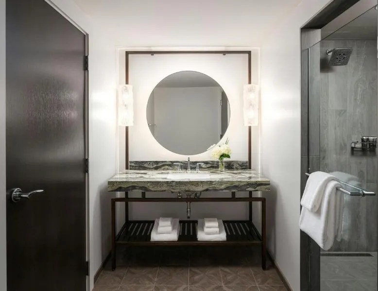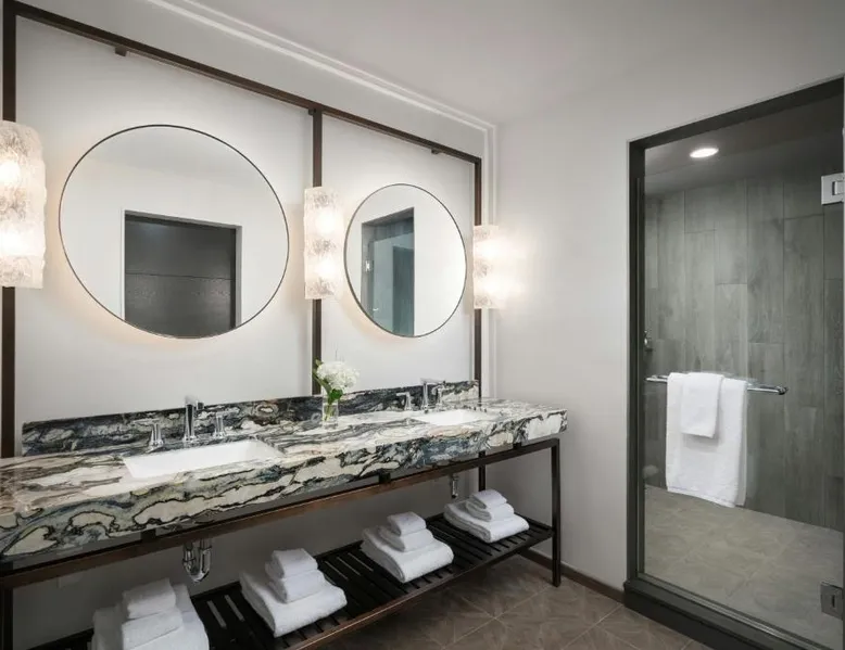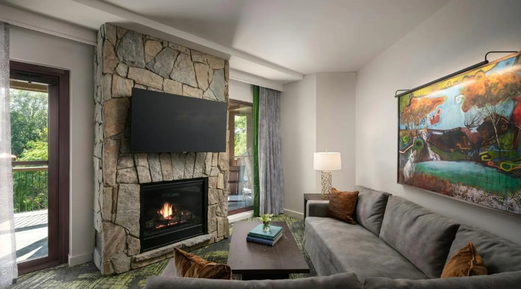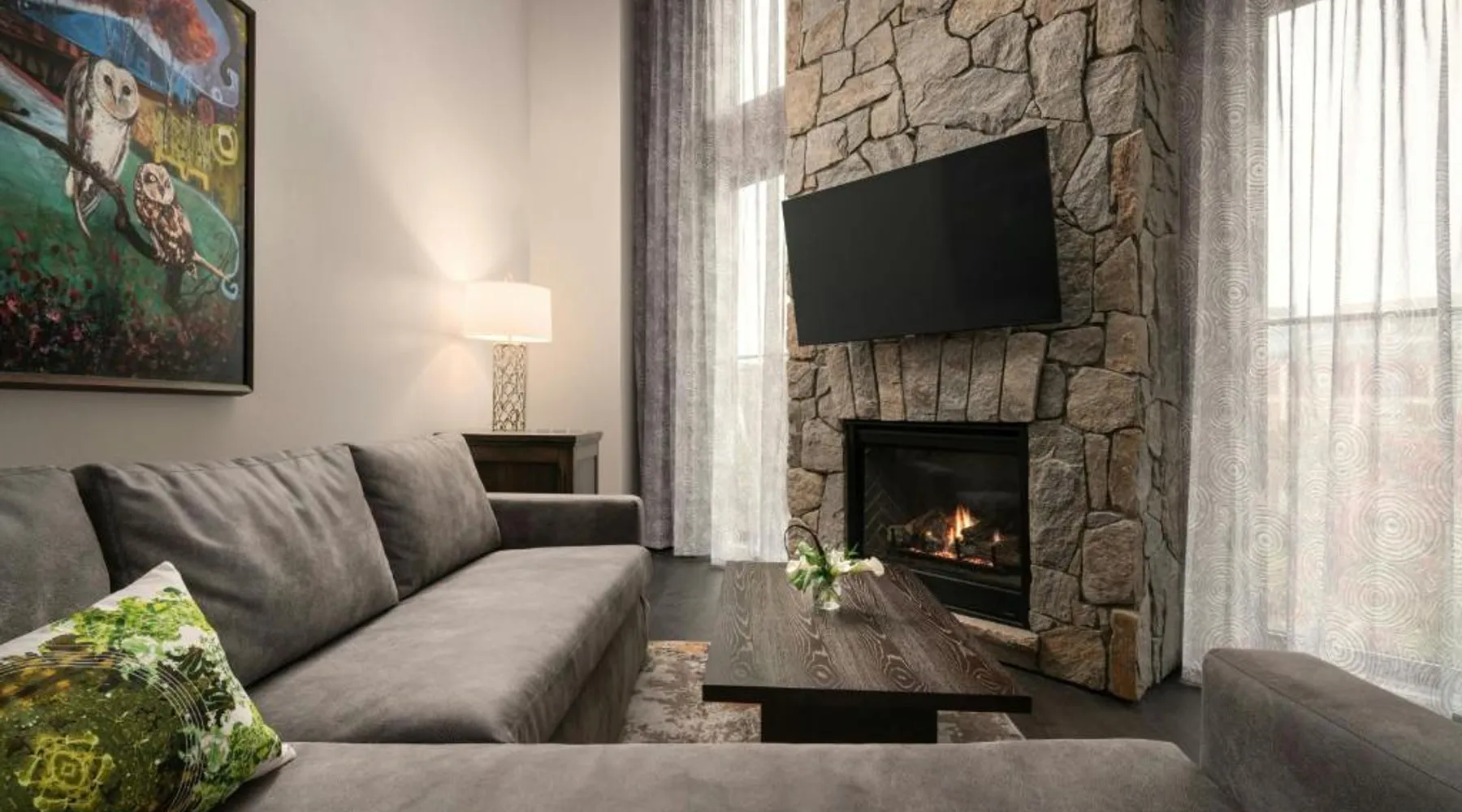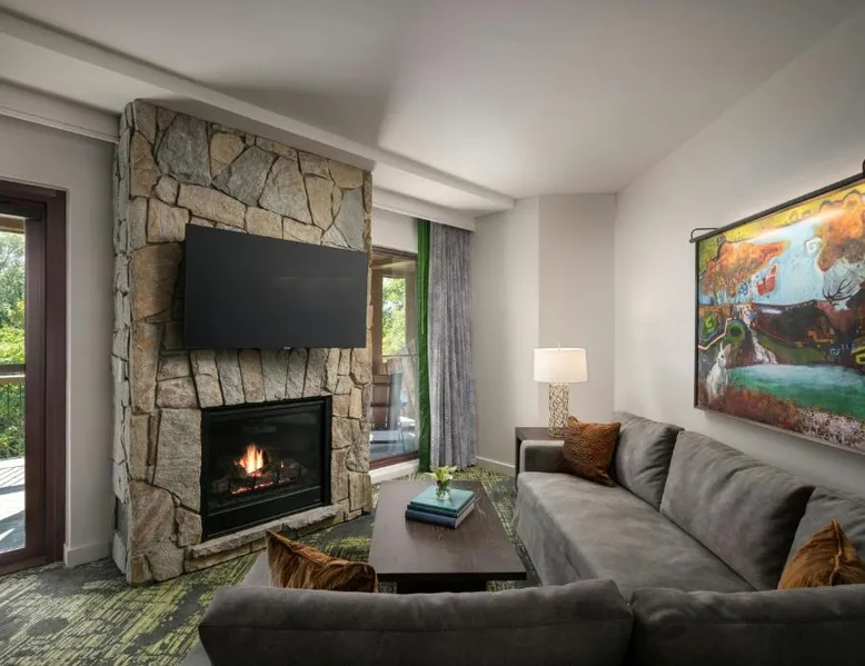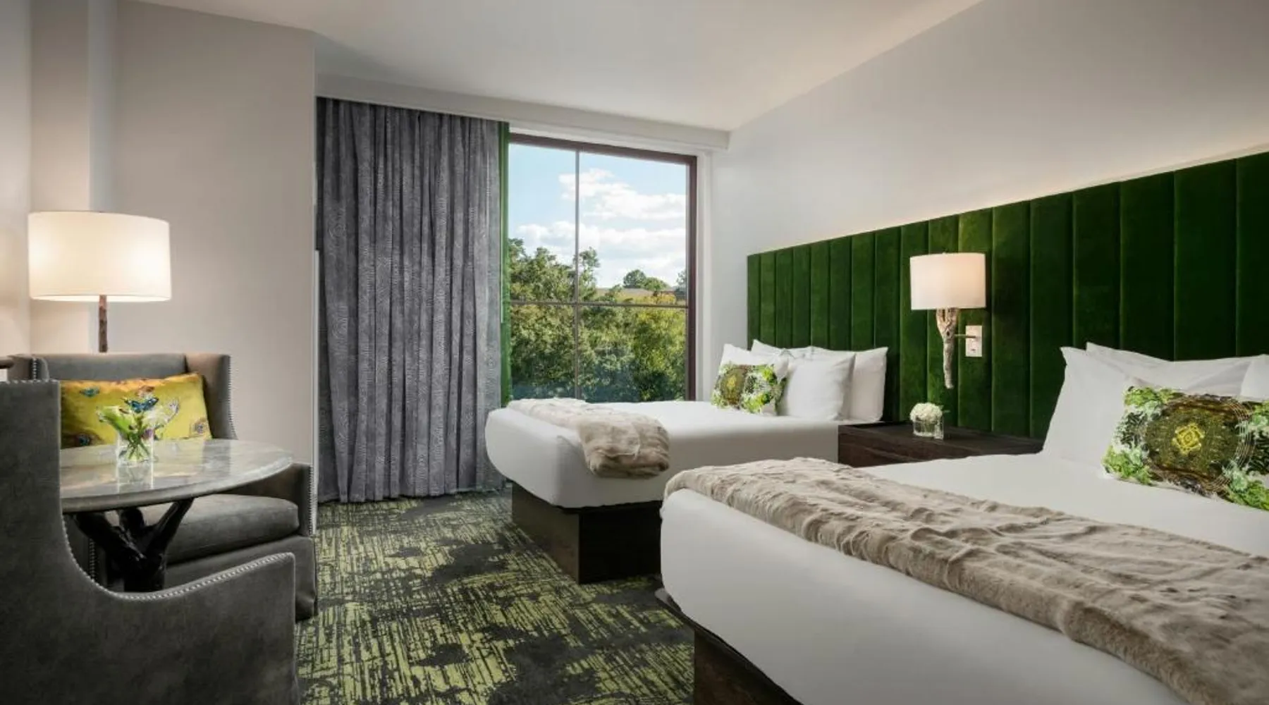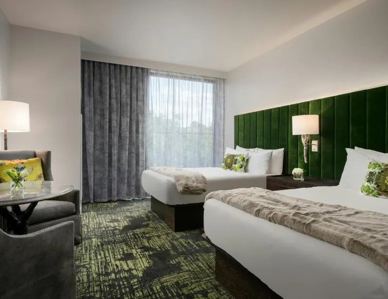 Prime City Center Location: Grand Bohemian Lodge Greenville, Autograph Collection in Greenville offers a convenient location with the Peace Center a 6-minute walk away and Greenville Zoo 1.2 mi nearby. Greenville-Spartanburg International Airport is 13 mi from the hotel. Exceptional Facilities: Guests enjoy spa and wellness facilities, a fitness center, sun terrace, restaurant, bar, and free WiFi. Additional amenities include a lounge, outdoor fireplace, and electric vehicle charging station. Comfortable Accommodations: Rooms feature air-conditioning, private bathrooms, balconies with city or river views, and modern amenities such as flat-screen TVs and work desks. Interconnected rooms and family rooms cater to all travelers. Dining Experience: The family-friendly restaurant serves American cuisine with vegetarian options. Breakfast includes champagne and warm dishes, while lunch and dinner offer a variety of meals in a traditional setting. This air-conditioned family room includes a flat-screen TV with cable channels, a private bathroom as well as a balcony with city views. The unit offers 2 beds.