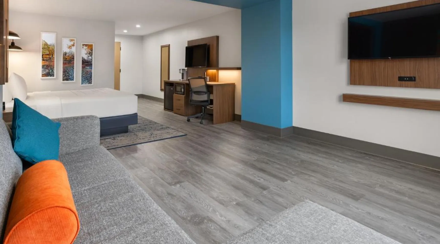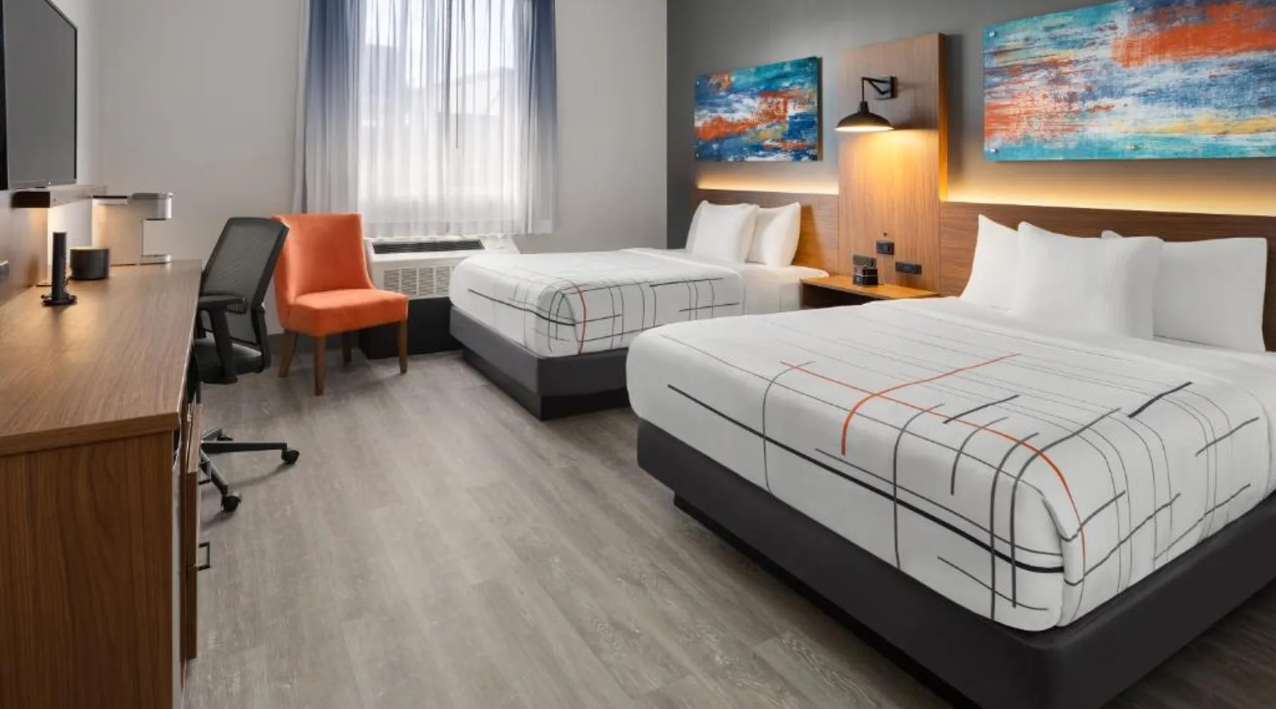 Comfortable Accommodations: La Quinta Inn & Suites by Wyndham Williston Burlington in Williston offers family rooms with air-conditioning, private bathrooms, and free WiFi. Each room includes a work desk, TV, and wardrobe. Convenient Facilities: Guests enjoy a lounge, elevator, 24-hour front desk, daily housekeeping, electric vehicle charging, outdoor seating, bicycle parking, and free on-site private parking. Delicious Breakfast: A continental breakfast is served with juice, pancakes, and fruits. Prime Location: Located 1.9 mi from Burlington International Airport, the hotel is near attractions such as University of Vermont (5 mi), Centennial Field (4.3 mi), and Green Mountain National Golf Course (26 mi). The quadruple room features air conditioning, a coffee machine, as well as a private bathroom boasting a shower and a hairdryer. The quadruple room features a flat-screen TV, a wardrobe, a safe deposit box, as well as heating. The unit has 2 beds.