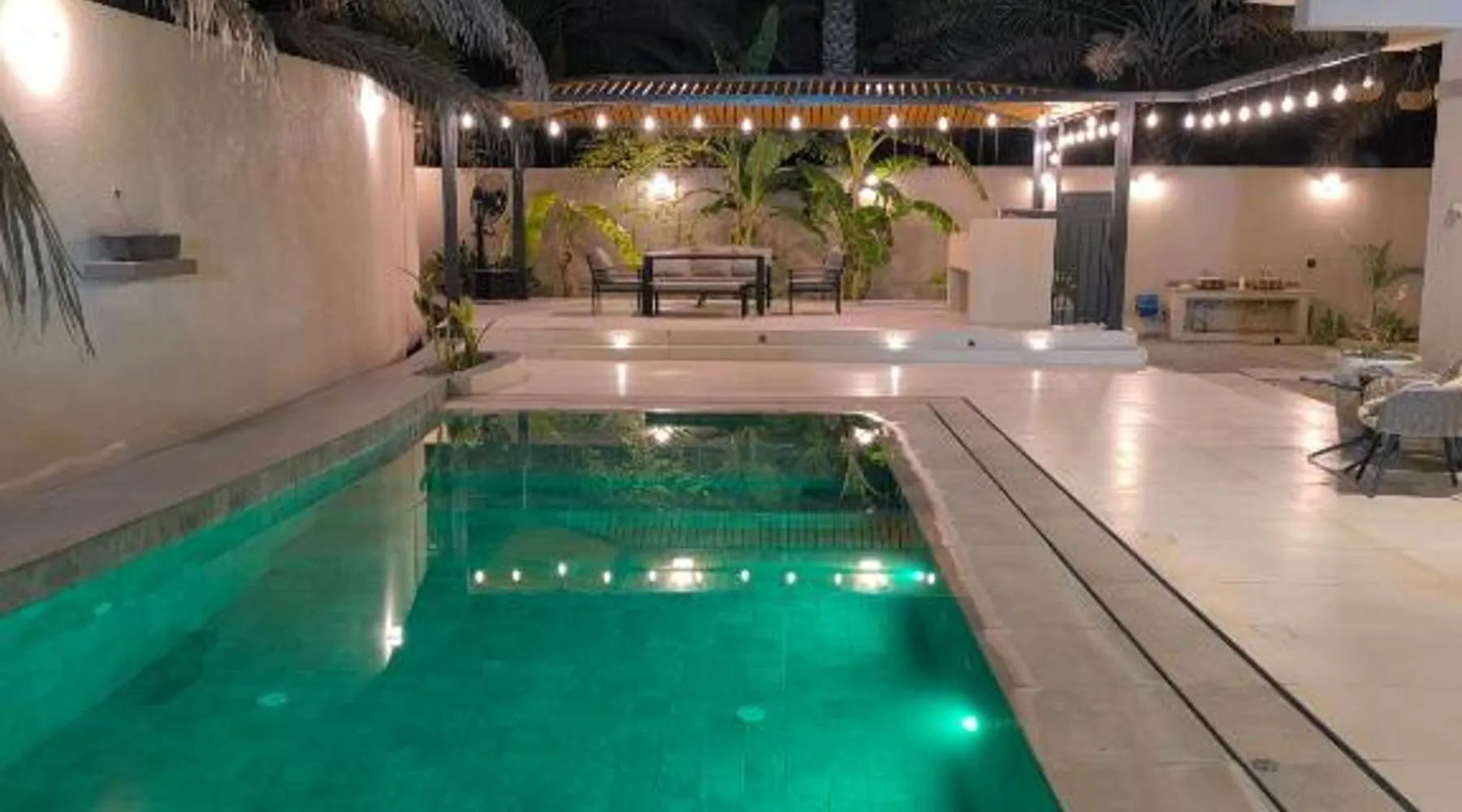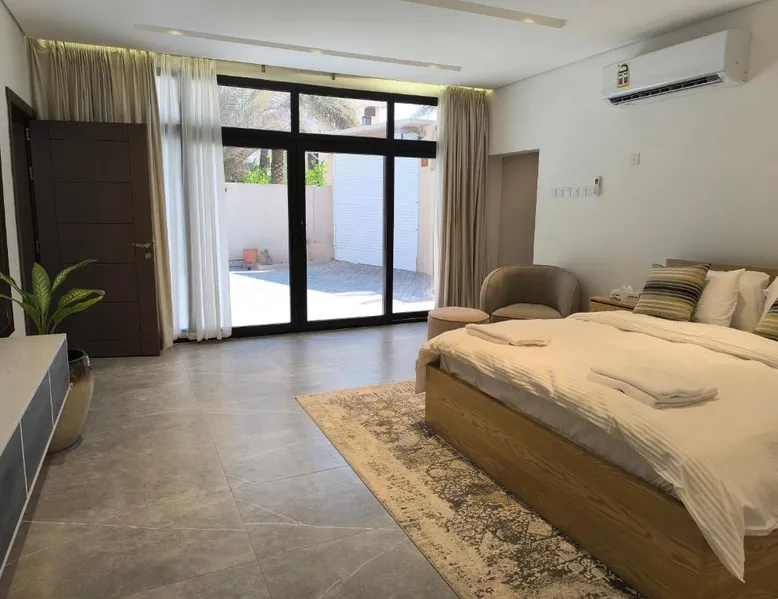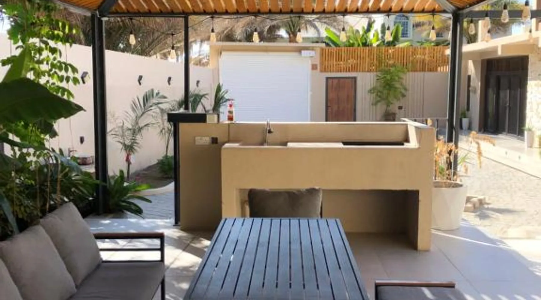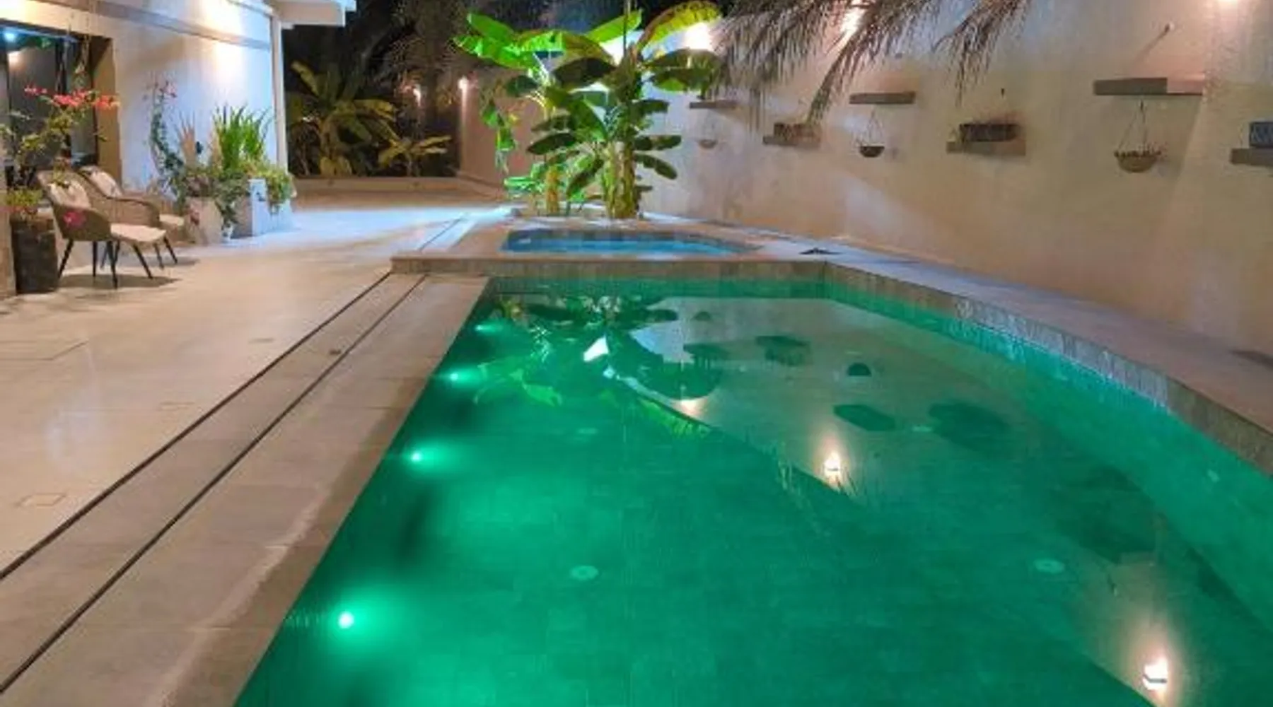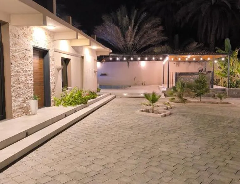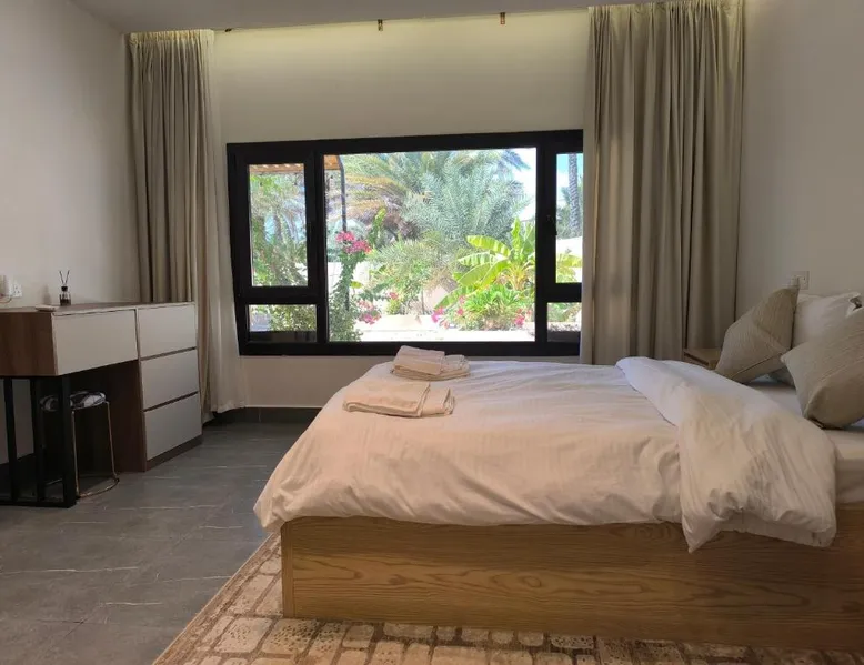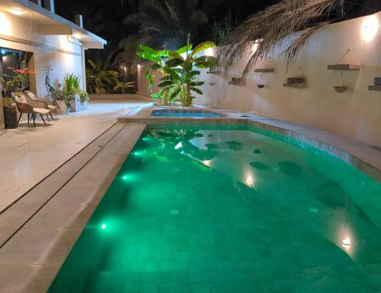 Spacious Accommodations: Bostan Al-Mostadhill Chalet in Nizwa offers three bedrooms and four bathrooms. The recently renovated homestay features a living room with a sofa bed and a dining area. Outdoor Amenities: Guests can relax in the garden or enjoy the year-round outdoor swimming pool with a view. The property includes a hot tub and an outdoor seating area. Comfort and Convenience: The homestay provides free WiFi, air-conditioning, and free off-site private parking. Additional amenities include a dining table, refrigerator, microwave, and TV. Local Attractions: Nizwa Fort is a 13-minute walk away, while Muscat International Airport is 91 mi from the property. This chalet's standout features are the pool with a view and hot tub. This spacious chalet features 1 living room, 3 separate bedrooms and 4 bathrooms with a shower and free toiletries. The air-conditioned chalet features a TV, a private entrance, a seating area, a dining area as well as garden views. The unit has 6 beds.