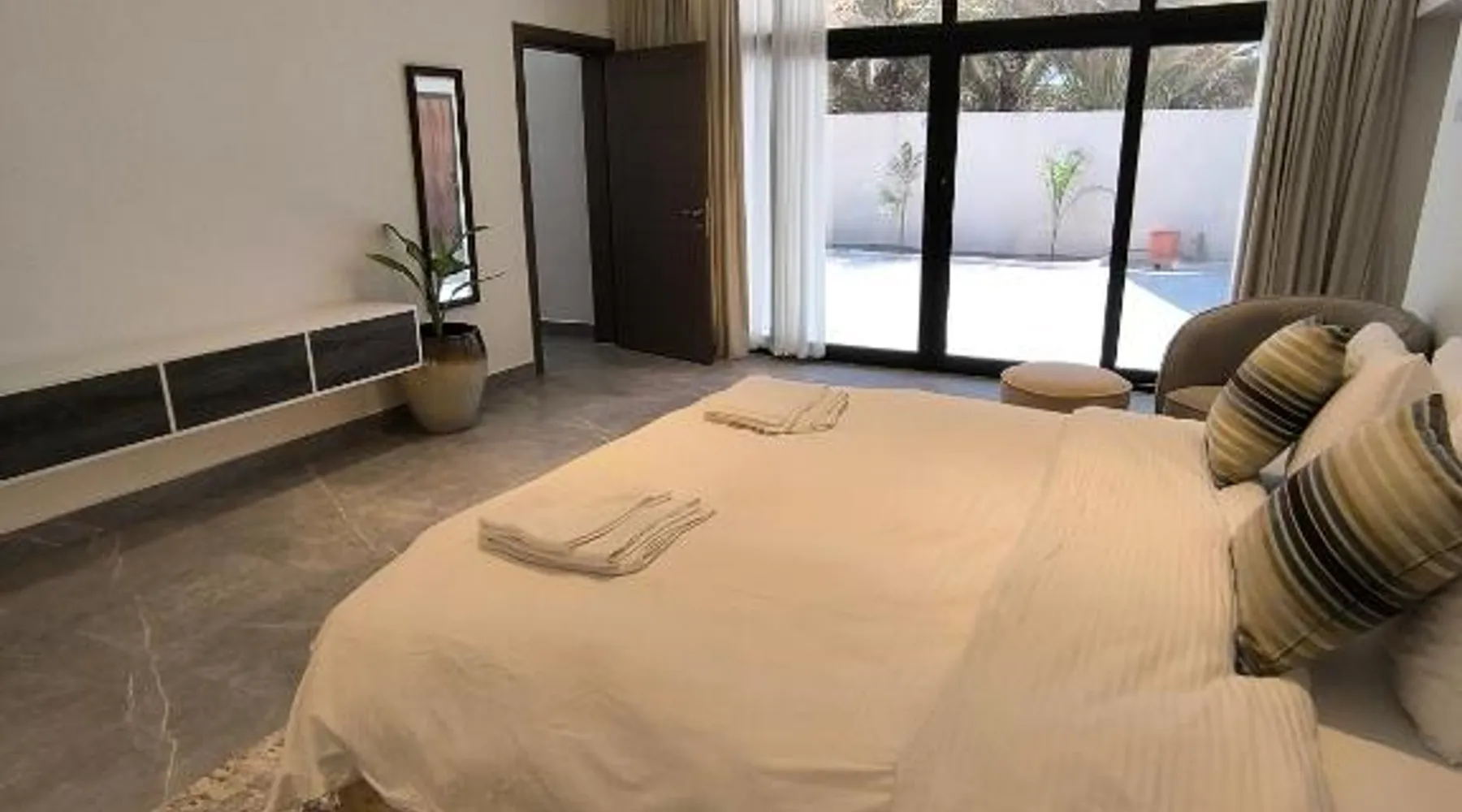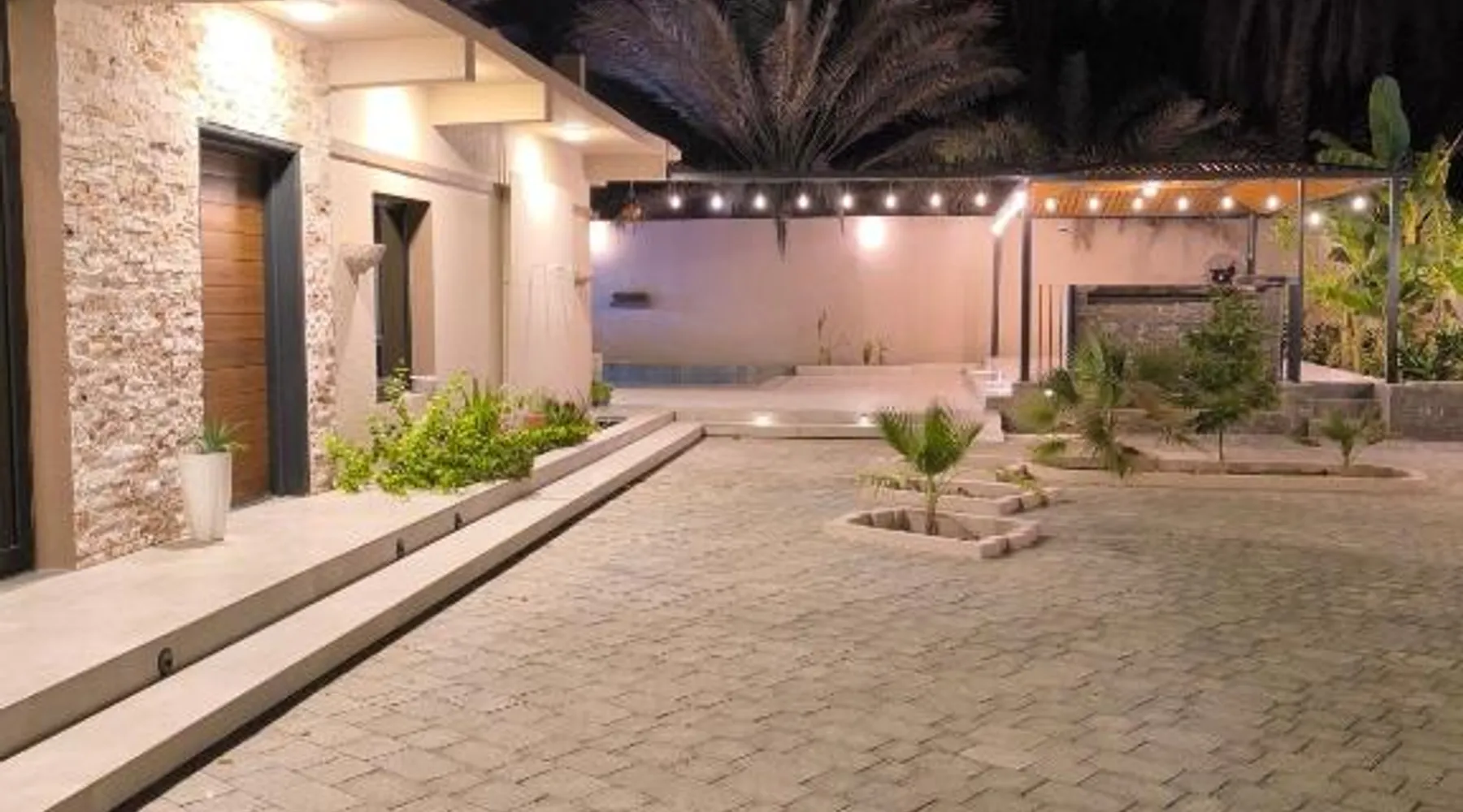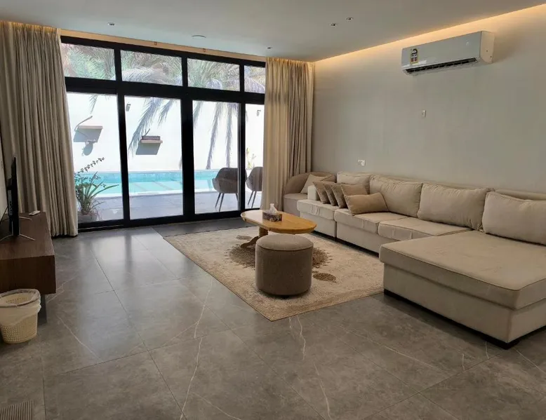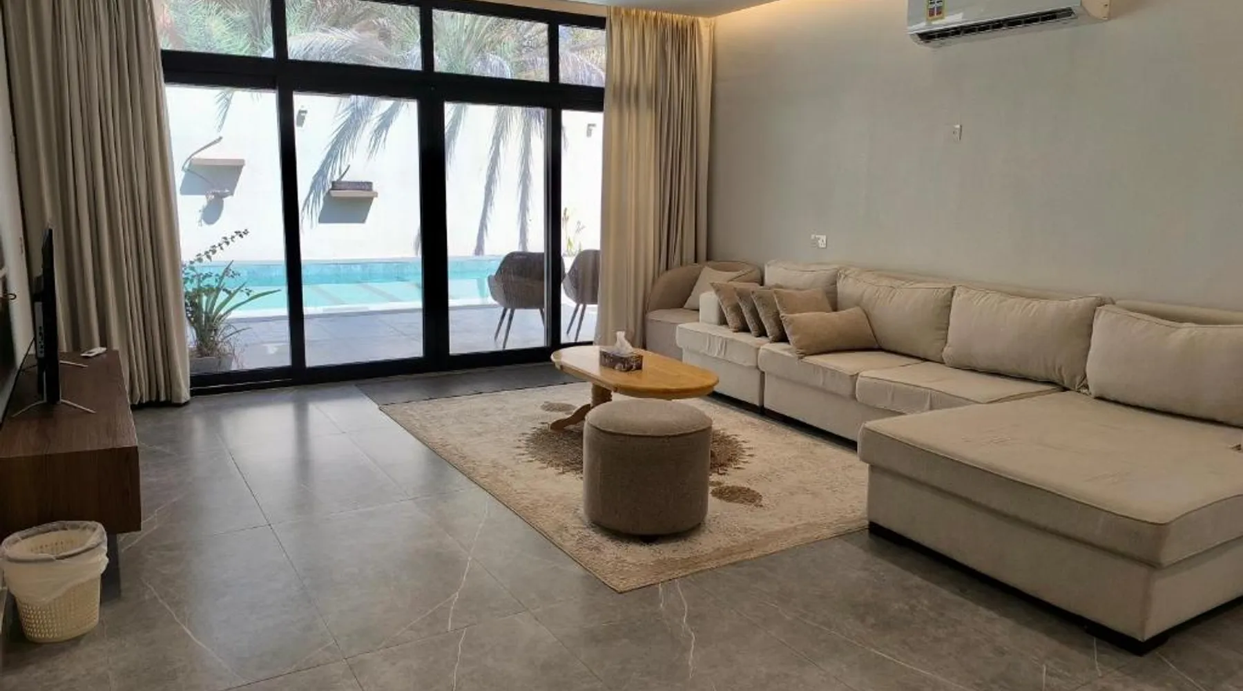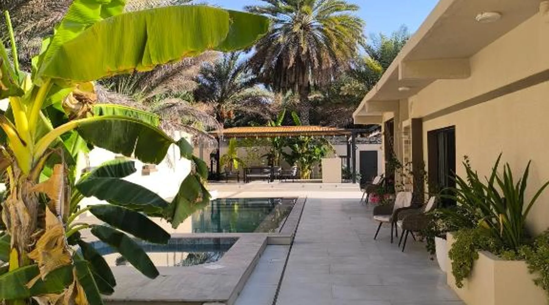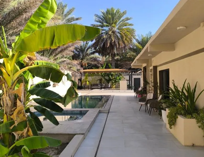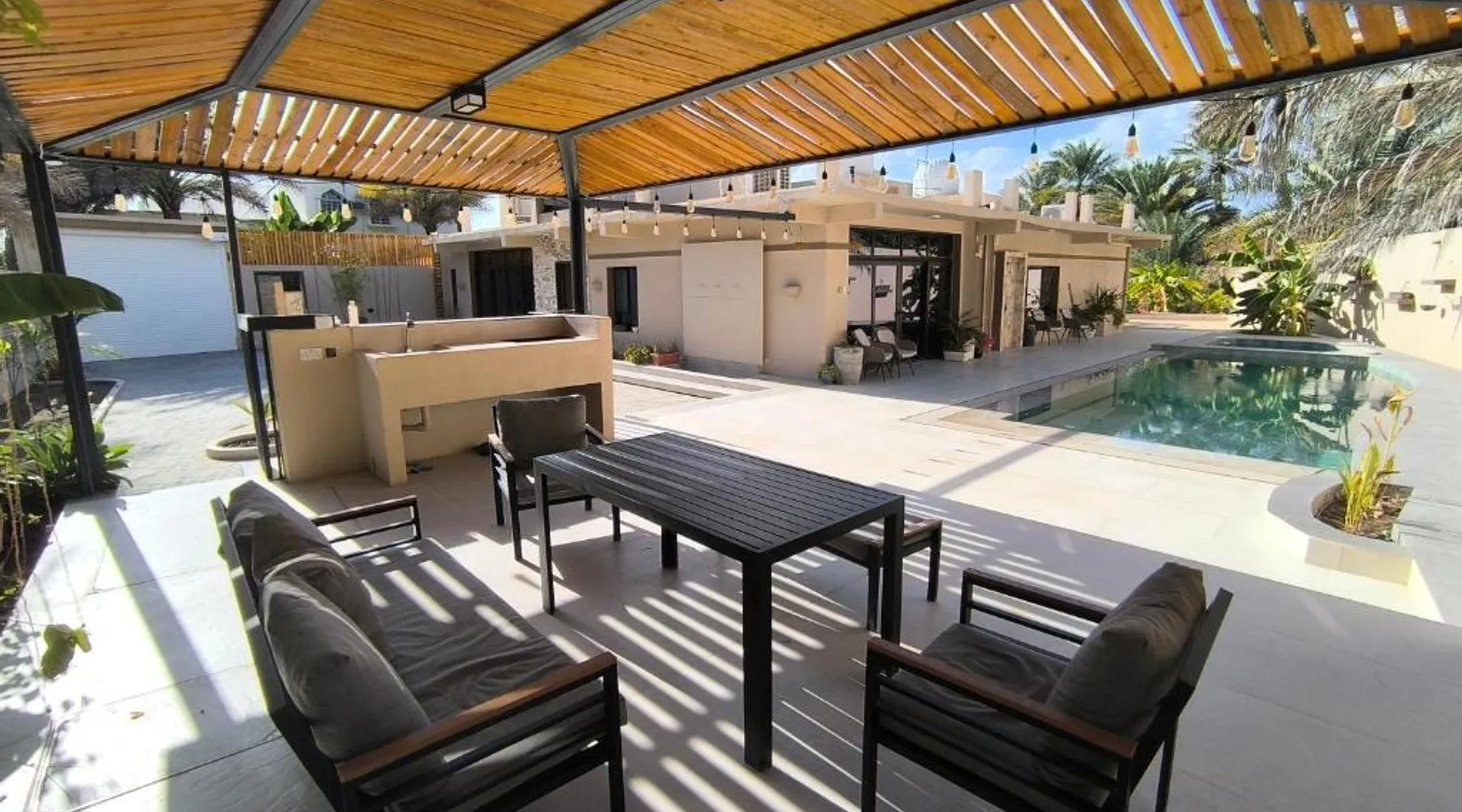 Spacious Accommodations: Bostan Al-Mostadhill Chalet in Nizwa offers three bedrooms and four bathrooms. The recently renovated homestay features a living room with a sofa bed and a dining area. Outdoor Amenities: Guests can relax in the garden or enjoy the year-round outdoor swimming pool with a view. The property includes a hot tub and an outdoor seating area. Comfort and Convenience: The homestay provides free WiFi, air-conditioning, and free off-site private parking. Additional amenities include a dining table, refrigerator, microwave, and TV. Local Attractions: Nizwa Fort is a 13-minute walk away, while Muscat International Airport is 91 mi from the property. This chalet's standout features are the pool with a view and hot tub. This spacious chalet features 1 living room, 3 separate bedrooms and 4 bathrooms with a shower and free toiletries. The air-conditioned chalet features a TV, a private entrance, a seating area, a dining area as well as garden views. The unit has 6 beds.
