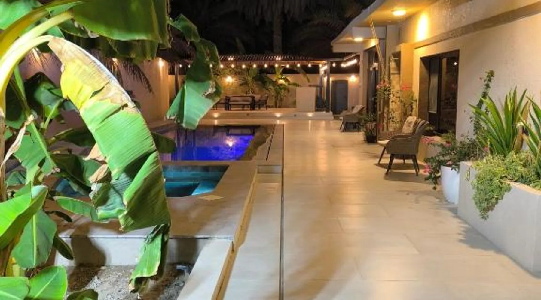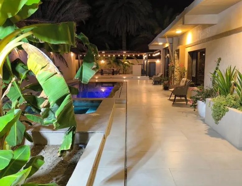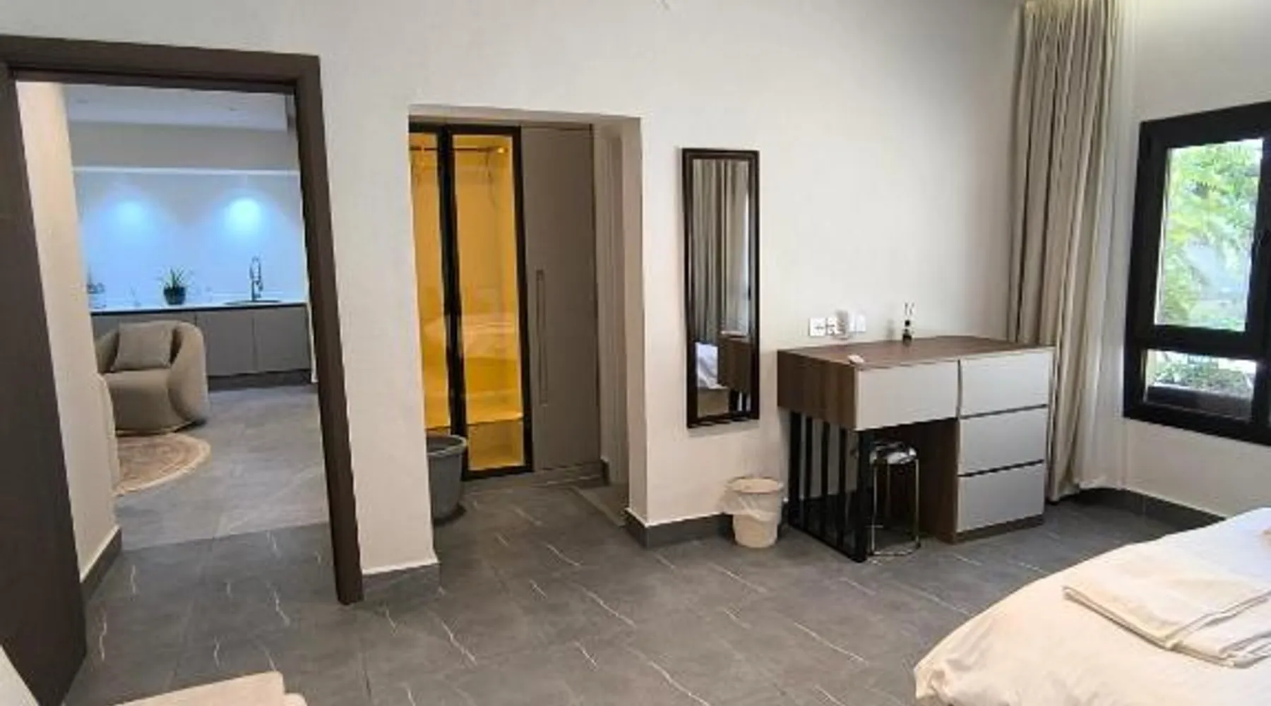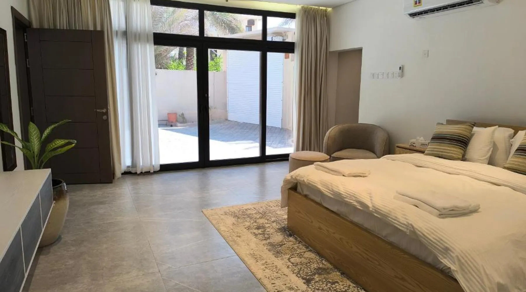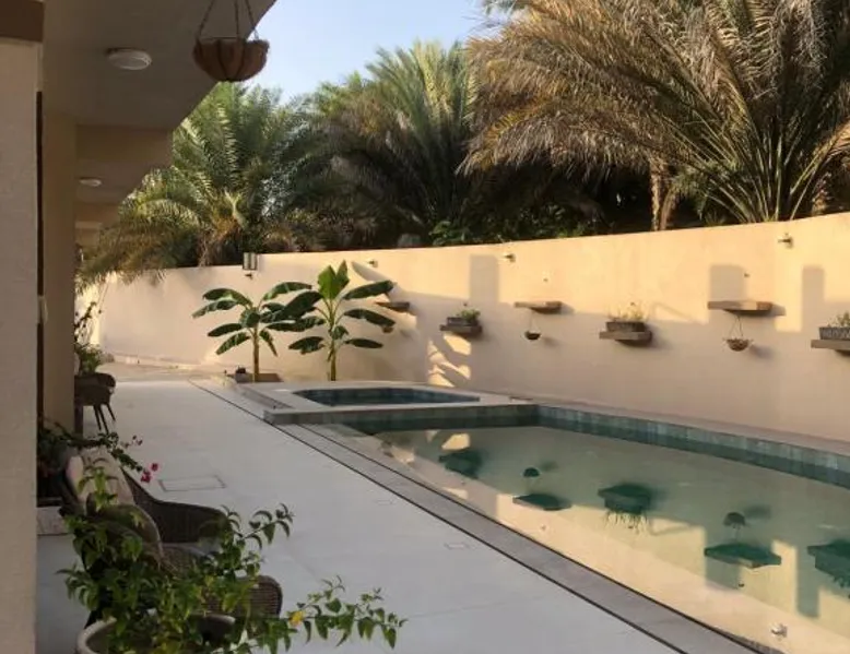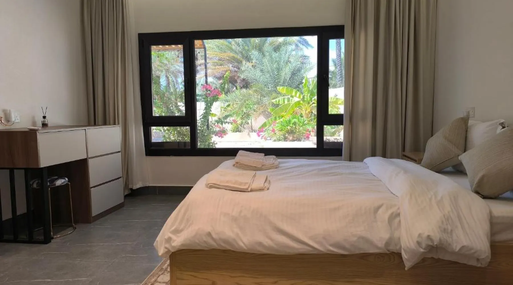 Spacious Accommodations: Bostan Al-Mostadhill Chalet in Nizwa offers three bedrooms and four bathrooms. The recently renovated homestay features a living room with a sofa bed and a dining area. Outdoor Amenities: Guests can relax in the garden or enjoy the year-round outdoor swimming pool with a view. The property includes a hot tub and an outdoor seating area. Comfort and Convenience: The homestay provides free WiFi, air-conditioning, and free off-site private parking. Additional amenities include a dining table, refrigerator, microwave, and TV. Local Attractions: Nizwa Fort is a 13-minute walk away, while Muscat International Airport is 91 mi from the property. This chalet's standout features are the pool with a view and hot tub. This spacious chalet features 1 living room, 3 separate bedrooms and 4 bathrooms with a shower and free toiletries. The air-conditioned chalet features a TV, a private entrance, a seating area, a dining area as well as garden views. The unit has 6 beds.
