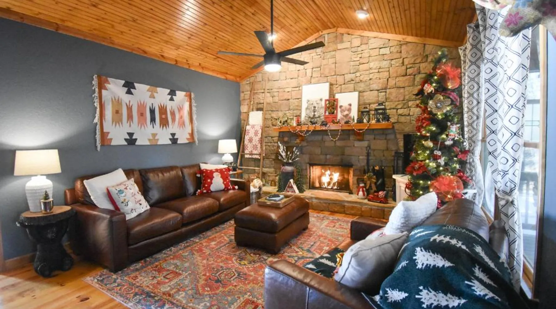 Spacious Holiday Home in Ellijay: A Beary Deer Place offers a spacious holiday home in Ellijay, United States. The property features three bedrooms and two bathrooms, ensuring ample space for all guests. Leisure Facilities: Guests can enjoy an indoor and outdoor swimming pool, an outdoor fireplace, a fitness room, a hot tub, and a games room. The outdoor seating area and children's playground provide additional entertainment options. Comfortable Amenities: The holiday home includes air-conditioning, a terrace, balcony, washing machine, and a fully equipped kitchen with modern appliances. Additional amenities include a dining area, work desk, and free toiletries. Convenient Location: Located 65 mi from Chattanooga Metropolitan Airport, the property provides easy access to local attractions. Reception staff speak Czech, German, English, Spanish, French, Italian, Dutch, and Portuguese. The hot tub and fireplace are the standout features of this holiday home. Boasting 3 bedrooms, this spacious holiday home has 2 bathrooms with a hairdryer, a seating area and terrace where you can relax. Guests will find a stovetop, a refrigerator, a dishwasher and kitchenware in the fully equipped kitchen. The holiday home also features a barbecue. The holiday home offers air conditioning, a washing machine, a private entrance, a tea and coffee maker and a TV. The unit offers 3 beds.