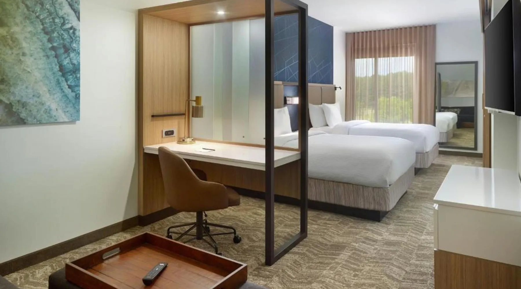 Comfortable Accommodations: SpringHill Suites by Marriott Ellijay in Ellijay offers comfortable rooms with city views. Each room includes a private bathroom, air-conditioning, and a workspace. Convenient Facilities: Guests can enjoy free WiFi, a fitness center, and a swimming pool. Additional amenities include a hot tub, sauna, and a business center. Prime Location: Located 64 mi from Chattanooga Metropolitan Airport, the hotel provides easy access to local attractions. Nearby activities include hiking and fishing. The unit offers 2 beds.