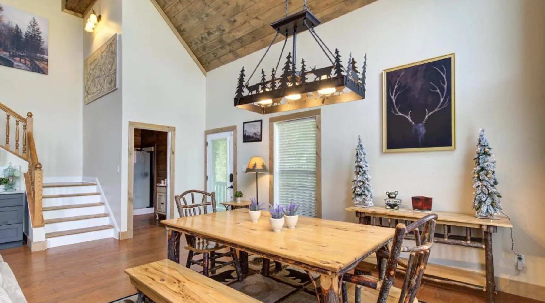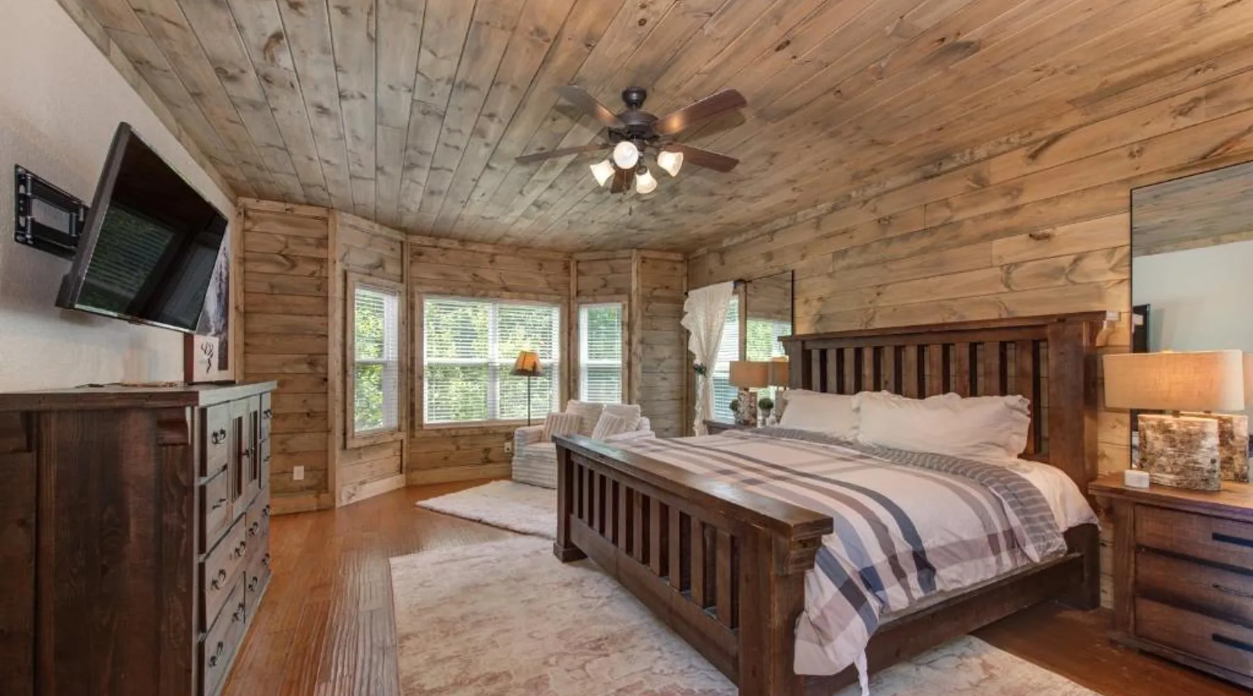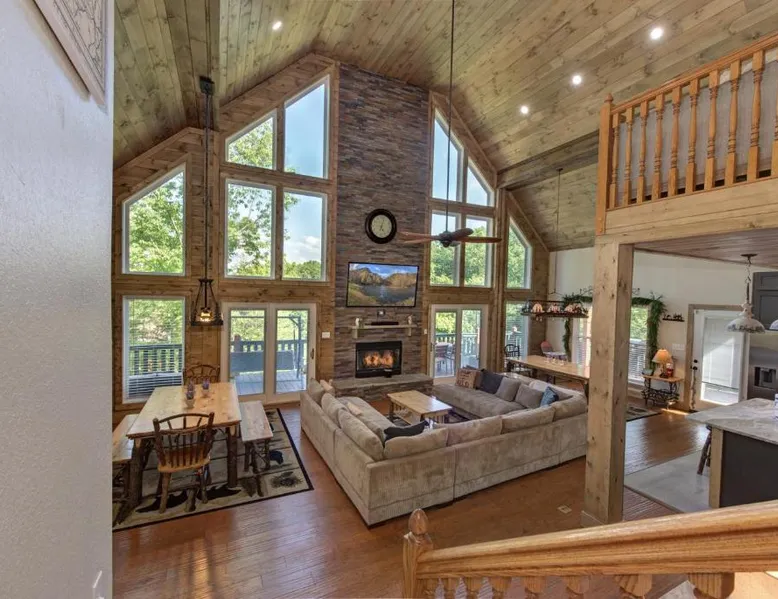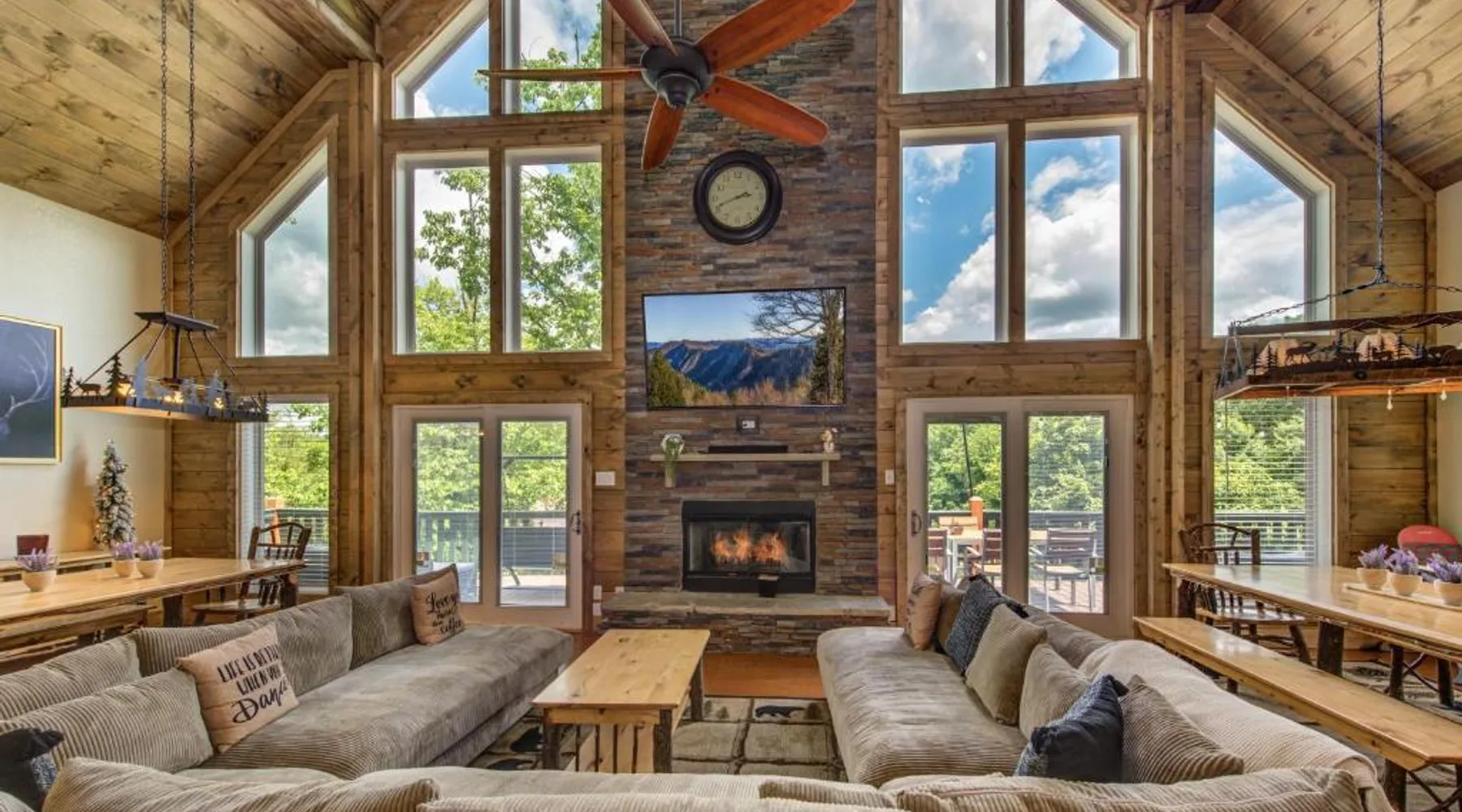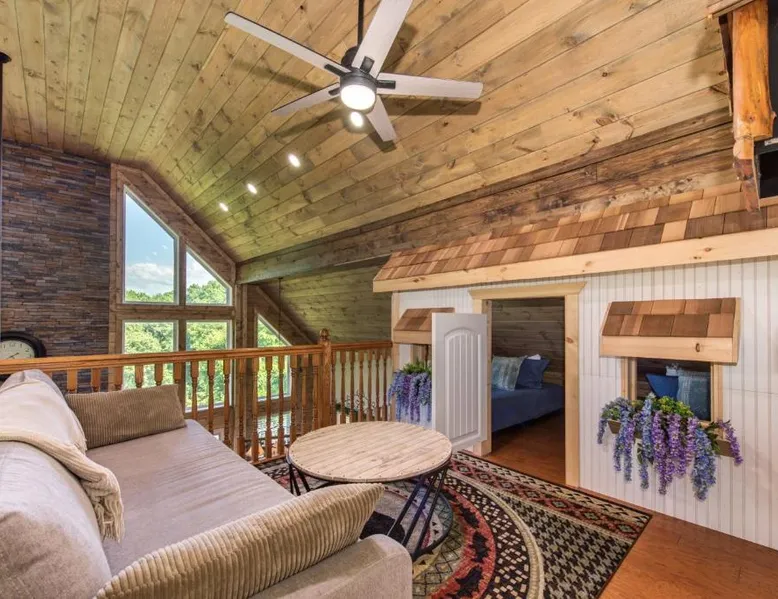 Spacious Accommodations: Smoky's Bliss cabin in Pigeon Forge offers six bedrooms and five bathrooms. The spacious layout includes a living room with a seating area, ensuring comfort for all guests. Modern Amenities: Guests enjoy free WiFi, an outdoor fireplace, and a hot tub. The property features a heated pool, streaming services, washing machine, and a fully equipped kitchen with a dishwasher and microwave. Convenient Location: Located 30 mi from McGhee Tyson Airport, the cabin is close to attractions such as The Grand Majestic Theater (1.9 mi) and Dollywood (4.3 mi). Free on-site private parking is available. This spacious holiday home consists of 1 living room, 6 separate bedrooms and 5 bathrooms with a hairdryer and free toiletries. Guests will find a refrigerator, a dishwasher, kitchenware and an oven in the well-equipped kitchen. The holiday home also provides guests with a barbecue. The holiday home provides a washing machine, a private entrance, a mini-bar, a tea and coffee maker, as well as a TV with streaming services. The unit offers 10 beds.