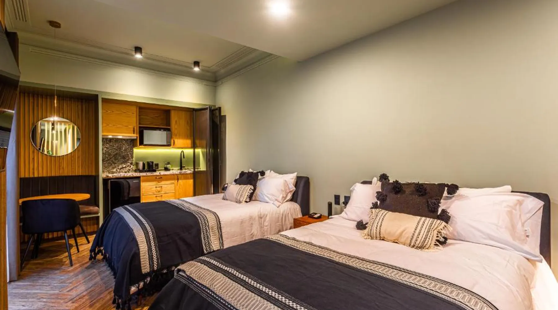 Comfortable Accommodations: Casa Juarez in Puebla offers family rooms with private bathrooms, air-conditioning, and garden views. Each room includes a work desk, TV, and free WiFi. Exceptional Facilities: Guests enjoy a sun terrace, garden, and outdoor fireplace. Free bicycles are available for exploring the area. Additional amenities include a lounge, games room, and outdoor seating. Delicious Breakfast: A continental breakfast with juice and fruits is served daily. Private check-in and check-out services ensure a smooth arrival and departure. Prime Location: Located 12 mi from Hermanos Serdán International Airport, Casa Juarez is near attractions such as Biblioteca Palafoxiana (1.1 mi) and Amparo Museum (1.2 mi). Highly rated for its attentive staff and excellent service. Offering free toiletries and bathrobes, this double room includes a private bathroom with a bath, a shower and a hairdryer. The spacious double room offers a private entrance, a tea and coffee maker, a wardrobe, a flat-screen TV with streaming services, as well as garden views. The unit has 1 bed.