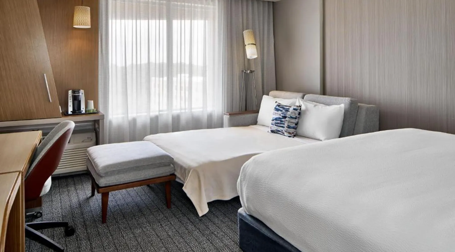 Comfortable Accommodations: Rooms feature air-conditioning, private bathrooms, tea and coffee makers, and free toiletries. Additional amenities include streaming services, work desks, and complimentary WiFi. Dining and Leisure: The hotel offers an indoor swimming pool, fitness center, restaurant, and bar. Guests can enjoy American cuisine at the on-site restaurant, and relax in the outdoor fireplace or barbecue facilities. Convenient Location: Located in Duluth, the property is 19 mi from Historic Stone Mountain Village and 24 mi from Atlanta History Center. Nearby attractions include the High Museum of Art and Atlanta Botanical Garden. Guest Satisfaction: Highly rated for its attentive staff, room cleanliness, and convenient location. Providing free toiletries, this double room includes a private bathroom with a shower and a hairdryer. The double room features carpeted floors, a seating area with a flat-screen TV with streaming services, air conditioning, a tea and coffee maker, as well as a wardrobe. The unit offers 2 beds.