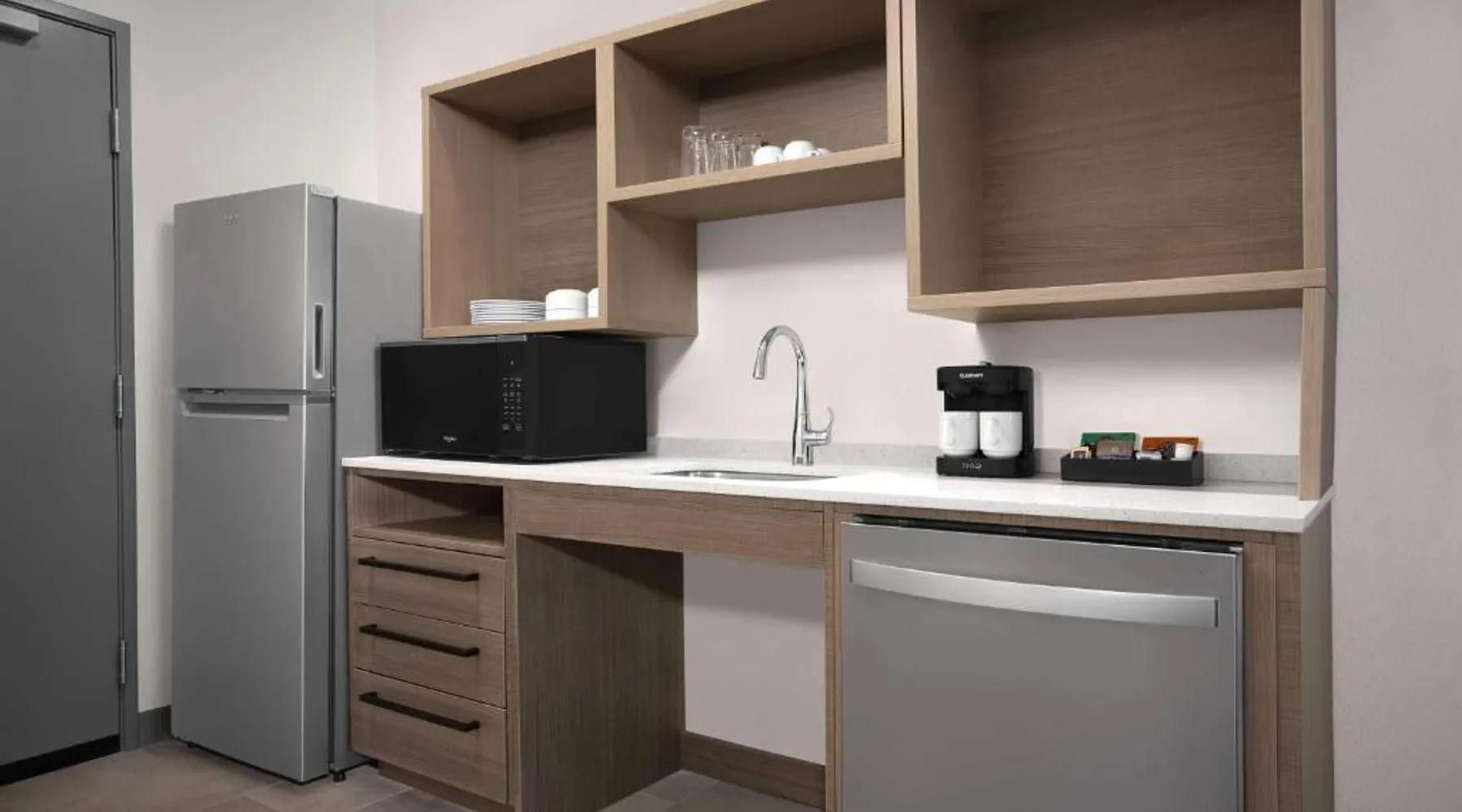 Comfortable Accommodations: Rooms feature air-conditioning, kitchenettes, private bathrooms, and modern amenities including streaming services and free WiFi. Guests enjoy sofa beds, work desks, and comfortable seating areas. Leisure Facilities: The hotel offers a fitness center, sun terrace, garden, and a seasonal outdoor swimming pool. Additional amenities include an outdoor fireplace, elevator, 24-hour front desk, minimarket, daily housekeeping service, child-friendly buffet, business area, outdoor seating area, and barbecue facilities. Dining Options: A continental and American buffet breakfast is provided each morning. Guests can also enjoy a variety of dining options, including a child-friendly buffet and outdoor seating areas. Location and Attractions: Located in East Ridge, the hotel is 3.7 mi from Chattanooga Metropolitan Airport. Nearby attractions include Chattanooga Zoo (7.5 mi), Tennessee Aquarium (11 mi), and Lookout Mountain (12 mi). Guests appreciate the breakfast and room comfort. Guests can make meals in the kitchenette that has a refrigerator, a dishwasher, kitchenware and a microwave. This air-conditioned studio is consisted of of a flat-screen TV with streaming services and a private bathroom. The unit has 2 beds.