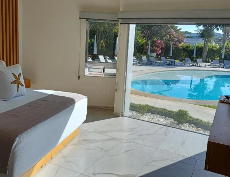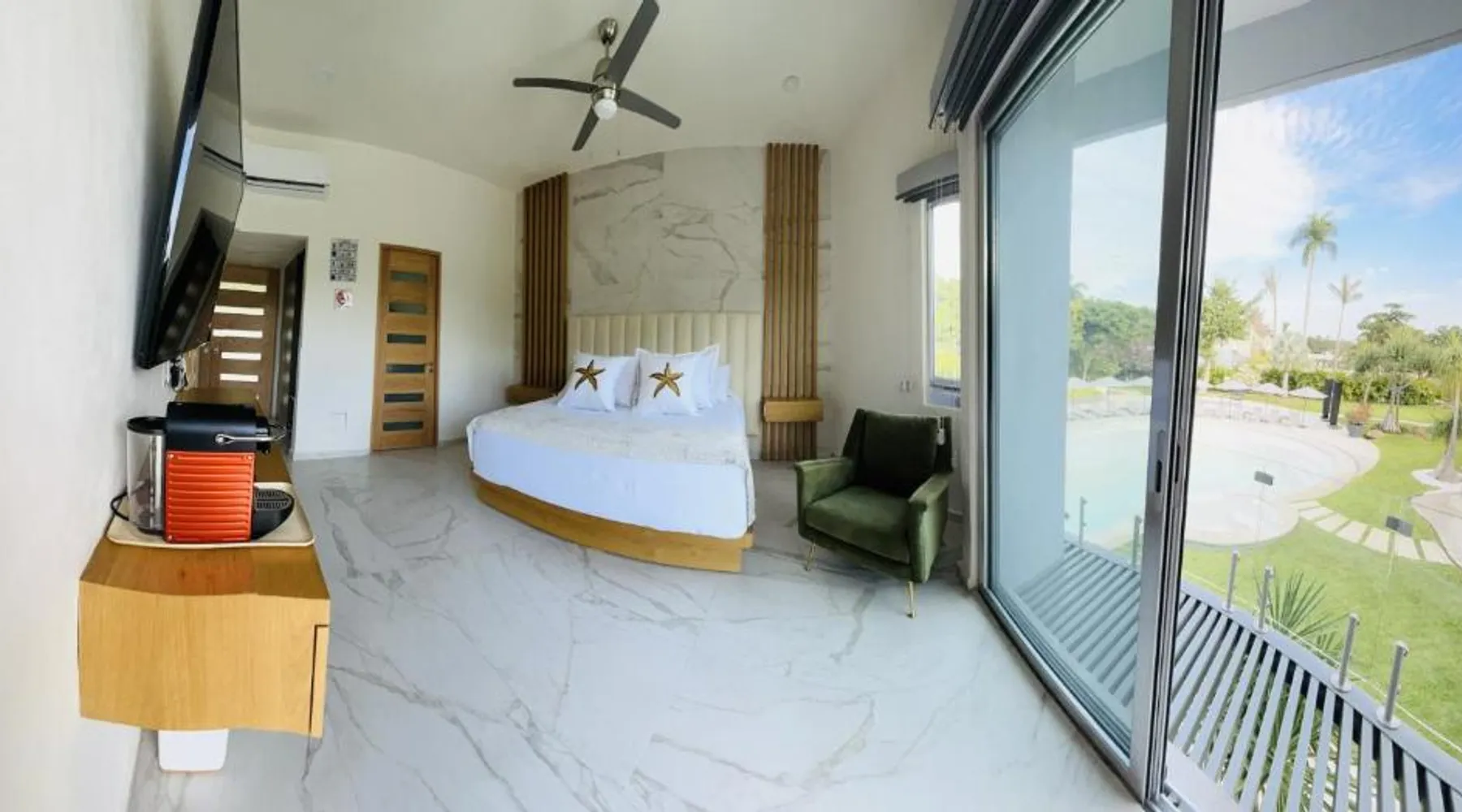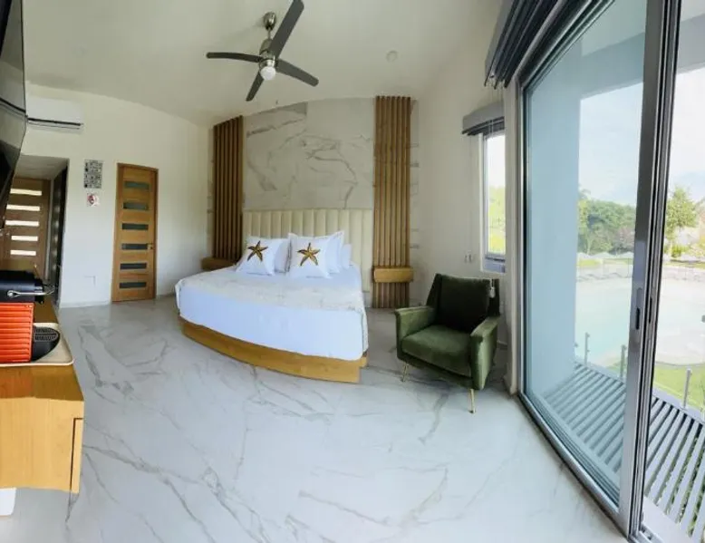 Elegant Accommodations: Hotel Azomalli in Xochitepec offers a swimming pool with a view, a lush garden, and a spacious terrace. Guests can relax at the bar or enjoy free WiFi throughout the property. Comfortable Amenities: Rooms feature air-conditioning, private bathrooms, balconies with garden or pool views, and modern amenities such as streaming services and free toiletries. Additional facilities include a pool bar and room service. Convenient Location: Located 65 mi from Benito Juarez International Airport, the hotel is near attractions like the Robert Brady Museum (14 mi) and the Archaeological Monuments Zone of Xochicalco (9.9 mi). Free on-site private parking is available. Guests will have a special experience as this double room provides a pool with a view. The spacious double room offers air conditioning, a private entrance, a terrace with garden views as well as a private bathroom featuring a shower. The unit offers 1 bed.
