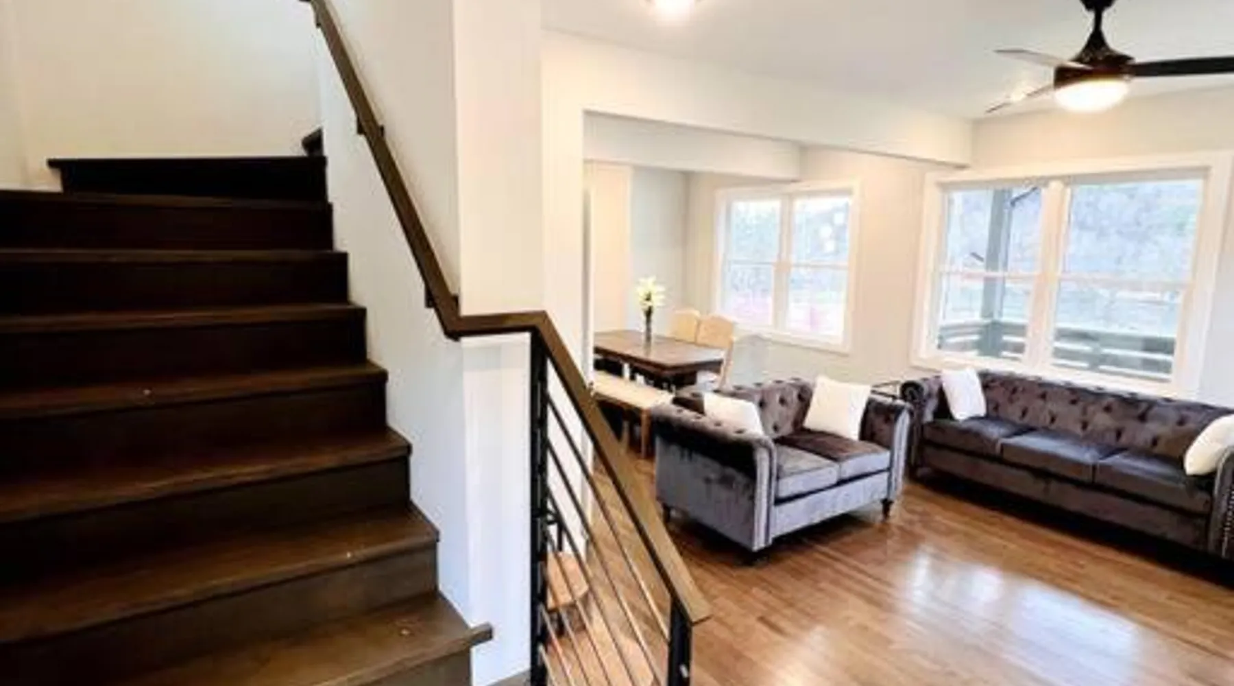 Spacious Accommodations: Tranquil River Home in Asheville offers a spacious apartment with three bedrooms and three bathrooms. The property features a sun terrace, garden, and free WiFi, ensuring a comfortable stay. Modern Amenities: Guests enjoy air-conditioning, a balcony with mountain views, and a fully equipped kitchen. Additional amenities include a washing machine, dishwasher, and free toiletries. Convenient Location: Located 17 mi from Asheville Regional Airport, the apartment is close to attractions such as Biltmore Estate (8.1 mi) and the Botanical Gardens at Asheville (1.9 mi). Boating is available in the surrounding area. Highly Rated by Guests: Tranquil River Home receives high ratings from guests for its spaciousness and excellent facilities, including a private check-in and check-out service, outdoor fireplace, and children's playground. In the well-equipped kitchen, guests will find a stovetop, a refrigerator, a dishwasher and an oven. The spacious air-conditioned apartment offers a flat-screen TV, a washing machine, a private entrance, a tea and coffee maker as well as mountain views. The unit has 3 beds.