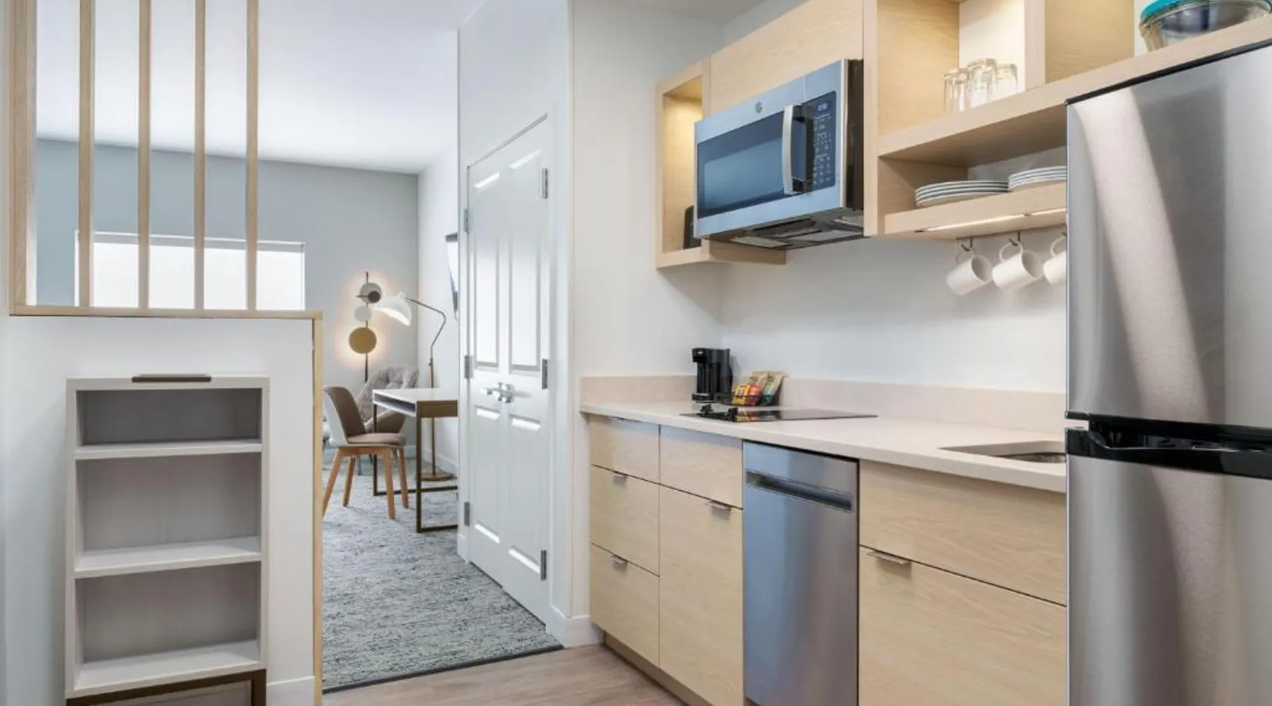 Comfortable Accommodations: TownePlace Suites by Marriott Brunswick in Brunswick offers family rooms with air-conditioning, kitchenettes, private bathrooms, and free WiFi in public areas. Each room includes a work desk, seating area, and free toiletries. Modern Amenities: Guests enjoy a fitness center, free on-site private parking, and a 24-hour front desk. Additional features include a buffet breakfast, tea and coffee maker, hairdryer, refrigerator, microwave, dishwasher, and TV. Convenient Location: Located 1.2 mi from Brunswick Golden Isles Airport, the hotel is praised for its room cleanliness, convenient location, and comfortable rooms. Offering free toiletries, this studio includes a private bathroom with a bath, a shower and a hairdryer. In the well-fitted kitchenette, guests will find a refrigerator, a dishwasher, kitchenware and a microwave. The studio has parquet floors, a seating area with a flat-screen TV with cable channels, air conditioning, a tea and coffee maker, as well as a wardrobe. The unit has 2 beds.