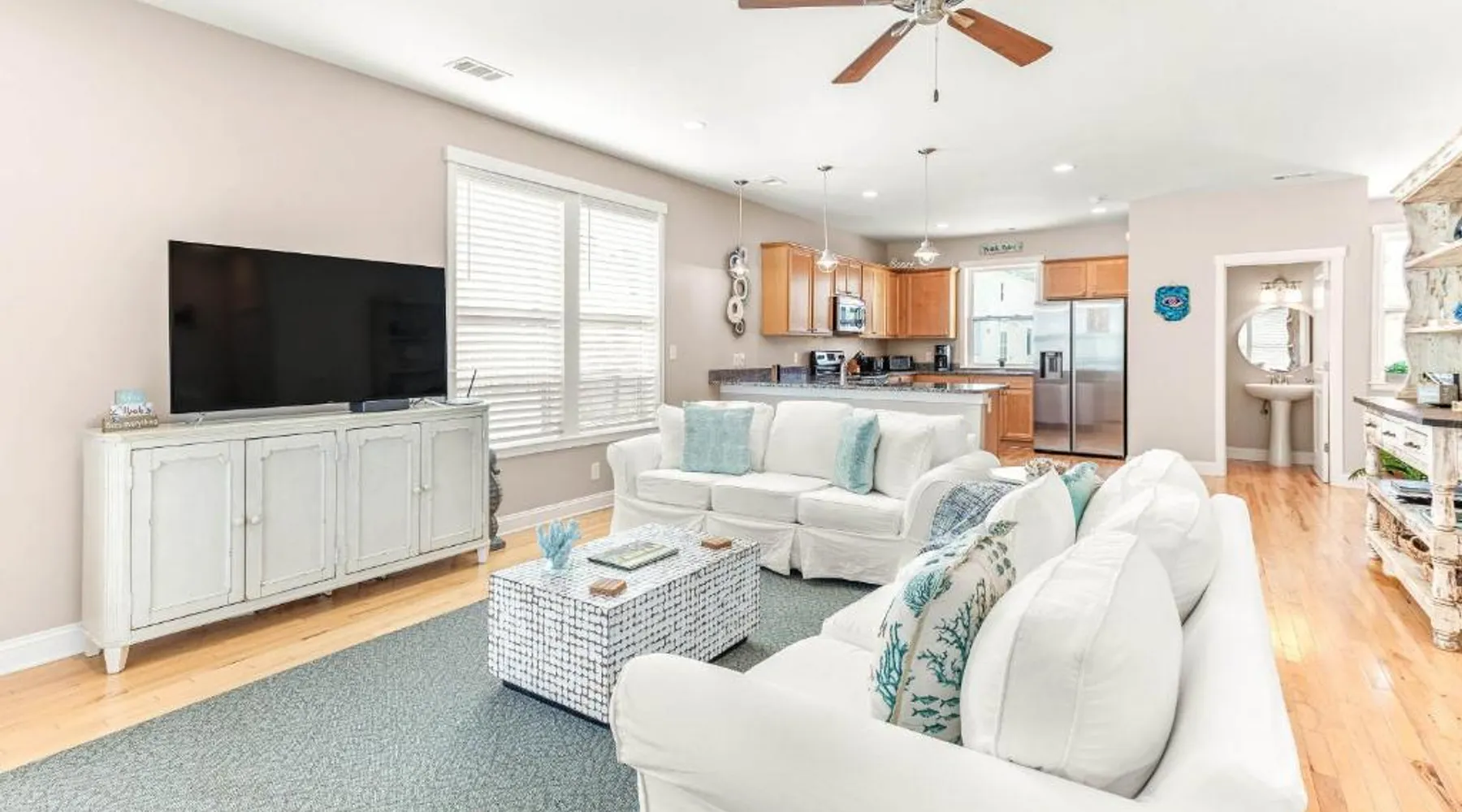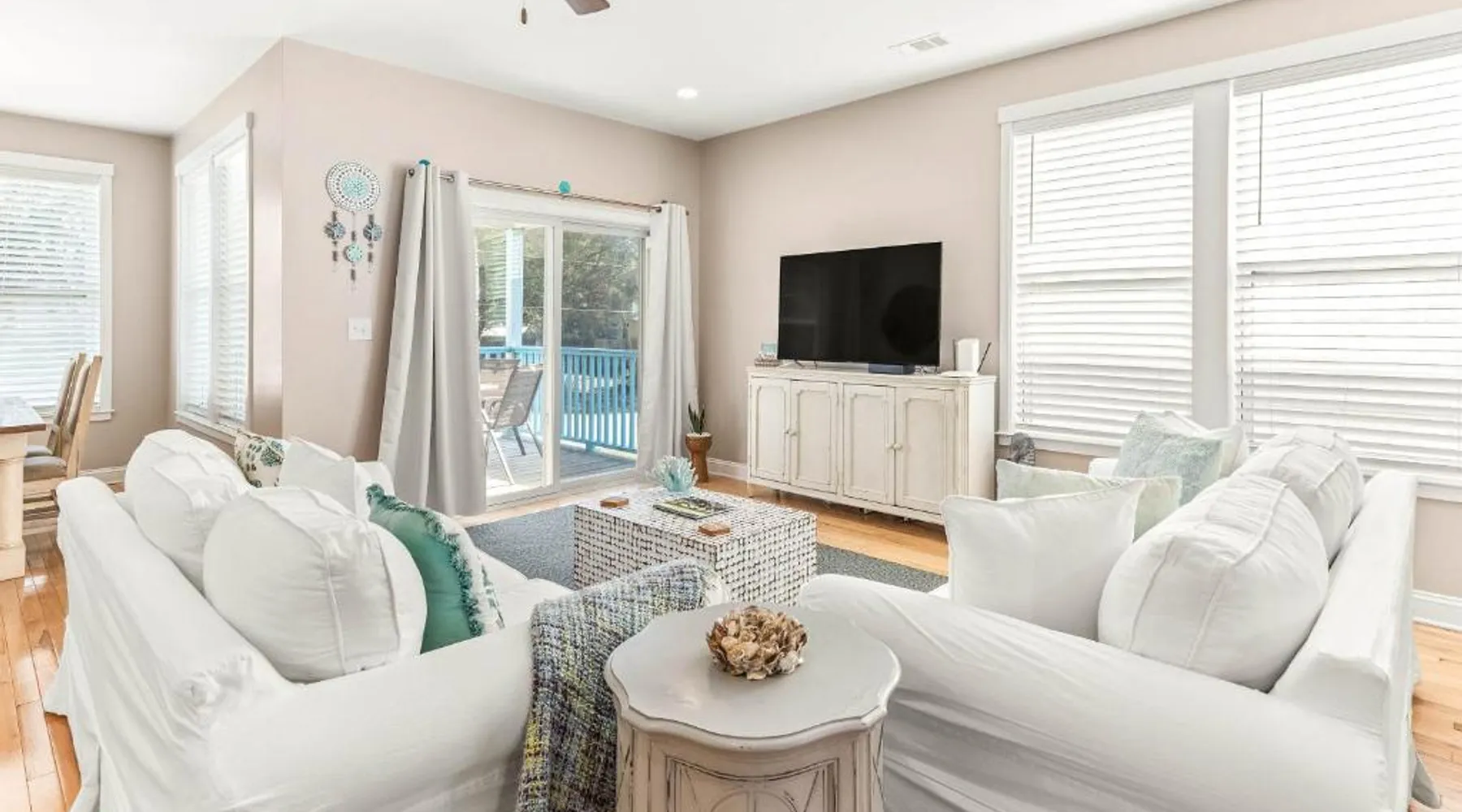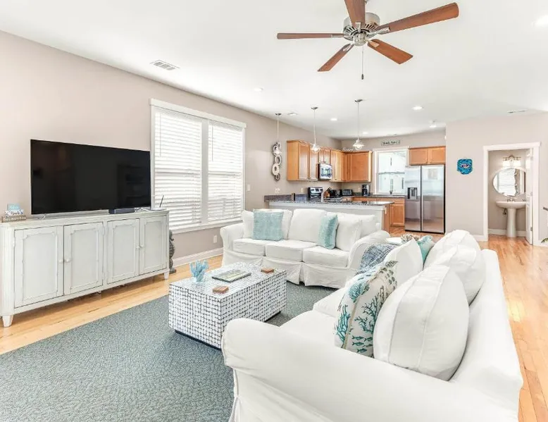 Spacious Accommodations: Peach Coral in Tybee Island offers a spacious holiday home with three bedrooms and three bathrooms. The property features a fully equipped kitchen, air-conditioning, and a washing machine. Modern Amenities: Guests enjoy free WiFi, a children's playground, and beauty services. The home includes a dining table, barbecue, and a variety of kitchen appliances. Convenient Location: Tybee Island Beach is an 8-minute walk away. Savannah/Hilton Head International Airport is 25 mi from the property. Nearby attractions include Savannah Bend Marina (13 mi) and Crossroads Shopping Center (14 mi). This spacious holiday home comes with 3 bedrooms, a kitchen and 3 bathrooms with a walk-in shower and a hairdryer. Guests will find a stovetop, a refrigerator, a dishwasher and kitchenware in the well-fitted kitchen. The holiday home also includes a barbecue. The air-conditioned holiday home features a TV, a washing machine, a tea and coffee maker, tumble dryer as well as an inner courtyard view. The unit has 3 beds.