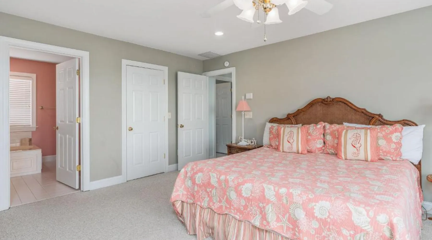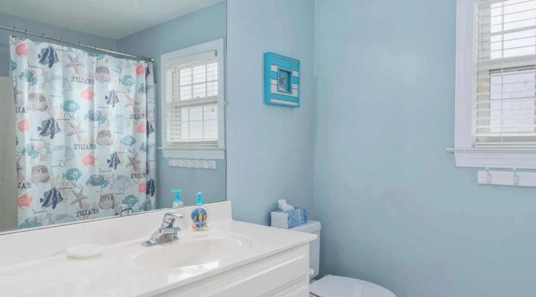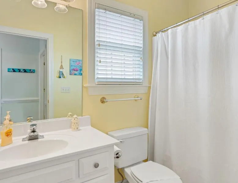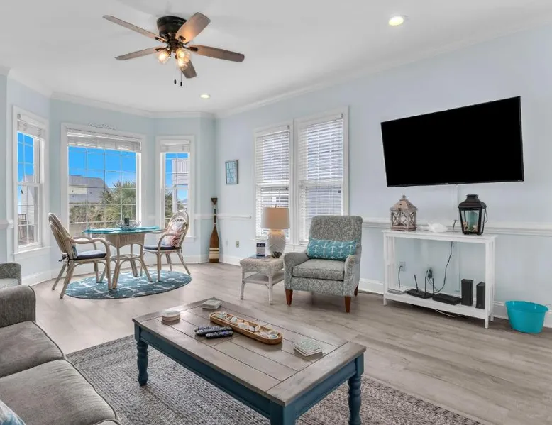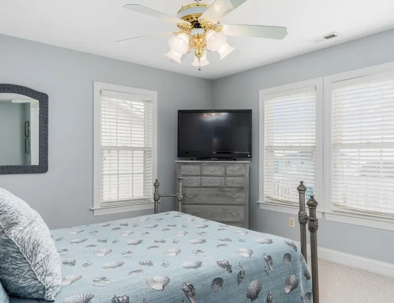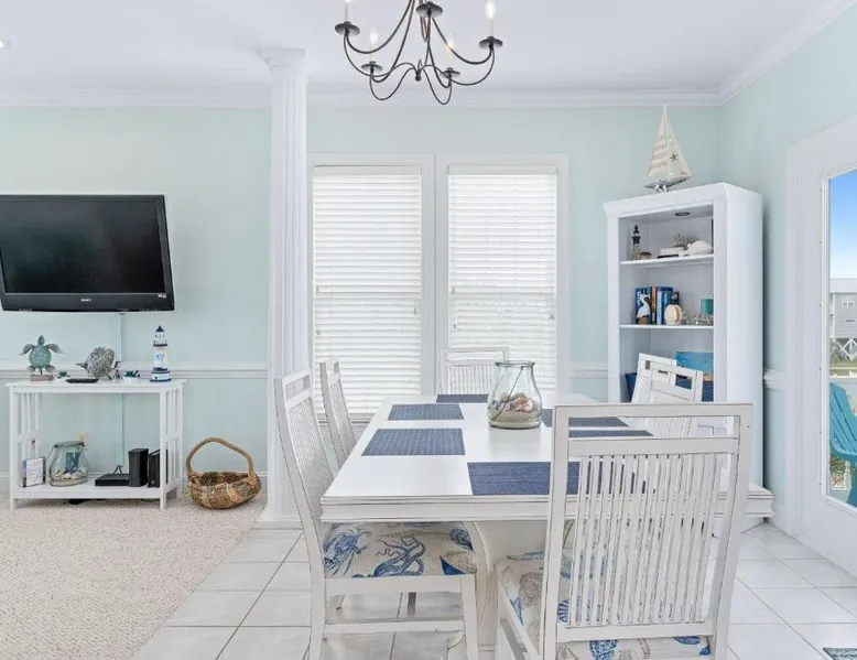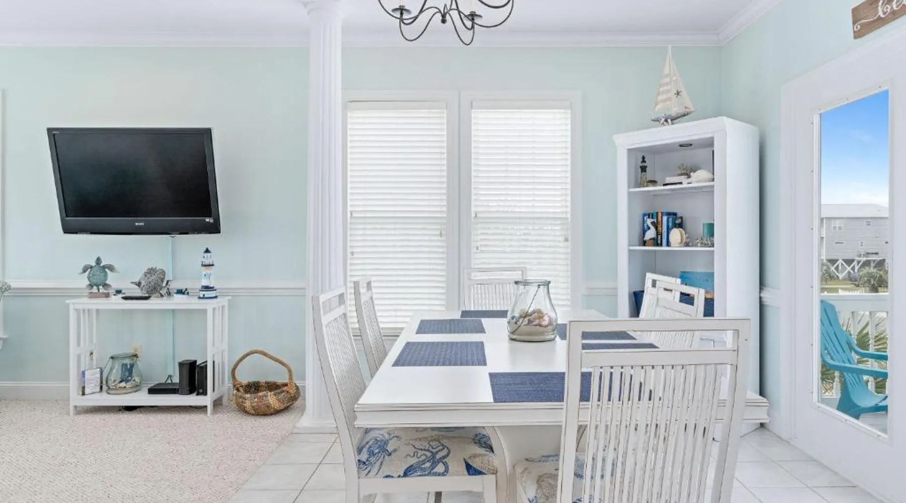 Comfortable Living: 5 Buoys by Oak Island Accommodations in Oak Island offers a holiday home with a shared kitchen, private bathroom, and dishwasher. The property includes air-conditioning, a washing machine, and a patio. Modern Amenities: Guests can enjoy a TV, coffee machine, refrigerator, microwave, stovetop, and kitchenware. The dining area provides a relaxing space for meals. Prime Location: Located a few steps from Long Beach and 37 mi from Wilmington International Airport. USS North Carolina is 30 mi away. The air-conditioned holiday home has 4 bedrooms, 6 bathrooms and a kitchen. The holiday home's kitchen, which features a dishwasher and kitchenware, is available for cooking and storing food. This holiday home offers a TV with cable channels. The unit has 6 beds.