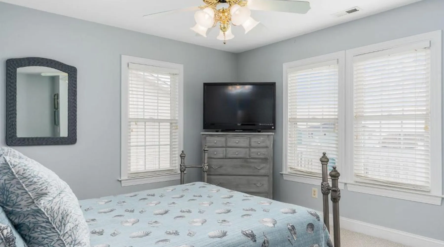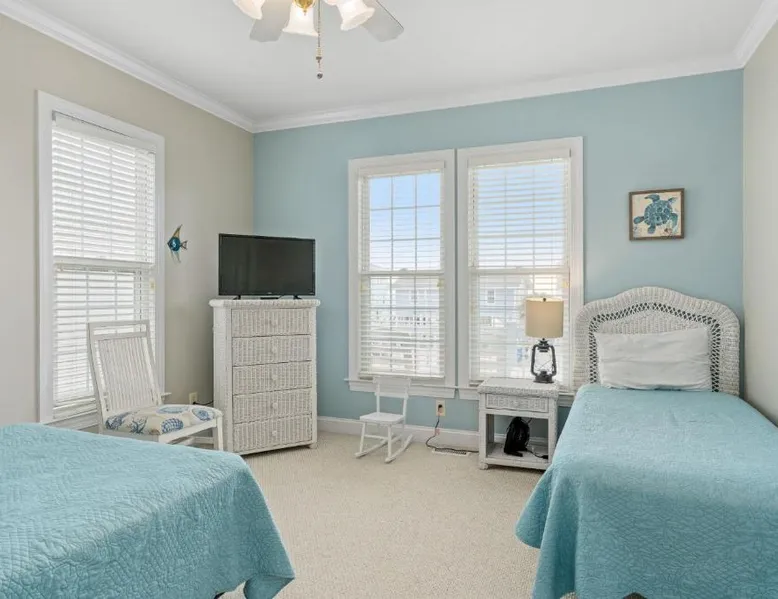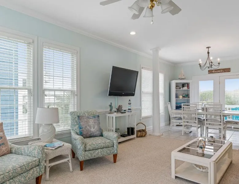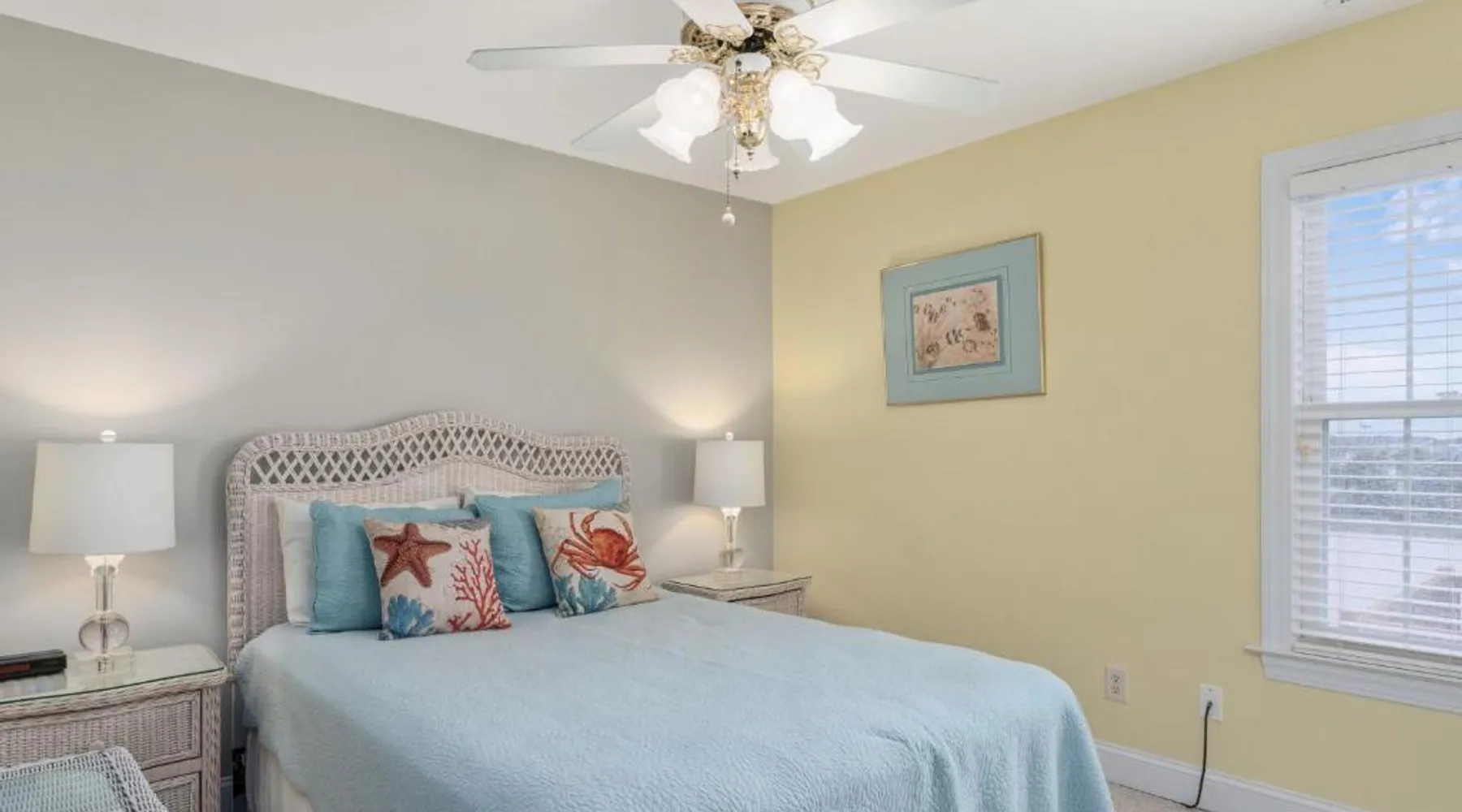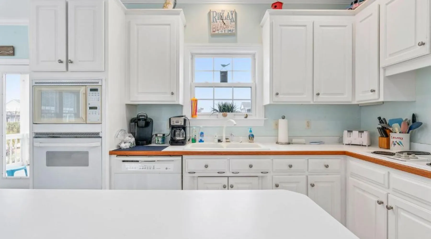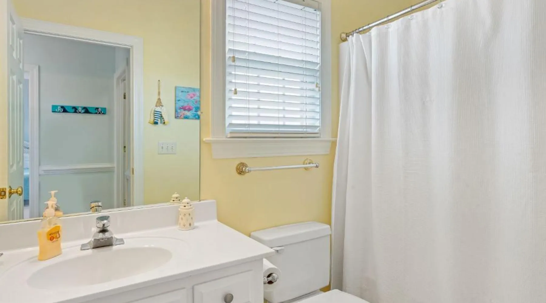 Comfortable Living: 5 Buoys by Oak Island Accommodations in Oak Island offers a holiday home with a shared kitchen, private bathroom, and dishwasher. The property includes air-conditioning, a washing machine, and a patio. Modern Amenities: Guests can enjoy a TV, coffee machine, refrigerator, microwave, stovetop, and kitchenware. The dining area provides a relaxing space for meals. Prime Location: Located a few steps from Long Beach and 37 mi from Wilmington International Airport. USS North Carolina is 30 mi away. The air-conditioned holiday home has 4 bedrooms, 6 bathrooms and a kitchen. The holiday home's kitchen, which features a dishwasher and kitchenware, is available for cooking and storing food. This holiday home offers a TV with cable channels. The unit has 6 beds.