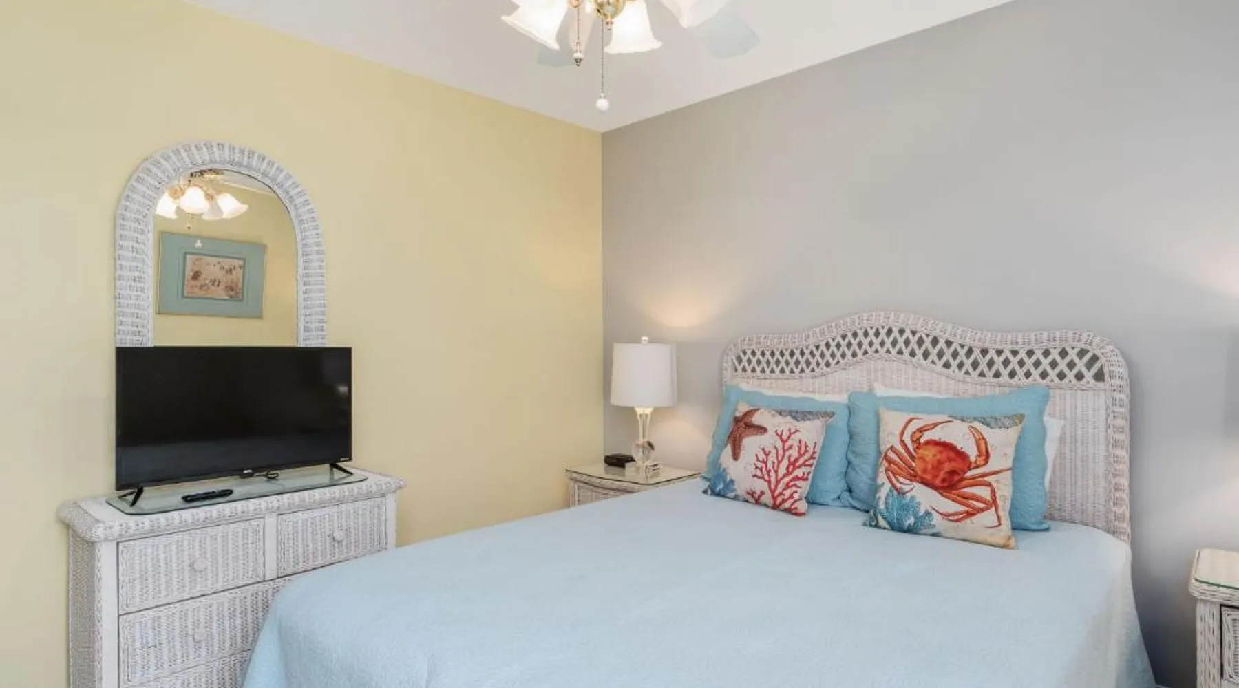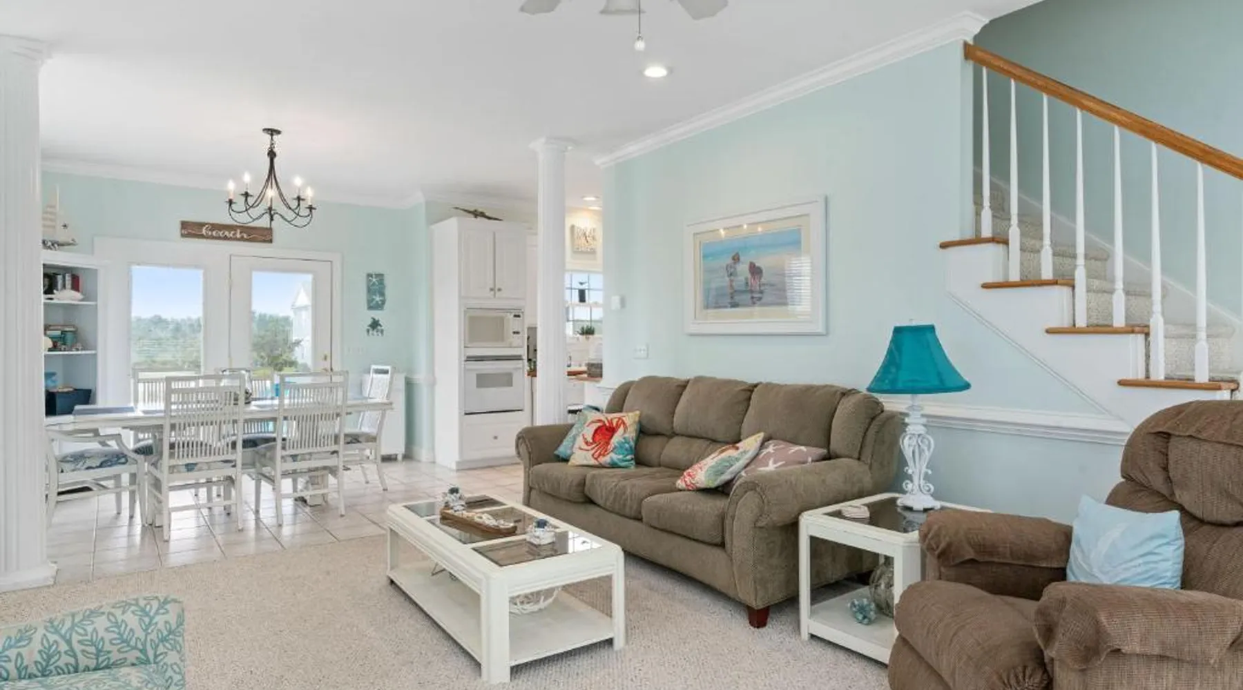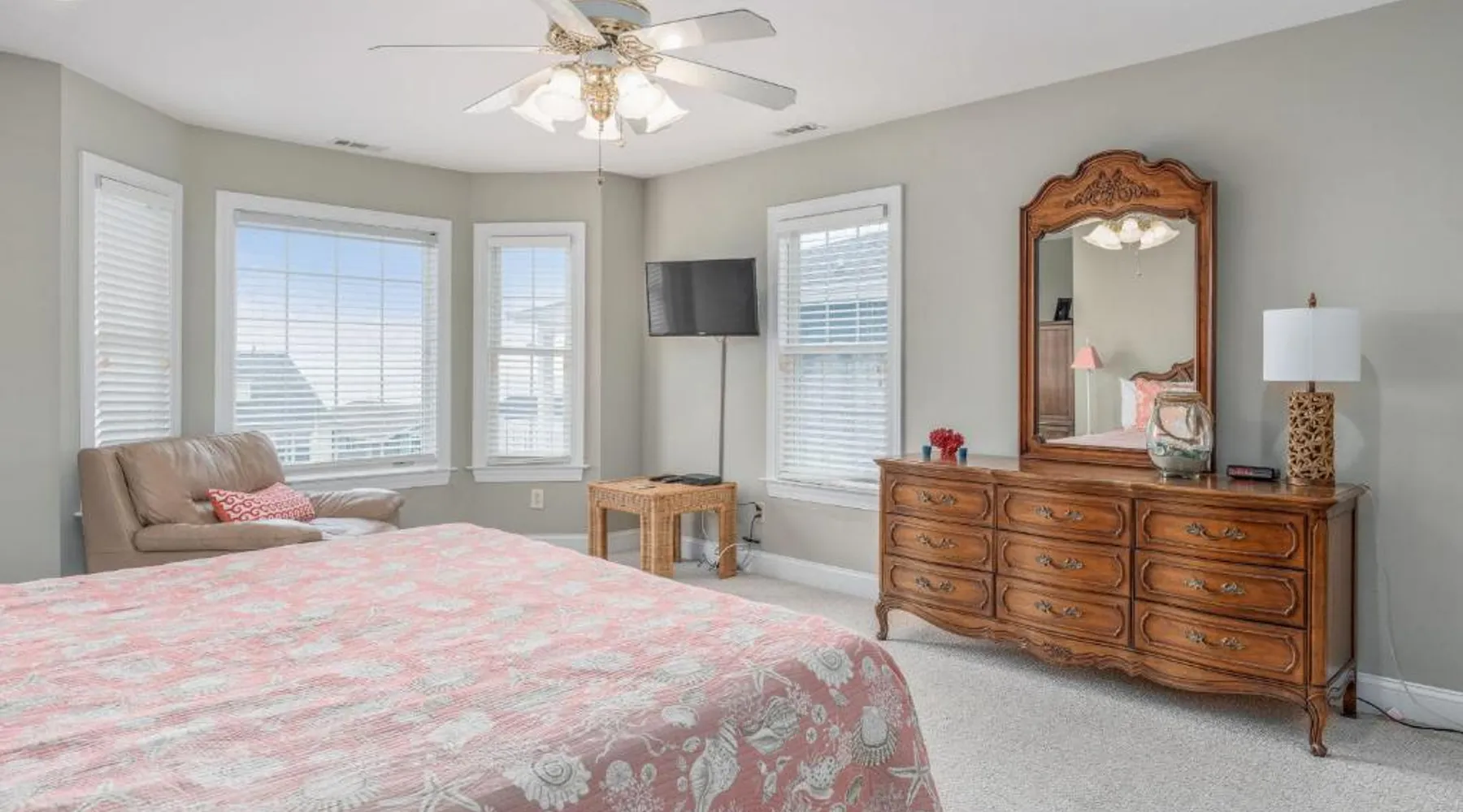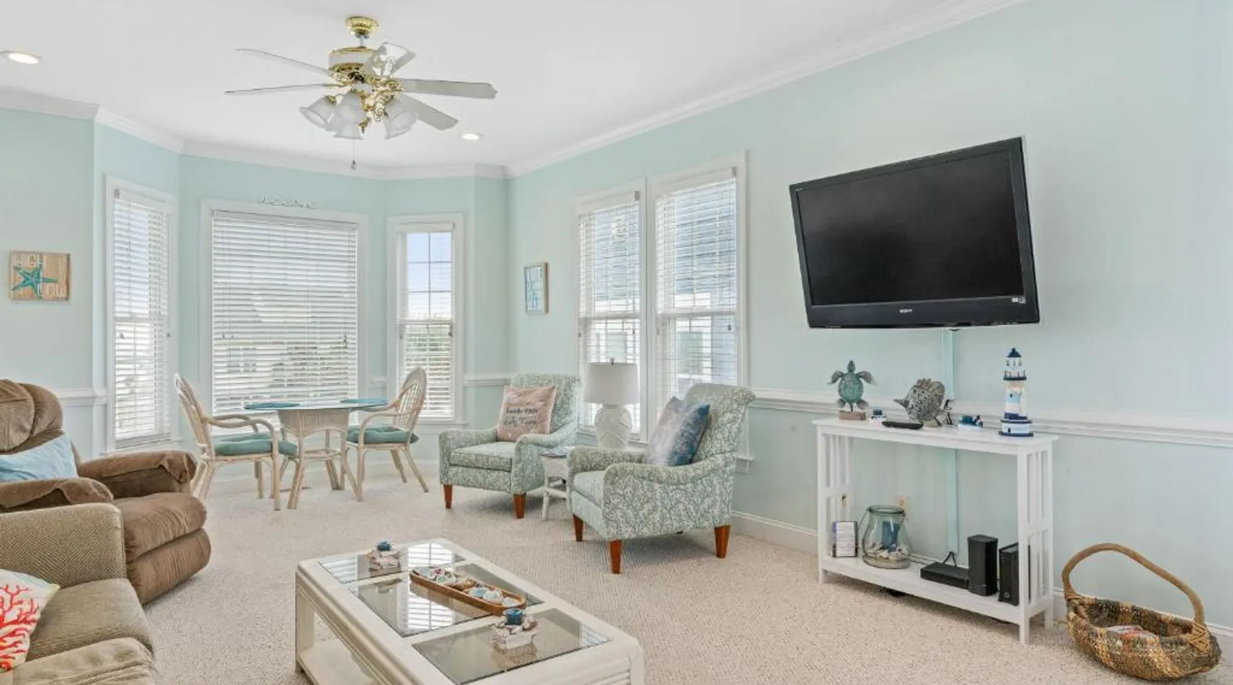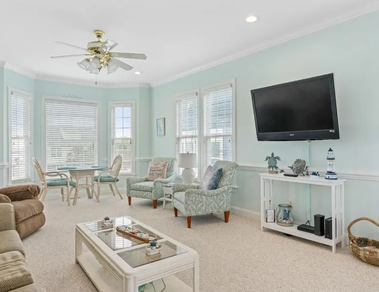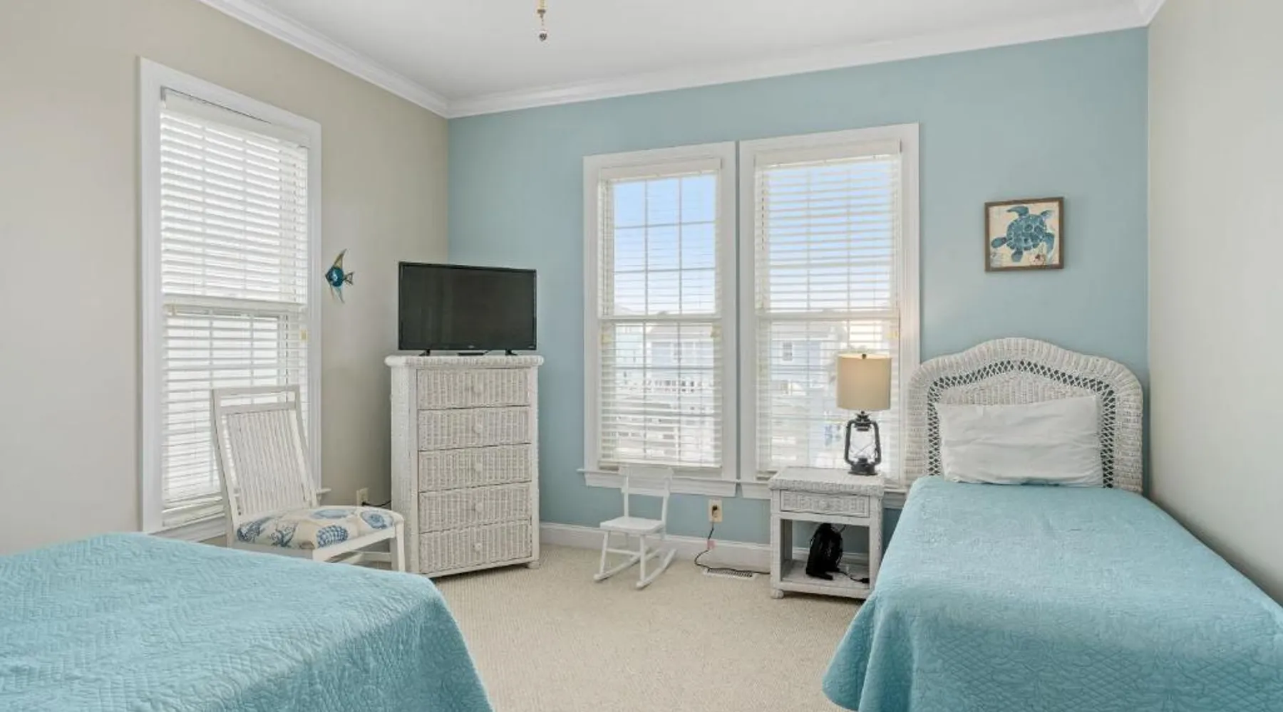 Comfortable Living: 5 Buoys by Oak Island Accommodations in Oak Island offers a holiday home with a shared kitchen, private bathroom, and dishwasher. The property includes air-conditioning, a washing machine, and a patio. Modern Amenities: Guests can enjoy a TV, coffee machine, refrigerator, microwave, stovetop, and kitchenware. The dining area provides a relaxing space for meals. Prime Location: Located a few steps from Long Beach and 37 mi from Wilmington International Airport. USS North Carolina is 30 mi away. The air-conditioned holiday home has 4 bedrooms, 6 bathrooms and a kitchen. The holiday home's kitchen, which features a dishwasher and kitchenware, is available for cooking and storing food. This holiday home offers a TV with cable channels. The unit has 6 beds.