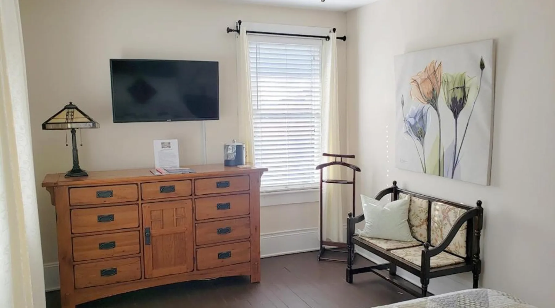 Historic Setting: The Charleston Inn Hendersonville NC is located in a recently renovated historic building in Hendersonville. Guests enjoy a convenient location with easy access to local attractions. Comfortable Accommodations: Rooms feature air-conditioning, private bathrooms with walk-in showers, and city views. Additional amenities include streaming services, free toiletries, and complimentary WiFi. Convenient Facilities: The property offers free on-site parking, private check-in and check-out services, an outdoor seating area, and full-day security. Guests can relax in the seating area or take advantage of the streaming services. Nearby Attractions: Biltmore Estate is 24 mi away, the North Carolina Arboretum 19 mi, and Asheville Regional Airport 13 mi from the inn. Other attractions include Jones Gap State Park and Caesars Head State Park. Offering free toiletries, this double room includes a private bathroom with a walk-in shower, a bath or a shower and a hairdryer. The spacious air-conditioned double room offers a flat-screen TV with streaming services, a seating area, a wardrobe, a dressing room as well as city views. The unit offers 1 bed.