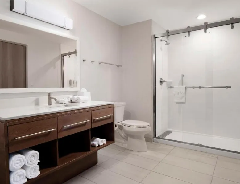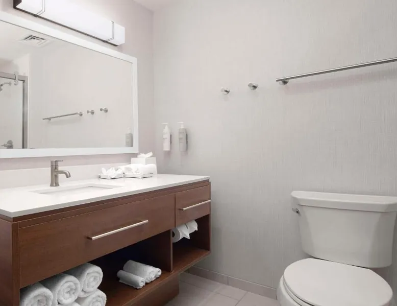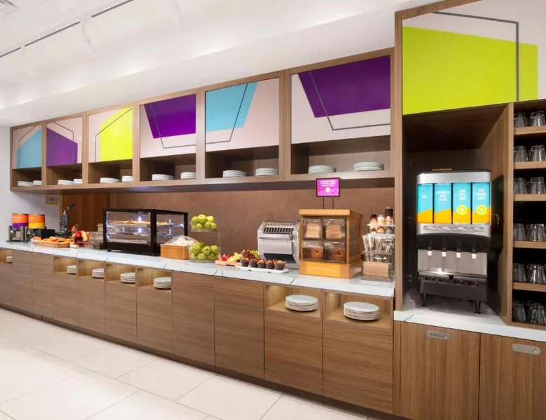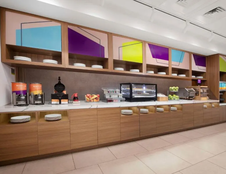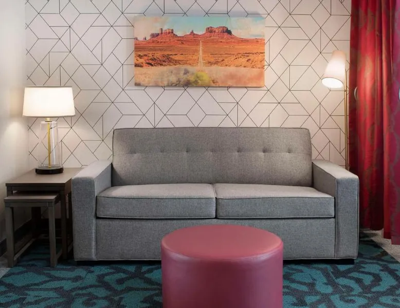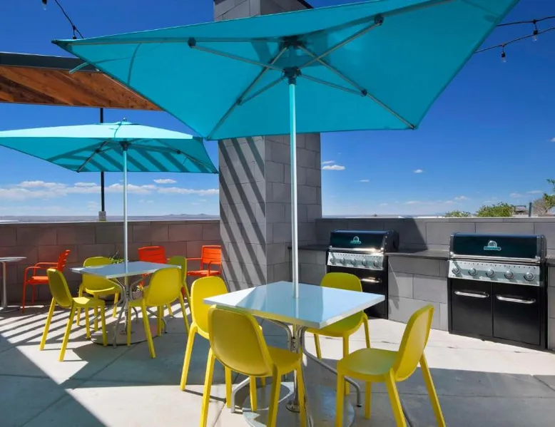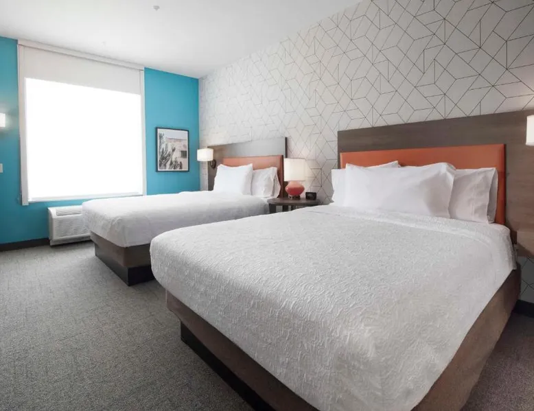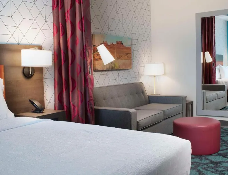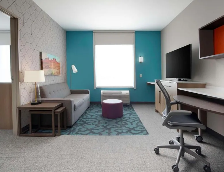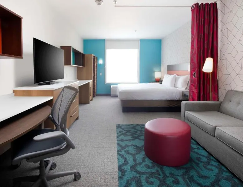 Comfortable Accommodations: Home2 Suites By Hilton Albuquerque Airport in Albuquerque offers family rooms with air-conditioning, kitchenettes, and free WiFi. Each room includes a sofa bed, work desk, and free toiletries. Leisure Facilities: Guests can enjoy a sun terrace, indoor swimming pool, and fitness room. Additional amenities include a 24-hour front desk, outdoor seating area, and picnic area. Dining Options: A complimentary American buffet breakfast is served daily, featuring warm dishes, fresh pastries, fruits, and juice. Convenient Location: Located 0.6 mi from Albuquerque International Sunport, the hotel is near attractions such as University Stadium (2.5 mi) and ABQ BioPark - Zoo (4.3 mi). The well-equipped kitchenette features a refrigerator, a dishwasher, kitchenware and a microwave. This studio has air conditioning, a tea and coffee maker and a flat-screen TV. The unit offers 2 beds.