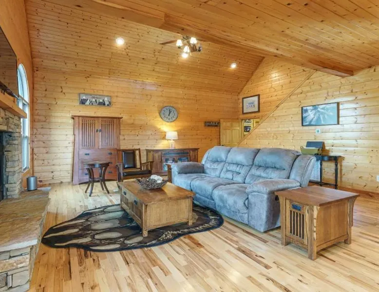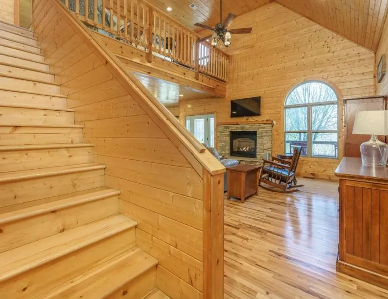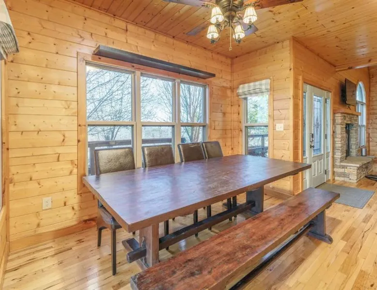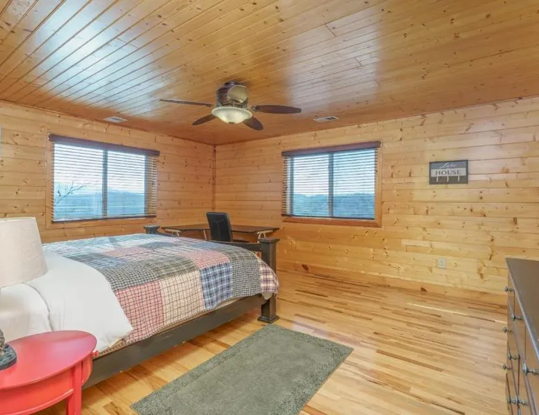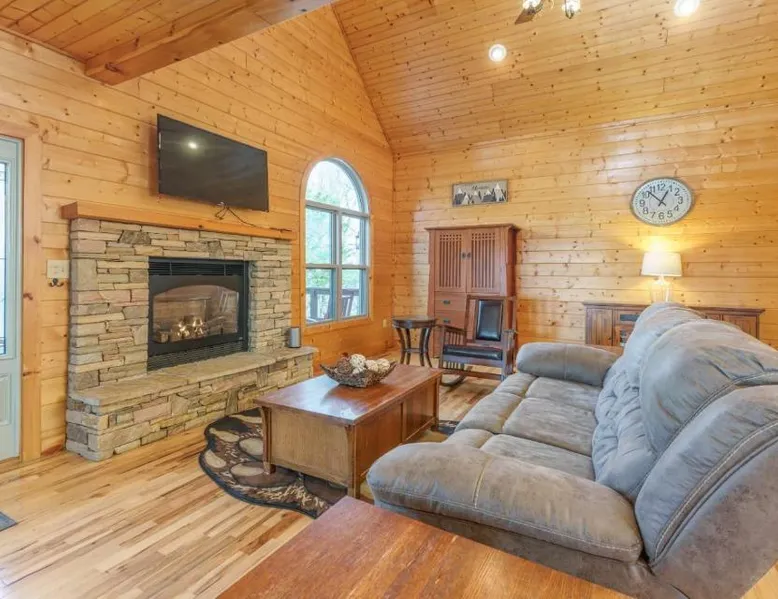 Spacious Accommodations: Peacewood in Dandridge offers a spacious villa with four bedrooms and two bathrooms. The property features a terrace and mountain views, ensuring a comfortable stay. Wellness and Leisure: Guests can relax at the spa and wellness center or unwind in the hot tub. The terrace provides a perfect spot for outdoor activities, while free WiFi is available throughout the villa. Modern Amenities: The villa includes air-conditioning, a fully equipped kitchen, washing machine, and a fireplace. Additional amenities include a barbecue, TV, and free on-site parking. Local Attractions: Located 18 mi from Smoky Mountain Opry and Dollywood, Peacewood is also close to Dolly Parton's Stampede and Ober Gatlinburg. This villa features a fireplace. This spacious villa features 4 bedrooms, kitchen, a terrace and 2 bathrooms with a bath. Guests will find a stovetop, a refrigerator, a dishwasher and kitchenware in the well-equipped kitchen. The villa also comes with a barbecue. The air-conditioned villa features a TV with cable channels, a washing machine, a tea and coffee maker, tumble dryer as well as mountain views. The unit has 4 beds.