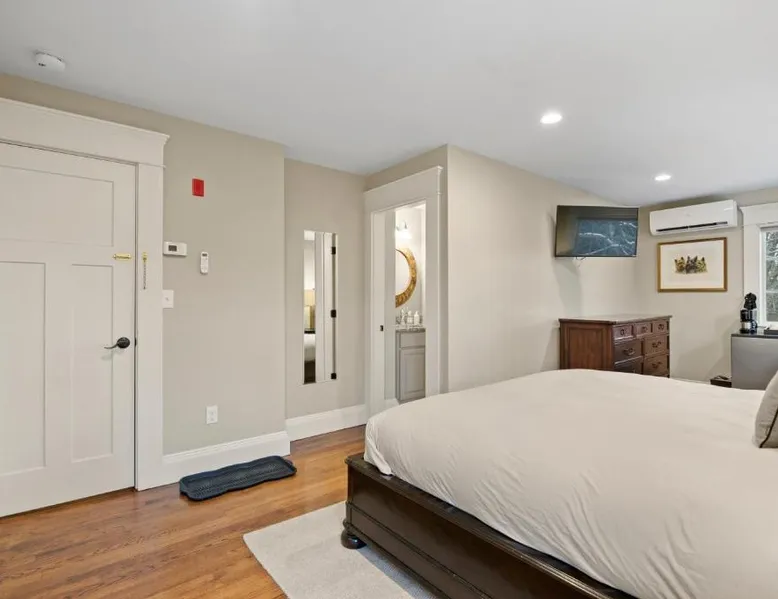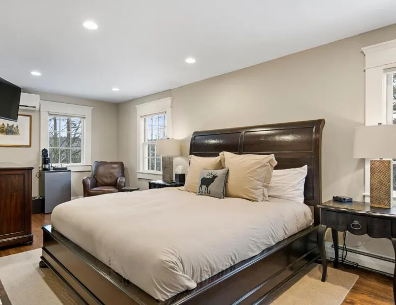 Comfortable Accommodations: Brook Bound Inn in Wilmington offers family rooms with private bathrooms, air-conditioning, and garden views. Each room includes a tea and coffee maker, refrigerator, and TV. Leisure Facilities: Guests can enjoy a seasonal outdoor swimming pool, tennis court, and outdoor fireplace. Additional amenities include a shared kitchen, outdoor play area, and free WiFi. Convenient Location: Located 63 mi from Albany International Airport, the inn is near attractions such as Mount Snow Resort (7.5 mi) and Bennington Battle Monument (25 mi). Free on-site private parking is available. Guest Satisfaction: Highly rated for room cleanliness, convenient location, and room comfort. The family room provides air conditioning, soundproof walls, as well as a private bathroom featuring a walk-in shower and a hairdryer. The family room offers a tea and coffee maker, executive lounge access, a dining area, a flat-screen TV, as well as garden views. The unit offers 1 bed.