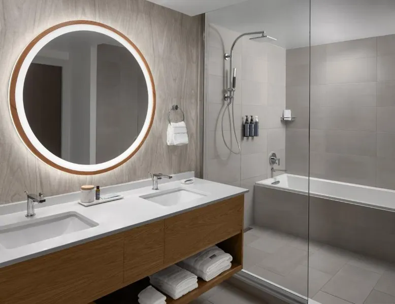 Comfortable Accommodations: Rooms feature air-conditioning, private bathrooms, and modern amenities such as tea and coffee makers, refrigerators, and free WiFi. Additional comforts include streaming services, flat-screen TVs, and wardrobes. Dining Experience: The family-friendly restaurant offers American cuisine with vegetarian, vegan, gluten-free, and dairy-free options. Guests can enjoy brunch, lunch, and dinner in a traditional and modern ambiance. Leisure Facilities: The hotel includes a fitness center, indoor swimming pool, terrace, and bar. Additional amenities include a minimarket, coffee shop, and outdoor seating area. Prime Location: Located in Duluth, the property is 19 mi from Historic Stone Mountain Village and 25 mi from the High Museum of Art. Nearby attractions include Atlanta Botanical Garden and Atlantic Station. The double room features a private bathroom equipped with a bath or a shower and a hairdryer. The spacious double room offers air conditioning, a tea and coffee maker, a seating area, a wardrobe and a flat-screen TV with streaming services. The unit offers 1 bed.