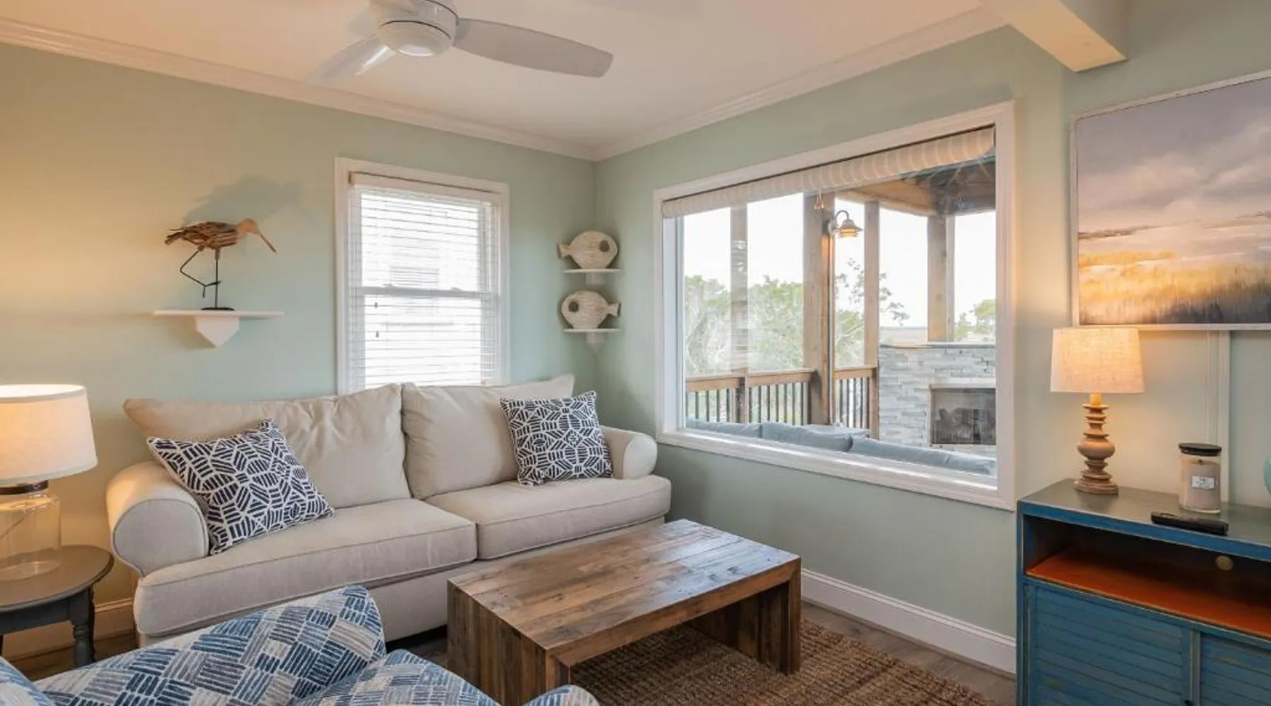 Comfortable Living Spaces: Here and Now by Oak Island Accommodations in Caswell Beach offers a holiday home with a shared kitchen, fireplace, and seating area. The property includes a dining area, private bathroom, and a patio. Modern Amenities: Guests can enjoy air-conditioning, a washing machine, and a fully equipped kitchen with a refrigerator, microwave, dishwasher, stovetop, toaster, TV, and coffee machine. The kitchen is well-appointed with kitchenware. Convenient Location: Located a few steps from Caswell Beach, the holiday home is 38 mi from Wilmington International Airport. Nearby attractions include the North Carolina Aquarium and Fort Fisher State Park. The fireplace is a top feature of this holiday home. This holiday home includes a kitchen, a seating area, 3 separate bedrooms and 2 bathrooms with a shower. The fully equipped kitchen features a stovetop, a refrigerator, a dishwasher and a microwave. This holiday home has a washing machine, a coffee machine, a TV with cable channels and a patio. The unit has 3 beds.