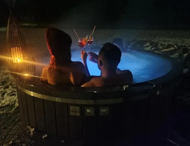 Domek Viking z prywatnym ogrzewanym basenem sauną oraz balią z jacuzzi